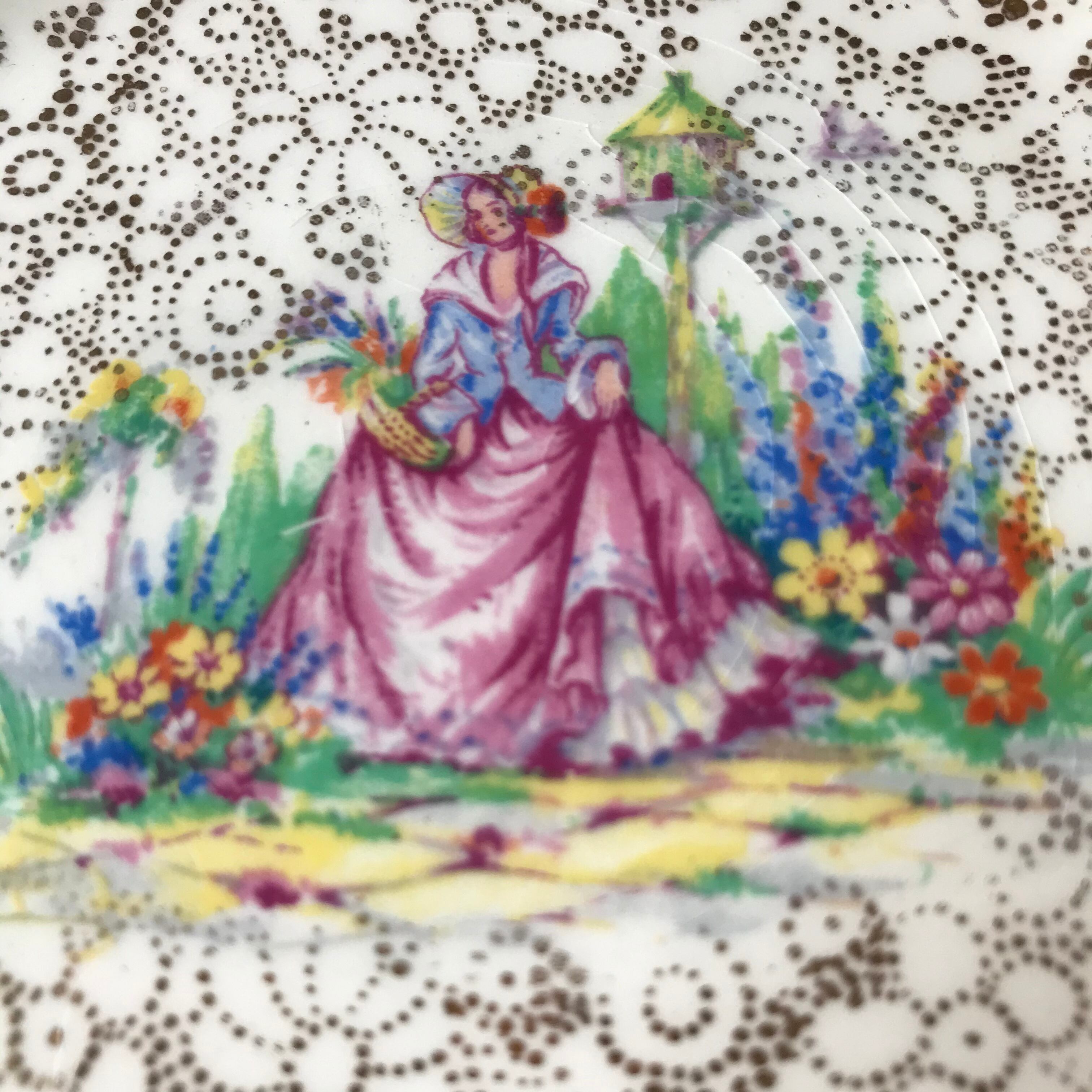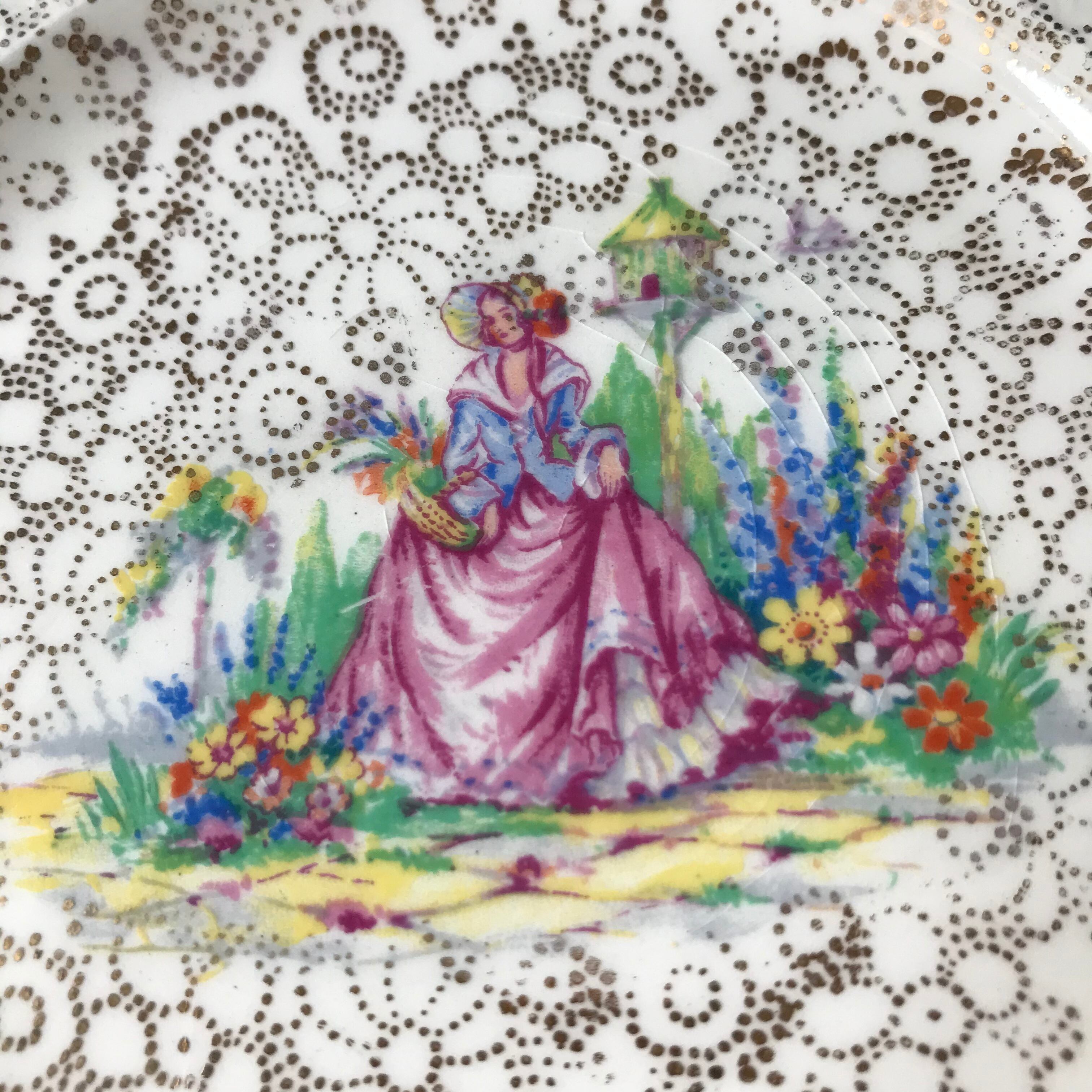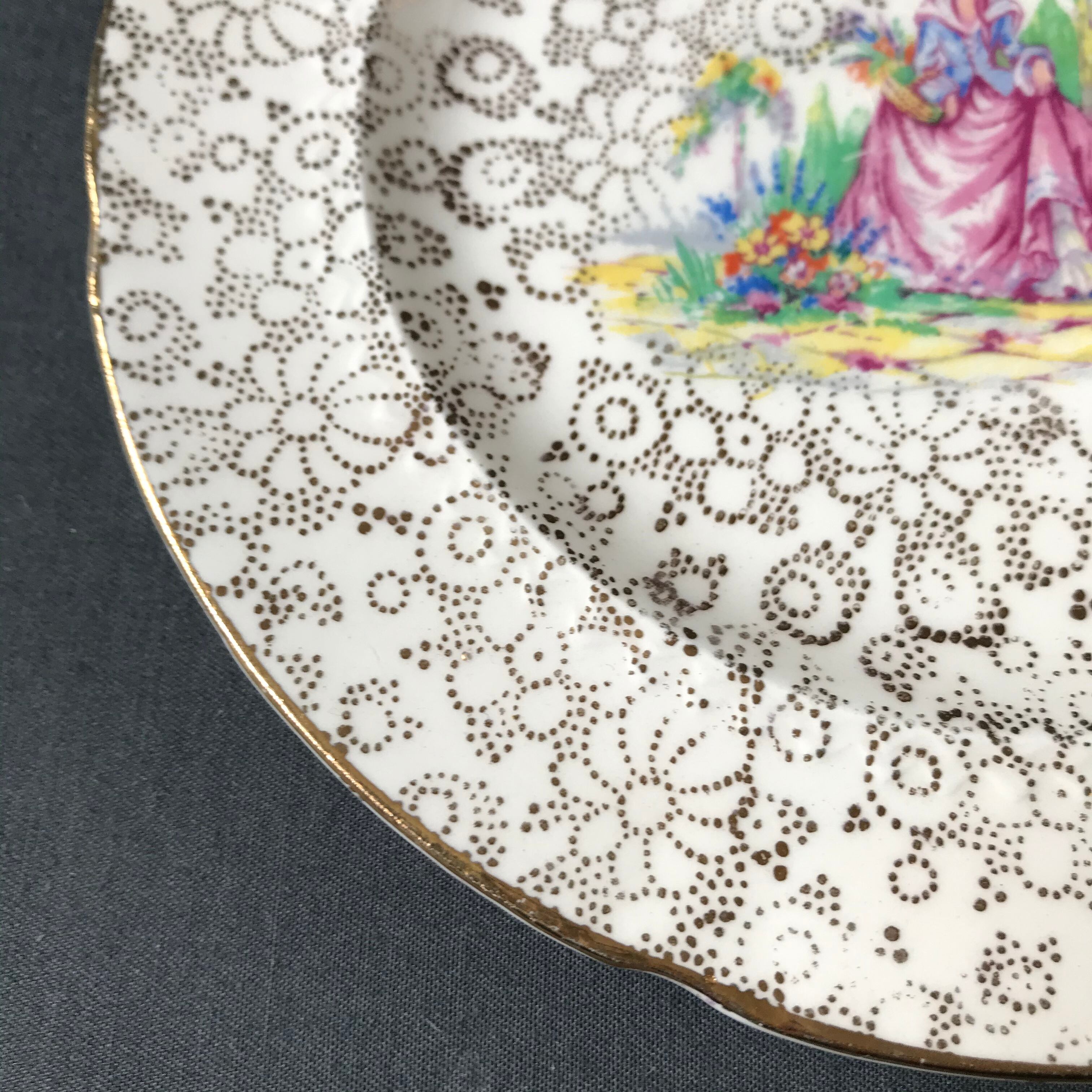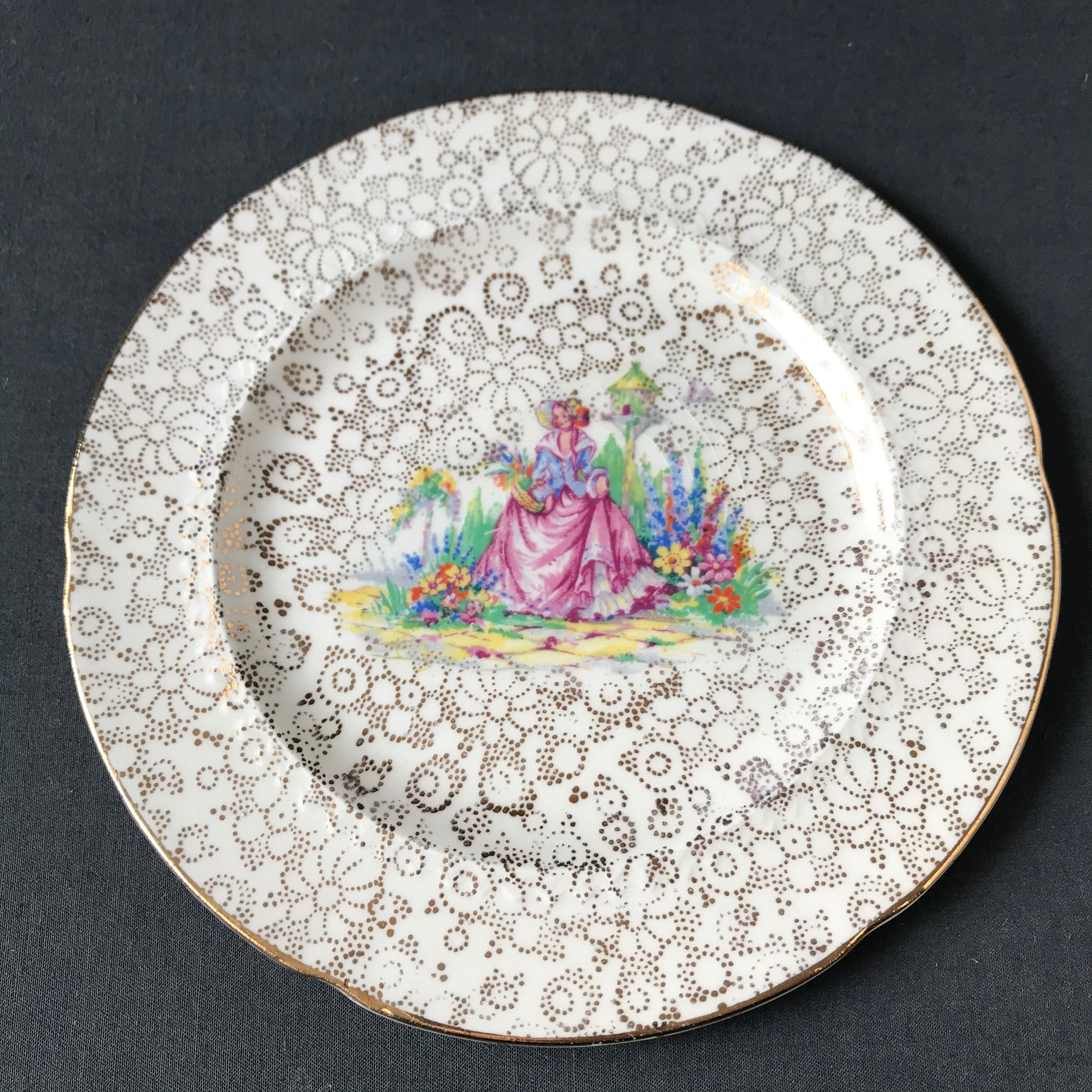 ・直径 17㎝ H&KTUWSTALL 中央にドレスの淑女、金彩のレリーフが素晴らしいプレートです。ヒビカケ無く良い状態です。イギリスアンティーク。