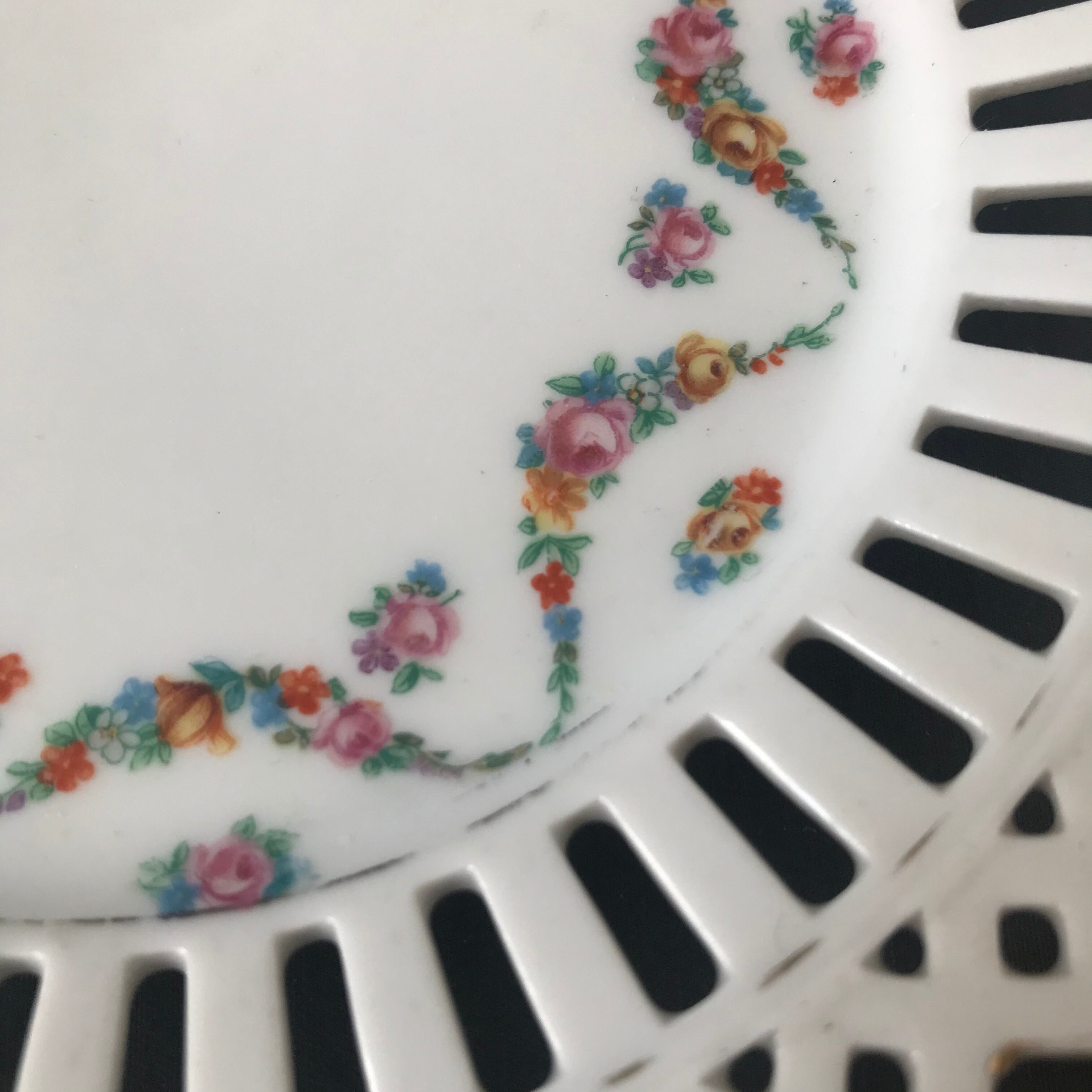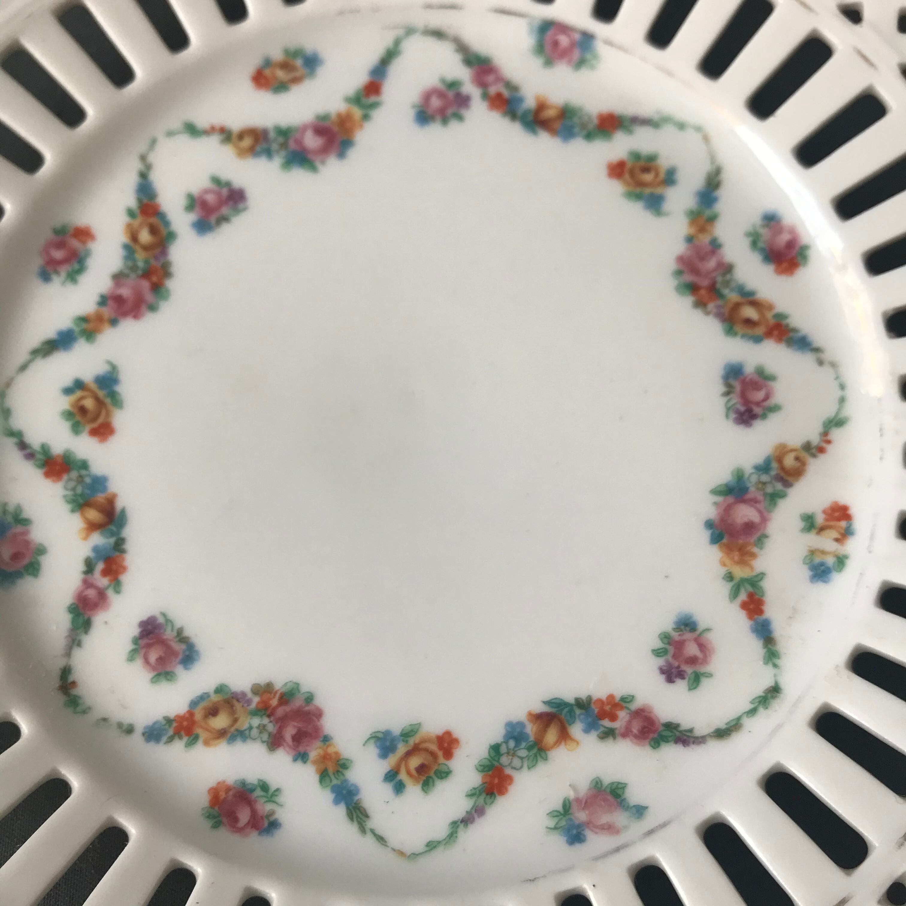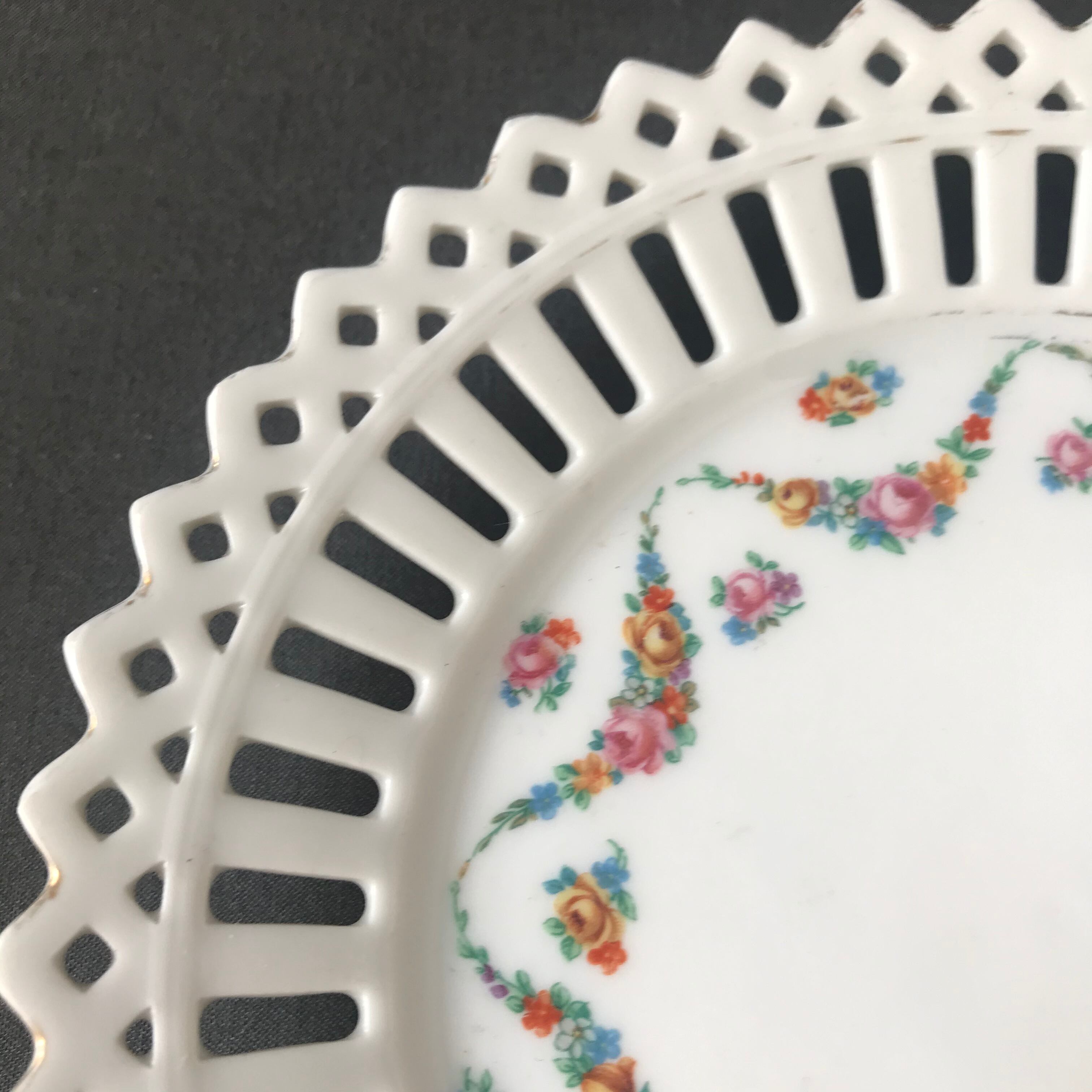 ・直径 18㎝ バラのガーランドが綺麗なリボンプレートです。昔はこちらの縁周りの隙間にリボンをぐるりと通して、飾っていたプレートです。