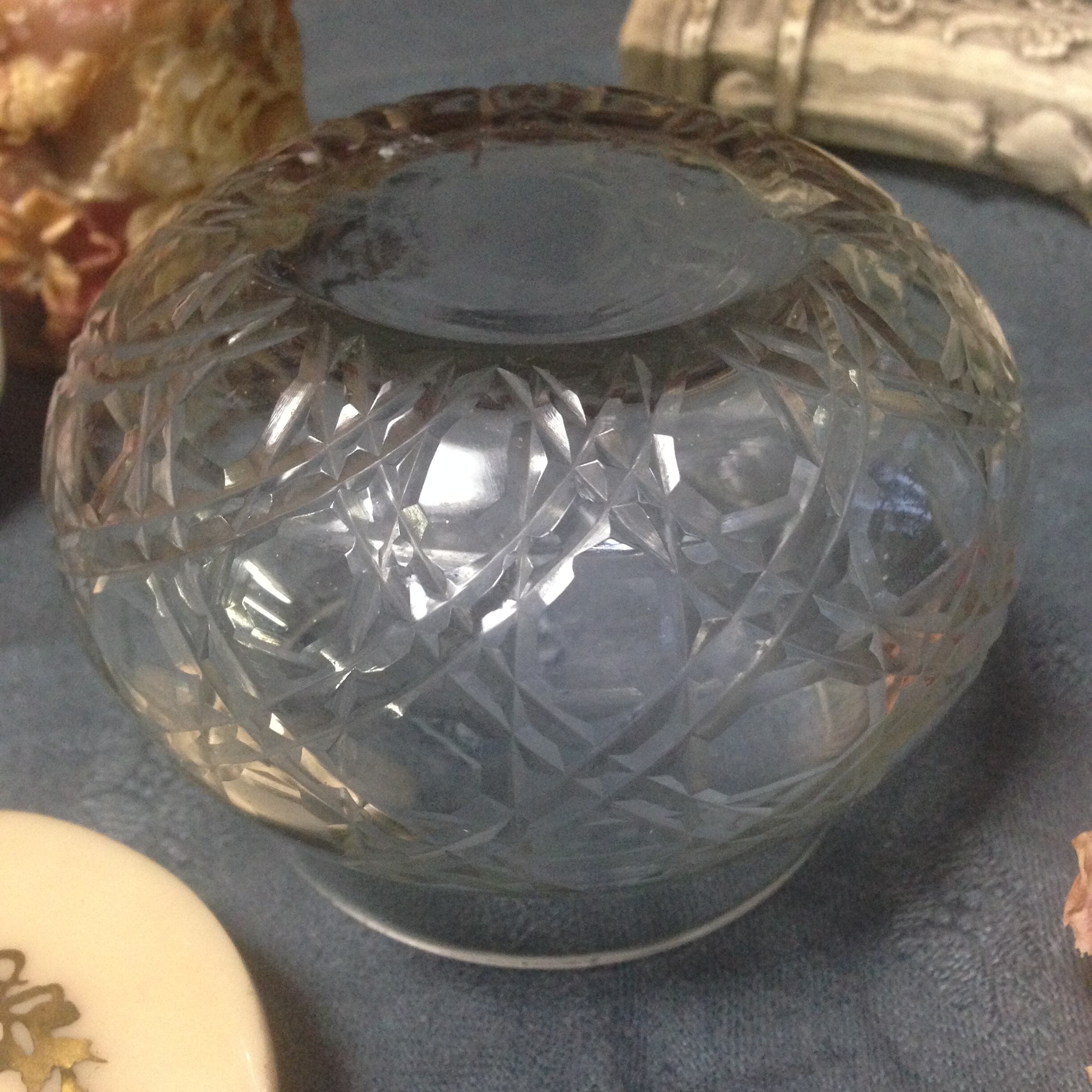 蓋には金でガーランドの模様、ガラス部分は蛇の目模様に彫ってある可愛らしいジュエリーboxです。フランスビンテージ。商品合計10000円以上で送料無料です。