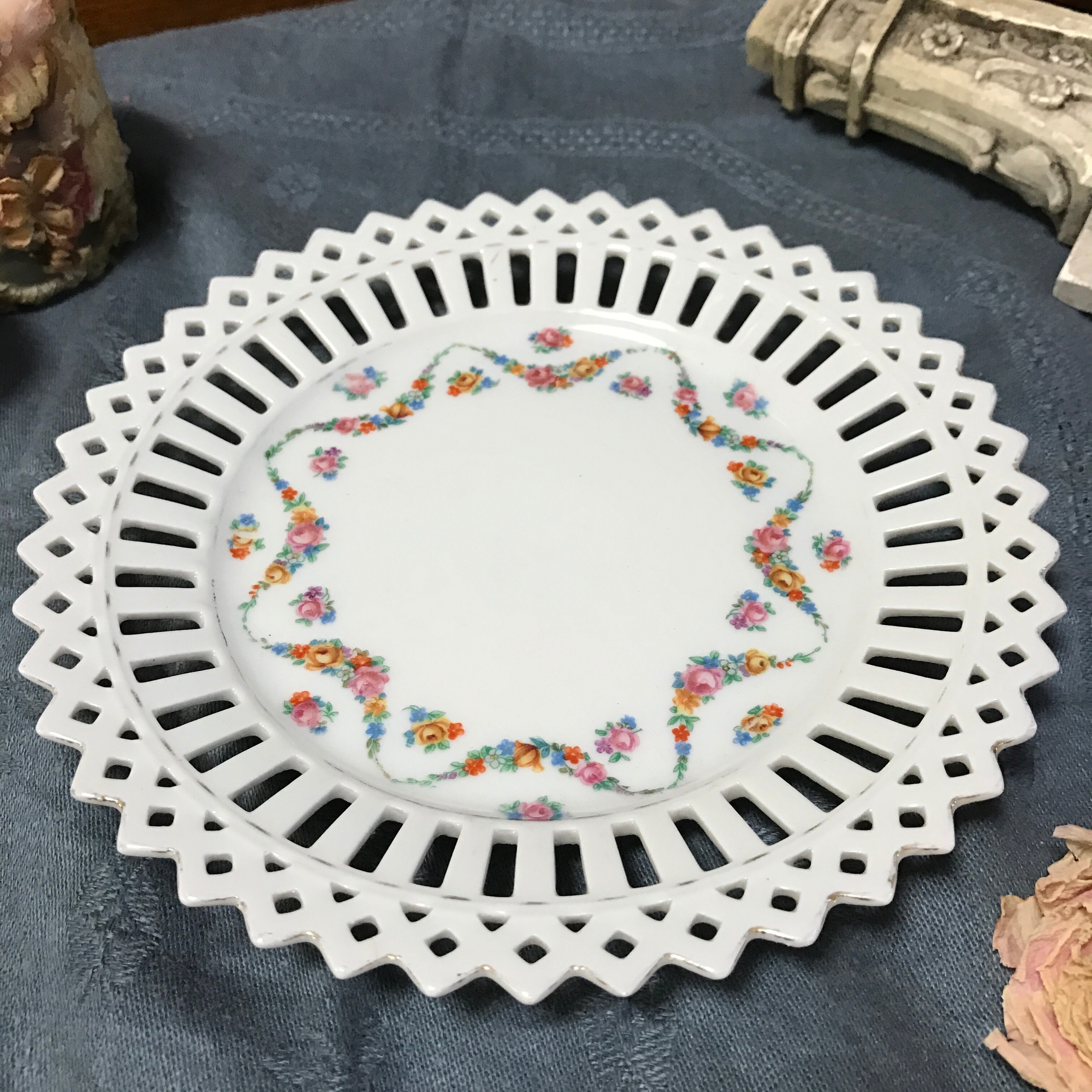 ・直径17.7㎝ 周りが均一に開いていて、こちらにリボンを通して飾っていたプレートです。お好きなリボンを通して飾ってください。もちろんそのままケーキ皿通してお使いになったりアクセサリーを置いて頂いても可愛らしいです。フランスビンテージ。商品合計10000円以上で送料無料です。
