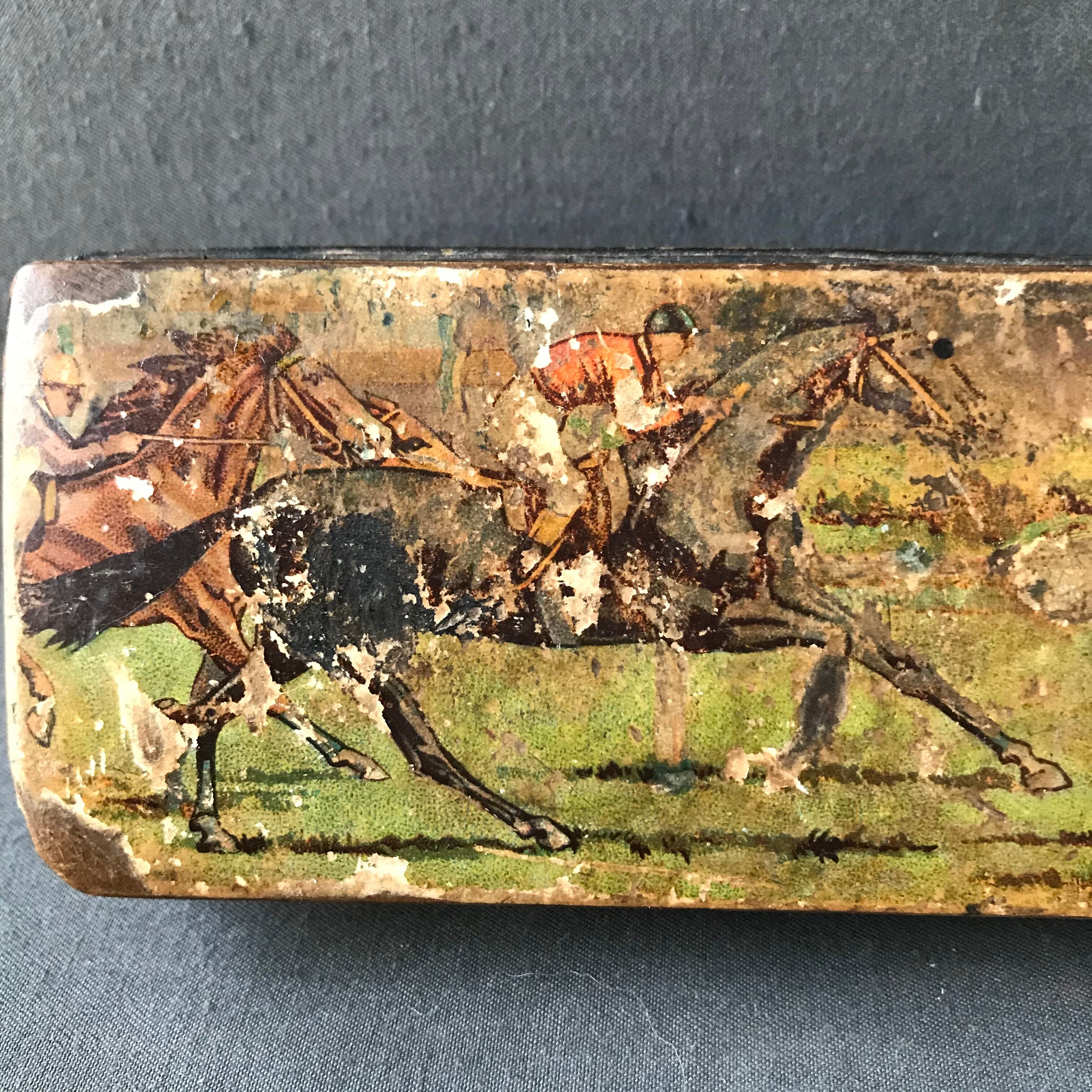 ・縦 6㎝ 横 22㎝ 高さ 3㎝ パピエマシェの馬に乗る騎手のペンケースです。経年による剥がれやダメージございますが深い味わいになっております。フランスアンティーク。