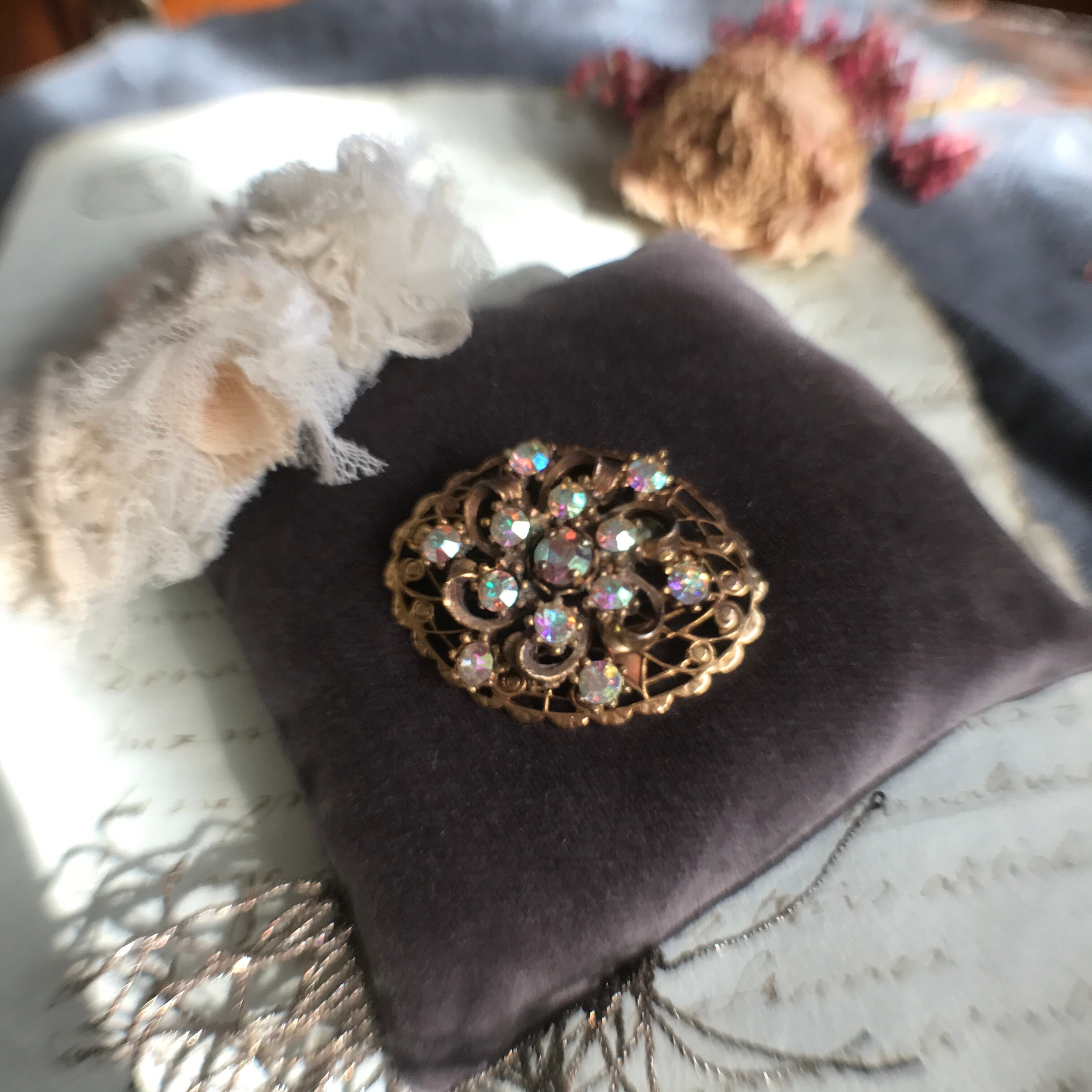 ・縦 4㎝ 横 5㎝ キラキラのラインストーンが散りばめられた綺麗なブローチです。アメリカビンテージ。送料140円。