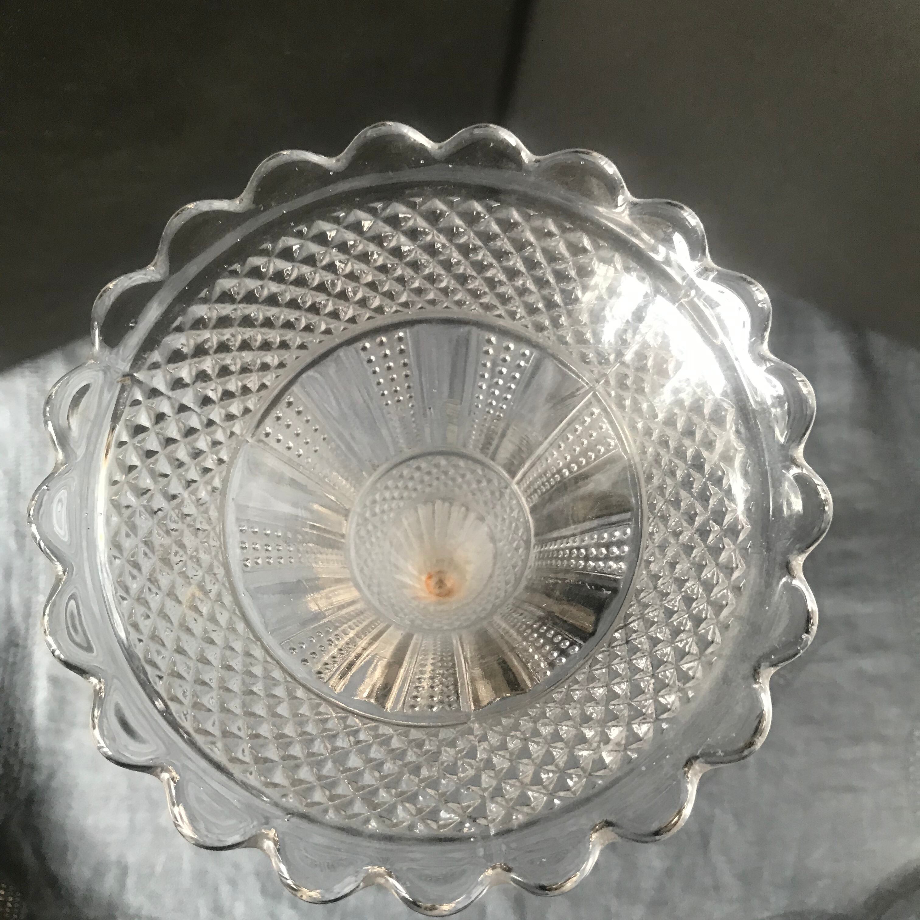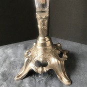 ・口径 14.5㎝ 高さ 30㎝ フリルガラスにアールヌーボーの足が付いたエレガントなベイスです。ガラスにヒビカケなく良い状態です。フランスアンティーク。