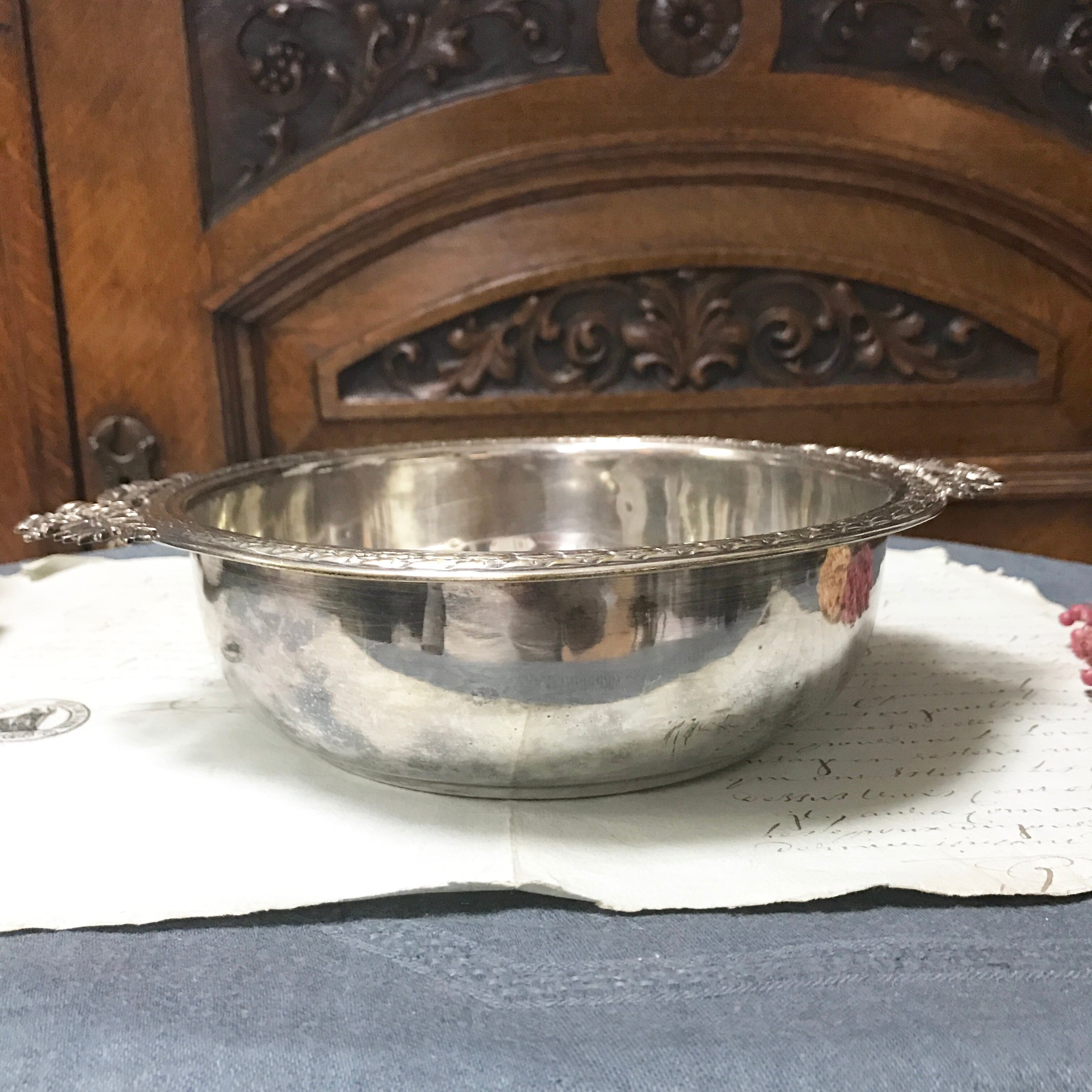 ・直径21㎝ 横27㎝ シルバープレートのエンボス模様が素晴らしいボウルです。グルリと麦のエンボスがほどこされ、両脇には月桂樹やリボン、トーチが細やかに素晴らしく装飾されています。水をはってお花を浮かべて頂いたり、フルーツを盛り付けて頂いてもとても素敵です。フランスアンティーク。商品合計10000円以上で送料無料です。