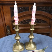 ・高さ 18㎝ 下の台部分 縦 8㎝ 横 8㎝ 真鍮のキャンドルスタンドペアです。シンプルなラインがどんなキャンドルでも合いますね。シンメトリーに飾って頂くと素敵です。フランスアンティーク。