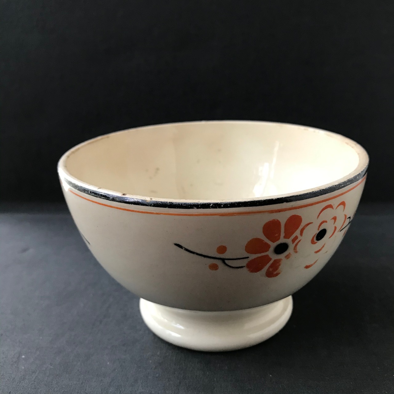 ・直径 13㎝ 高さ 8.5㎝ BOCH オレンジの花が可愛らしいカフェオレボウルです。内側に小傷があります。縁にスレがあります。フランスアンティーク。
