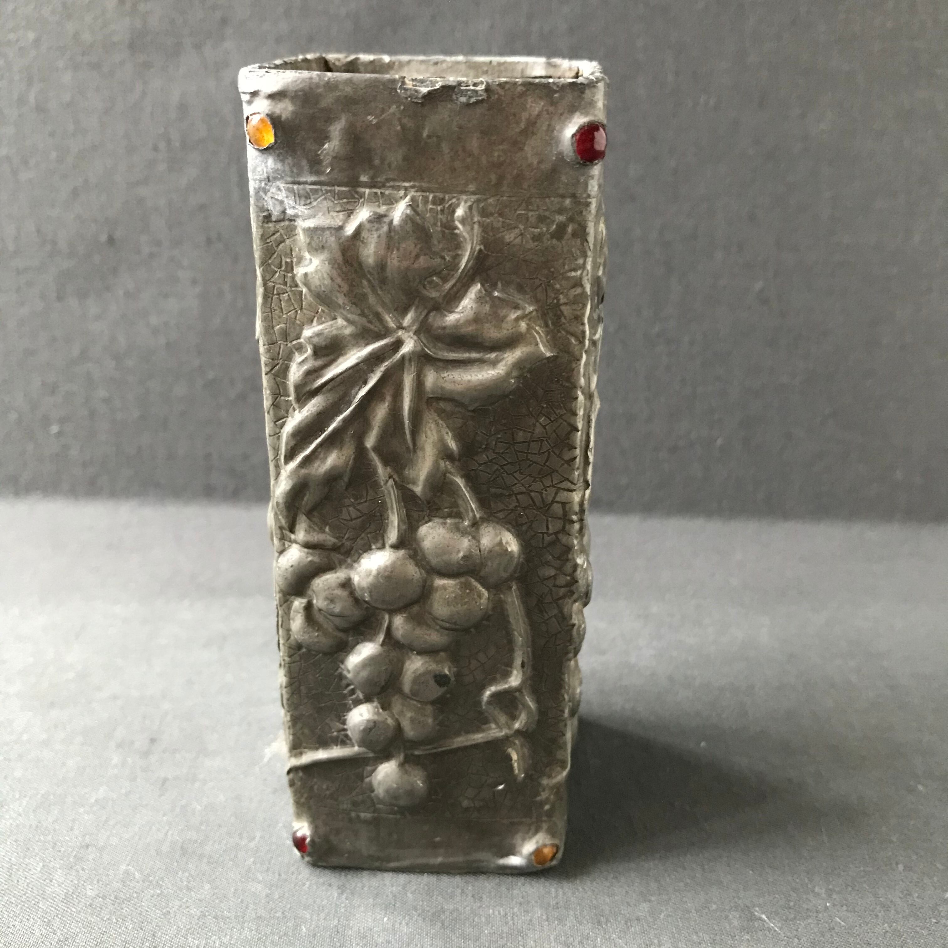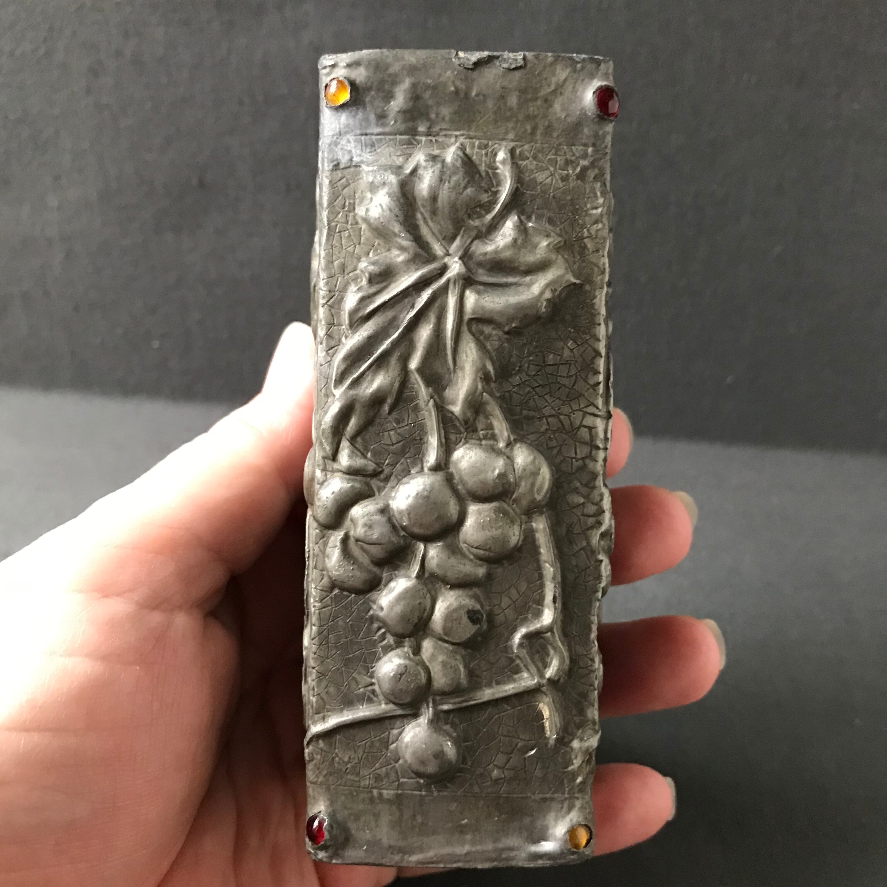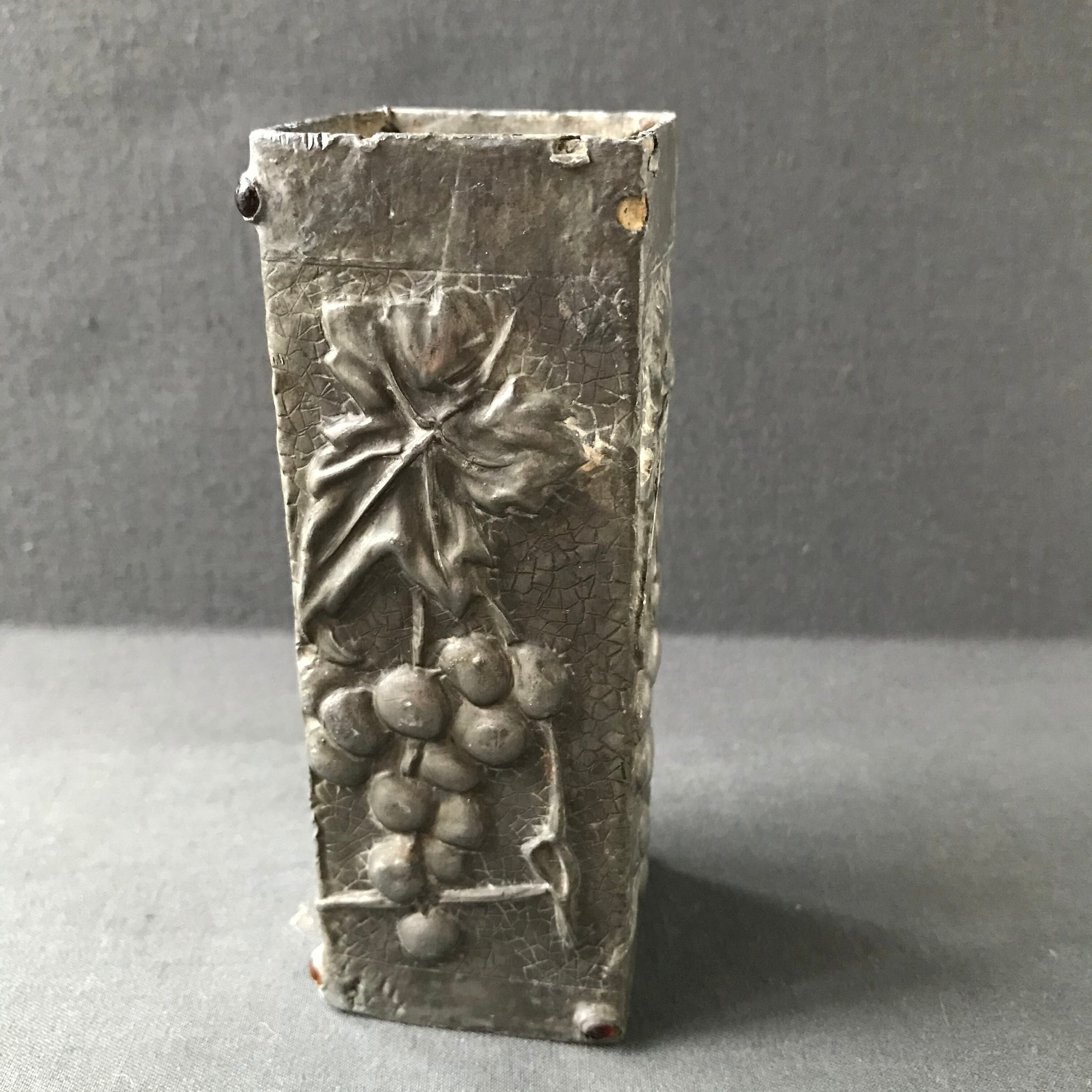 ・縦 4.5㎝ 横 4.5㎝ 高さ 11.5㎝ エタン製のブドウのエンボスが綺麗なベイスです。ガラスビーズも付いています。無い所もあります。フランスアンティーク。