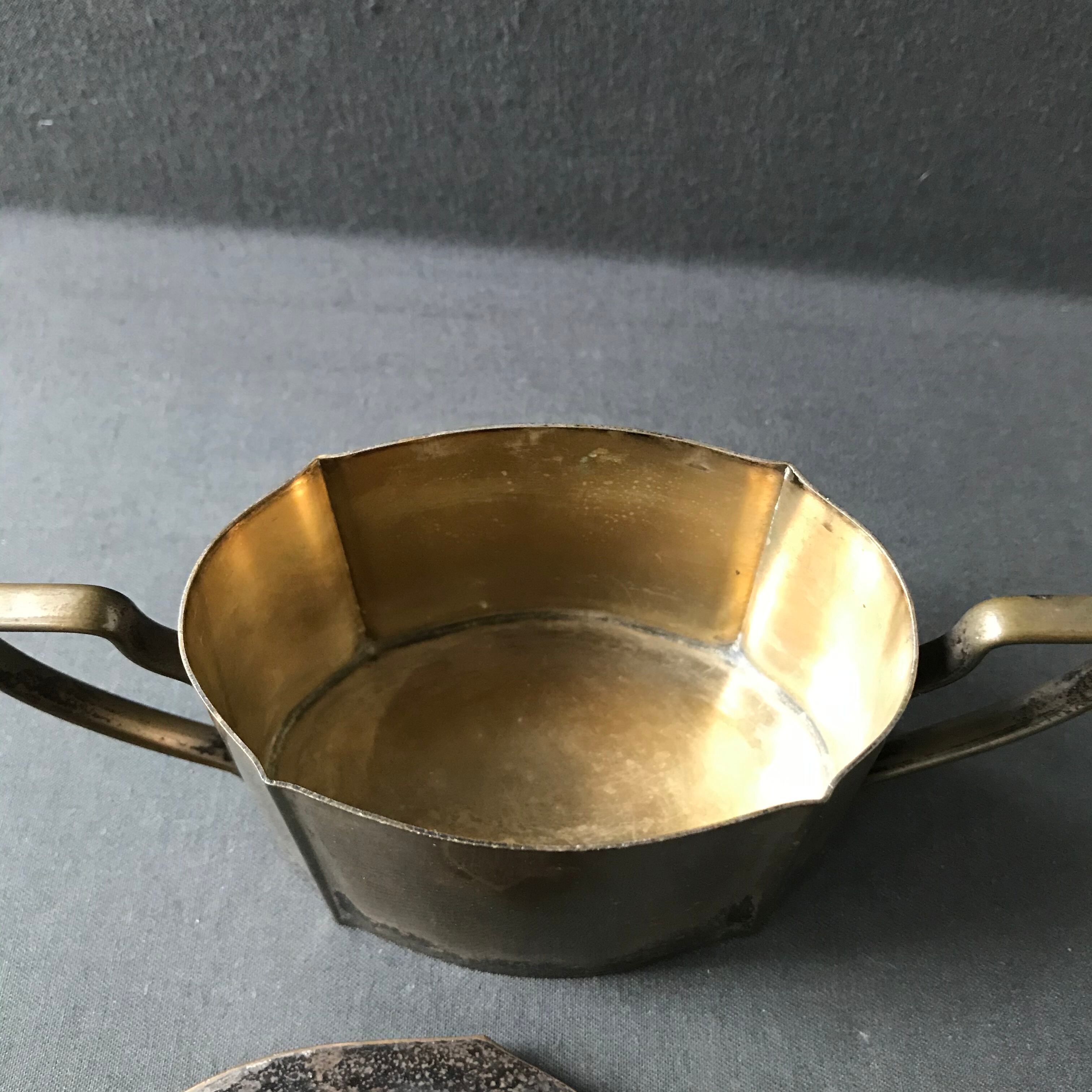 シルバーブラスのシュクリエとクレミエのセットです。シュクリエの蓋の持ち手は木製です。フランスアンティーク。