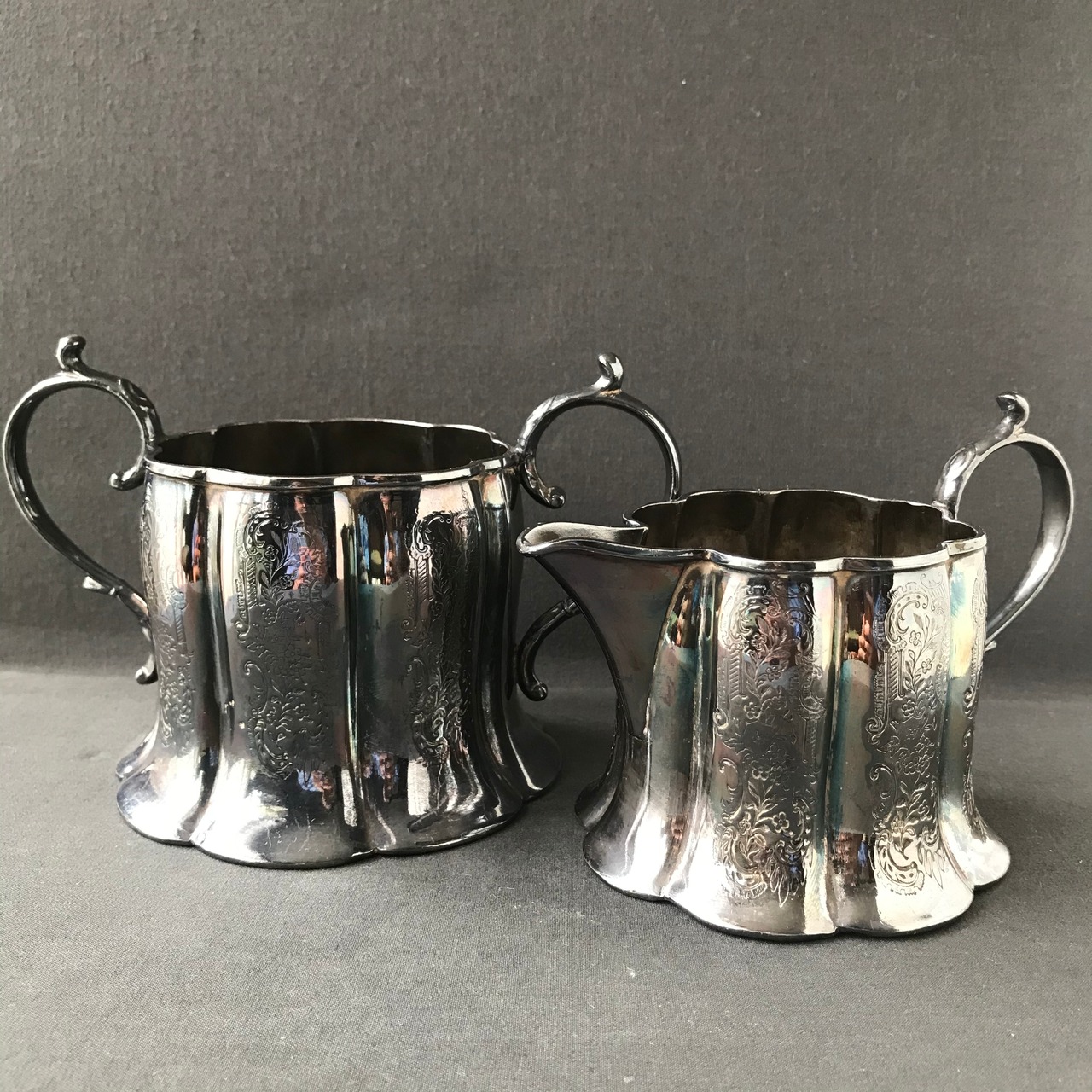 シルバープレートのエンボスが素晴らしいシュクリエとクレミエのセットです。フランスアンティーク。