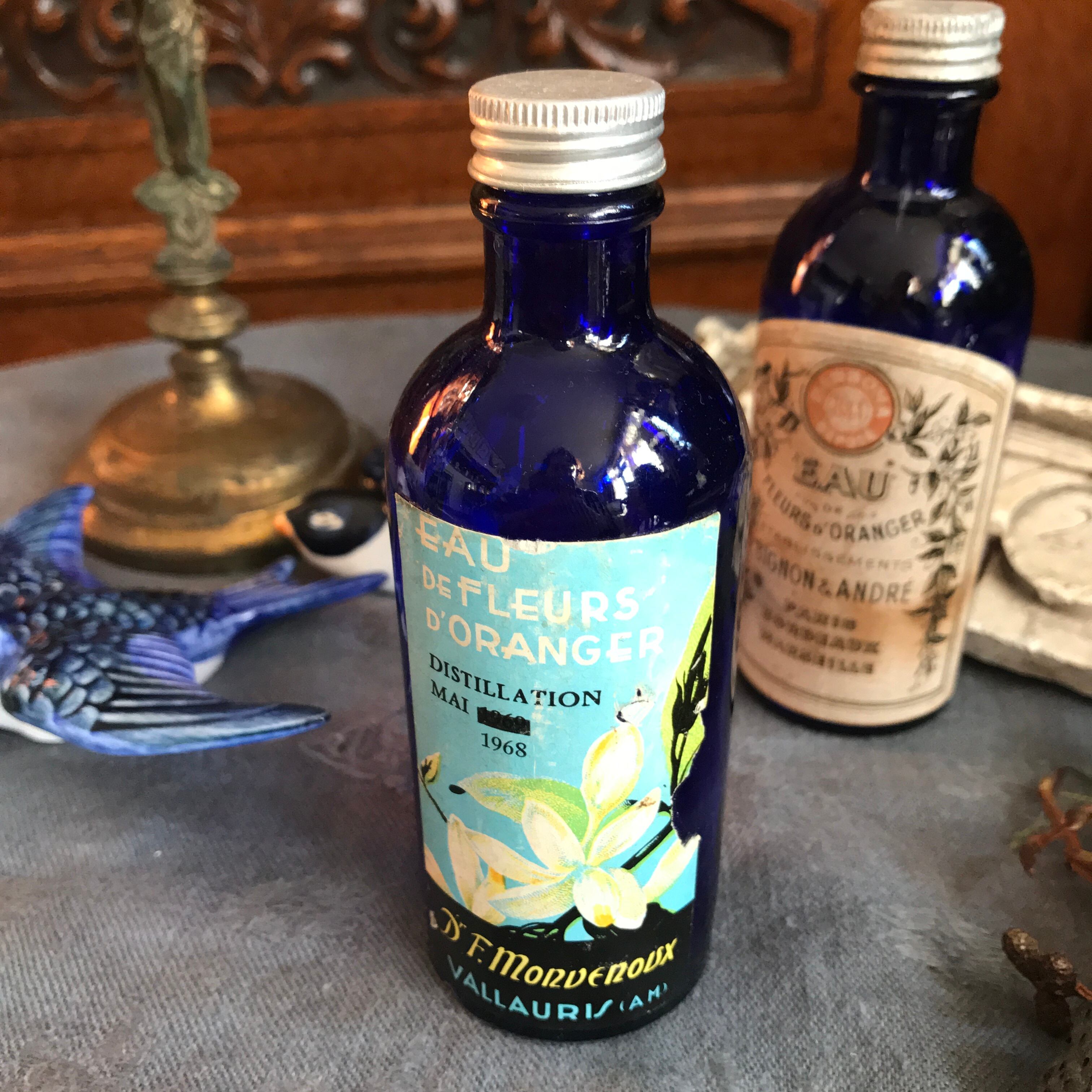 ・高さ 12㎝ 綺麗な青いガラス瓶に可愛いラベルがついたオーデコロンの瓶です。綺麗な青色がディスプレイしたら素敵です。フランスビンテージ。商品合計10000円以上で送料無料です。