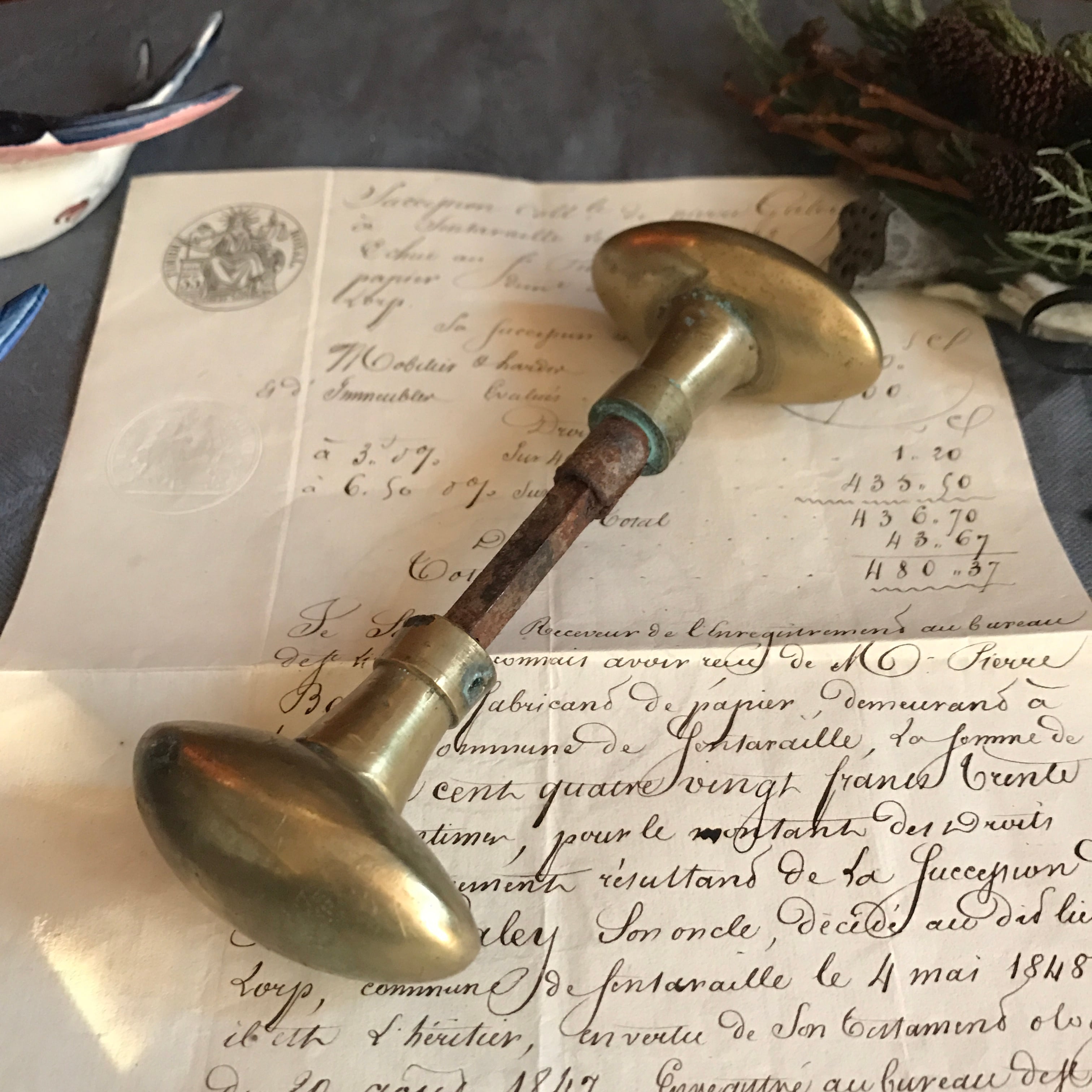 ・縦 6㎝ 横 3.3㎝ 長さ 14.5㎝ 真鍮のドアノブです。ノブが外れません。ディスプレイにお使い下さい。フランスアンティーク。商品合計10000円以上で送料無料です。