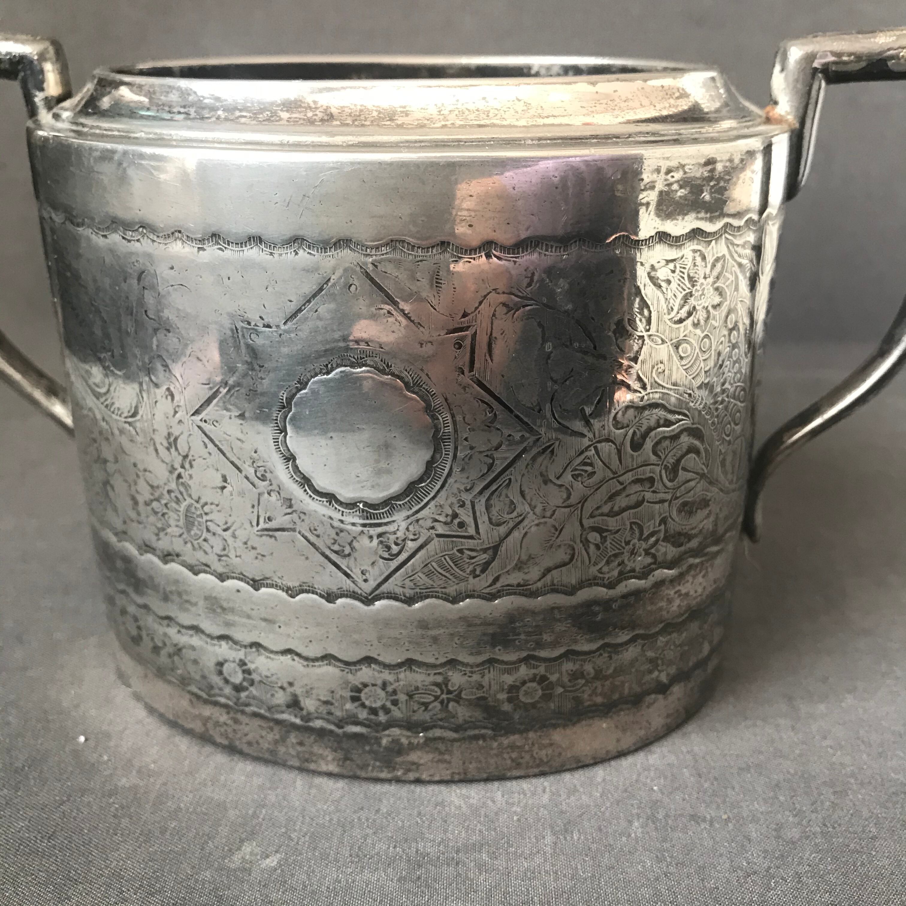 シルバープレートの素晴らしい蝶やボタニカルのエンボスが入ったシュクリエとクレミエのセットです。フランスアンティーク。