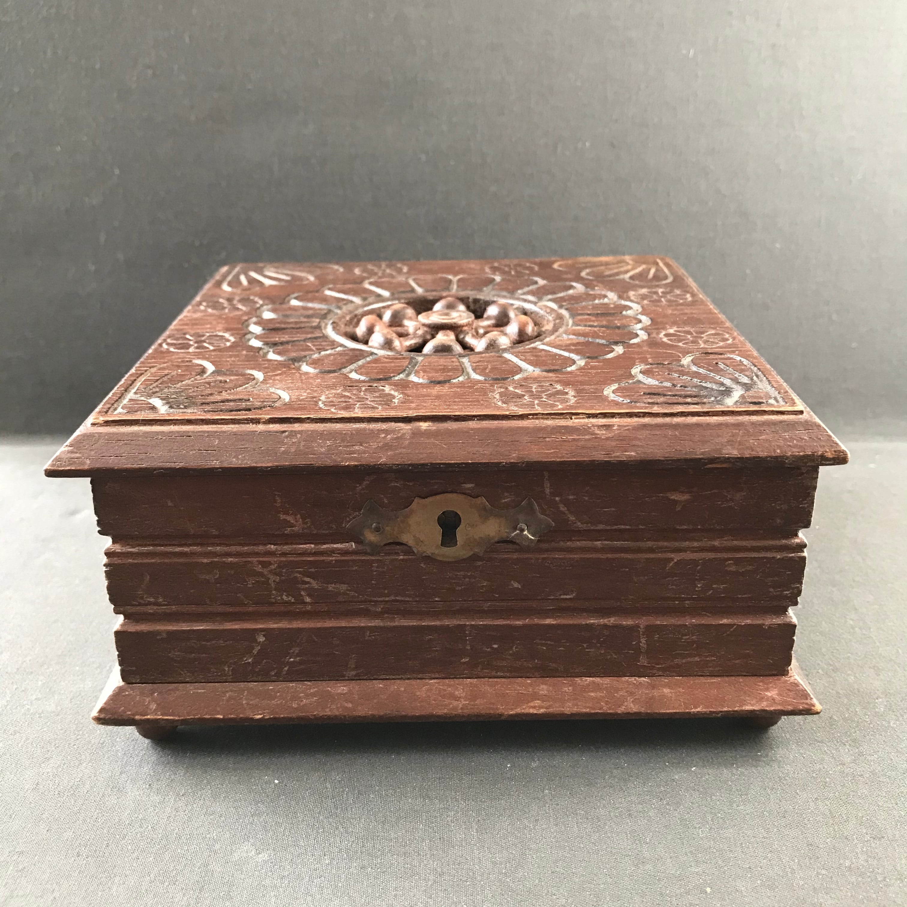 ・縦 15㎝ 横 15㎝ 高さ 7.5㎝ 木製のブルターニュドール家具です。1カ所亀裂があります。ご使用には問題ありません。フランスアンティーク。