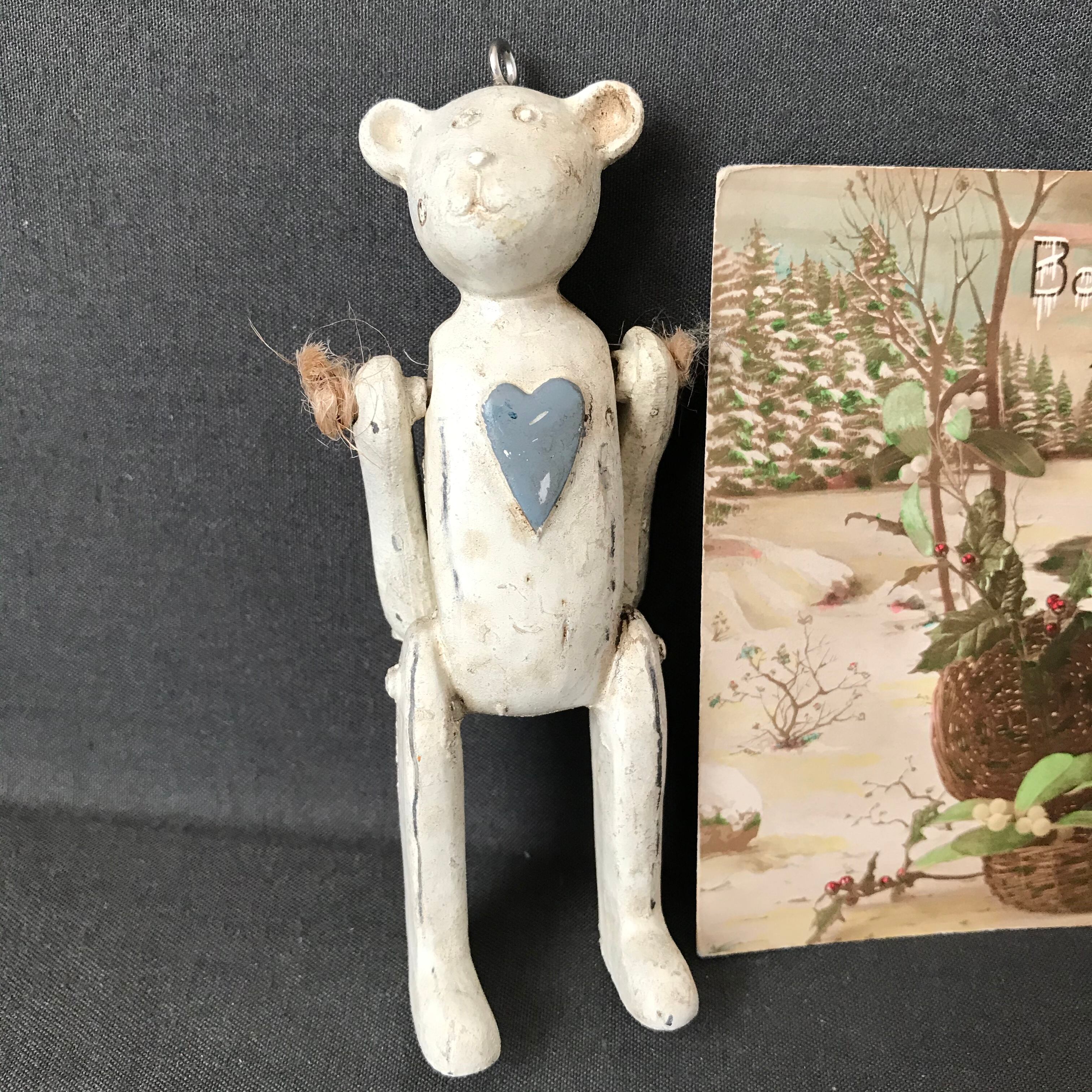 石膏製のベアちゃんのオーナメントです。腕はジョイントで動きます。ベアちゃん3体とポストカードのセットです。フランスビンテージ。