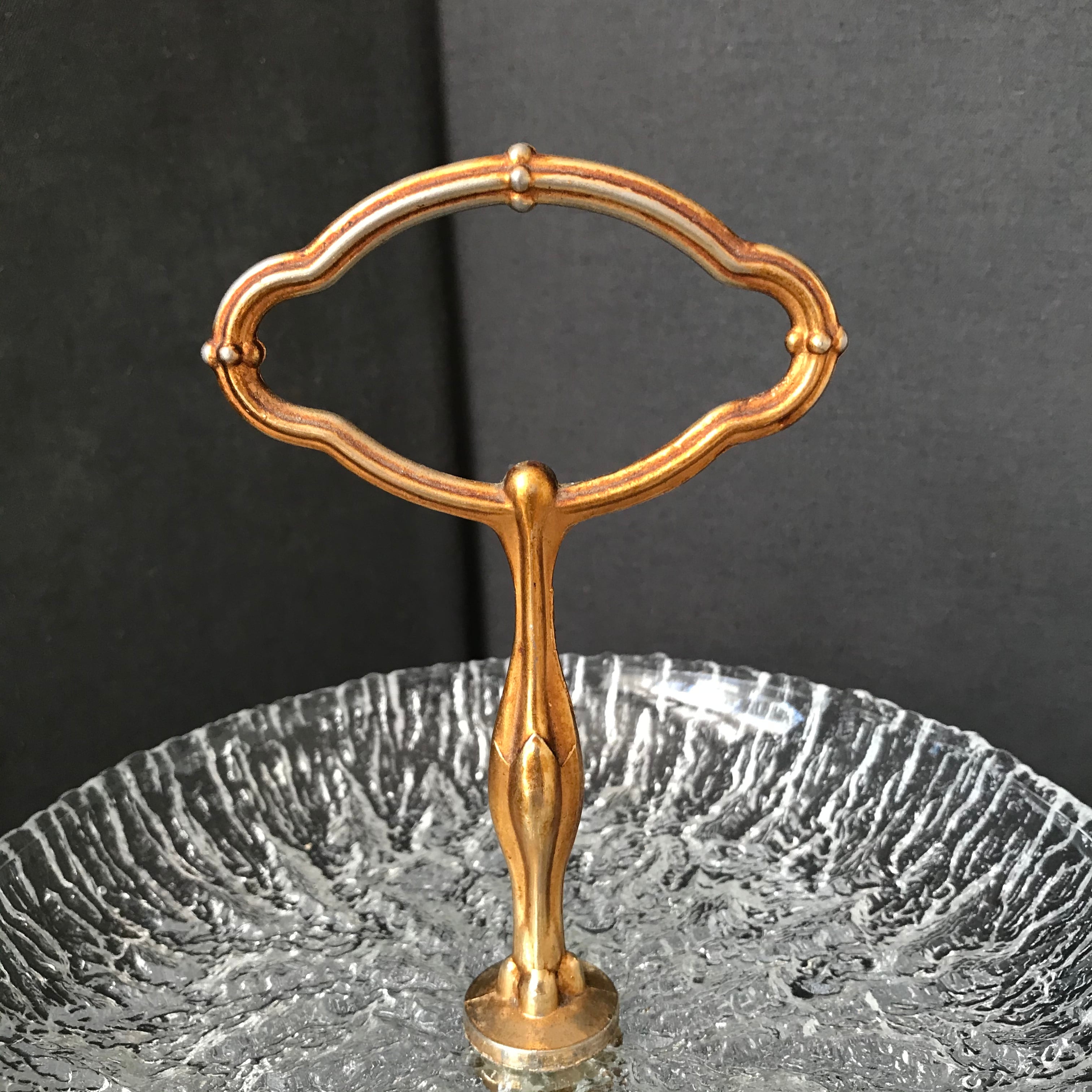 ガラスのアフタヌーンティースタンドです。ヒビカケ無く良い状態です。支柱は外せますので、コンパクトになります。フランスビンテージ。