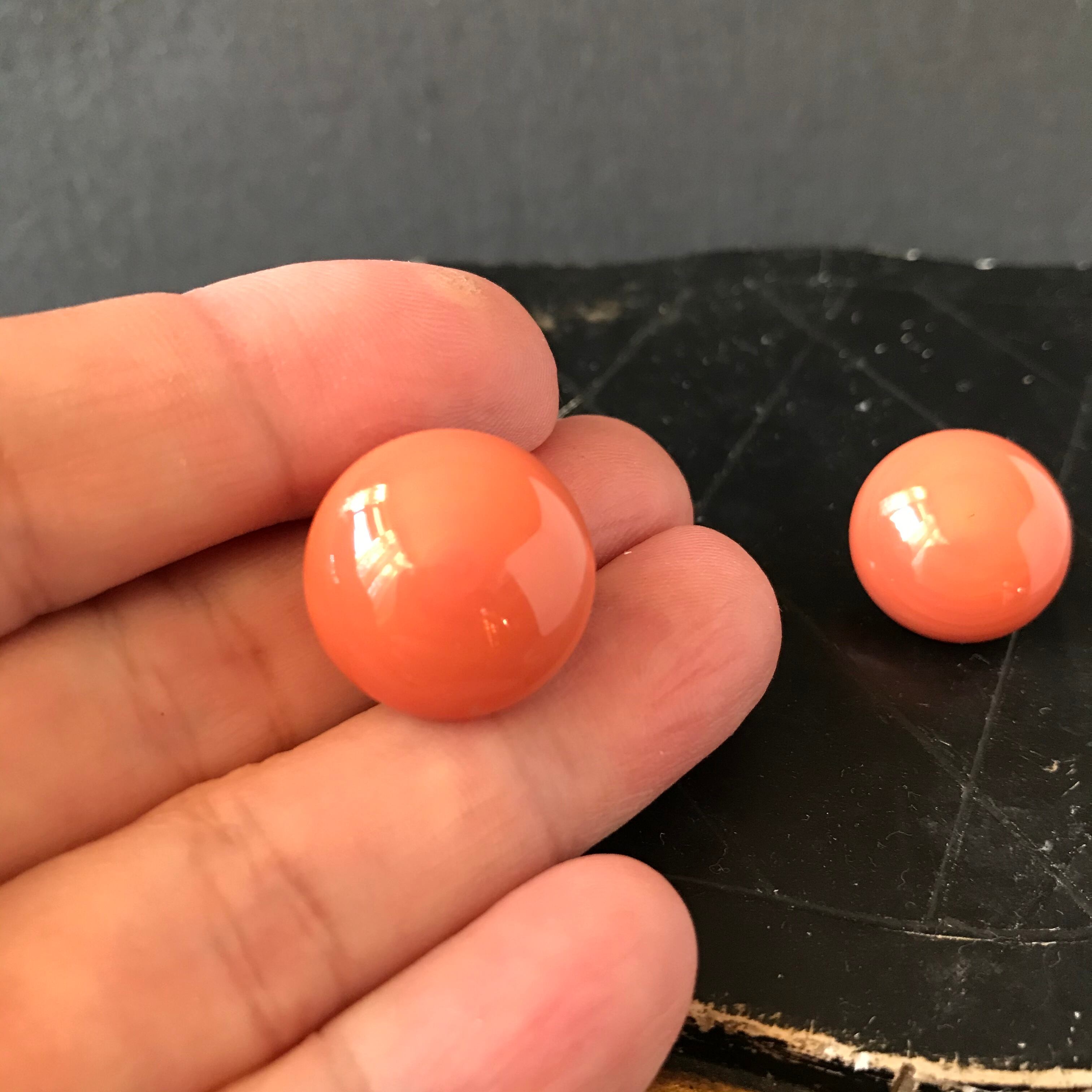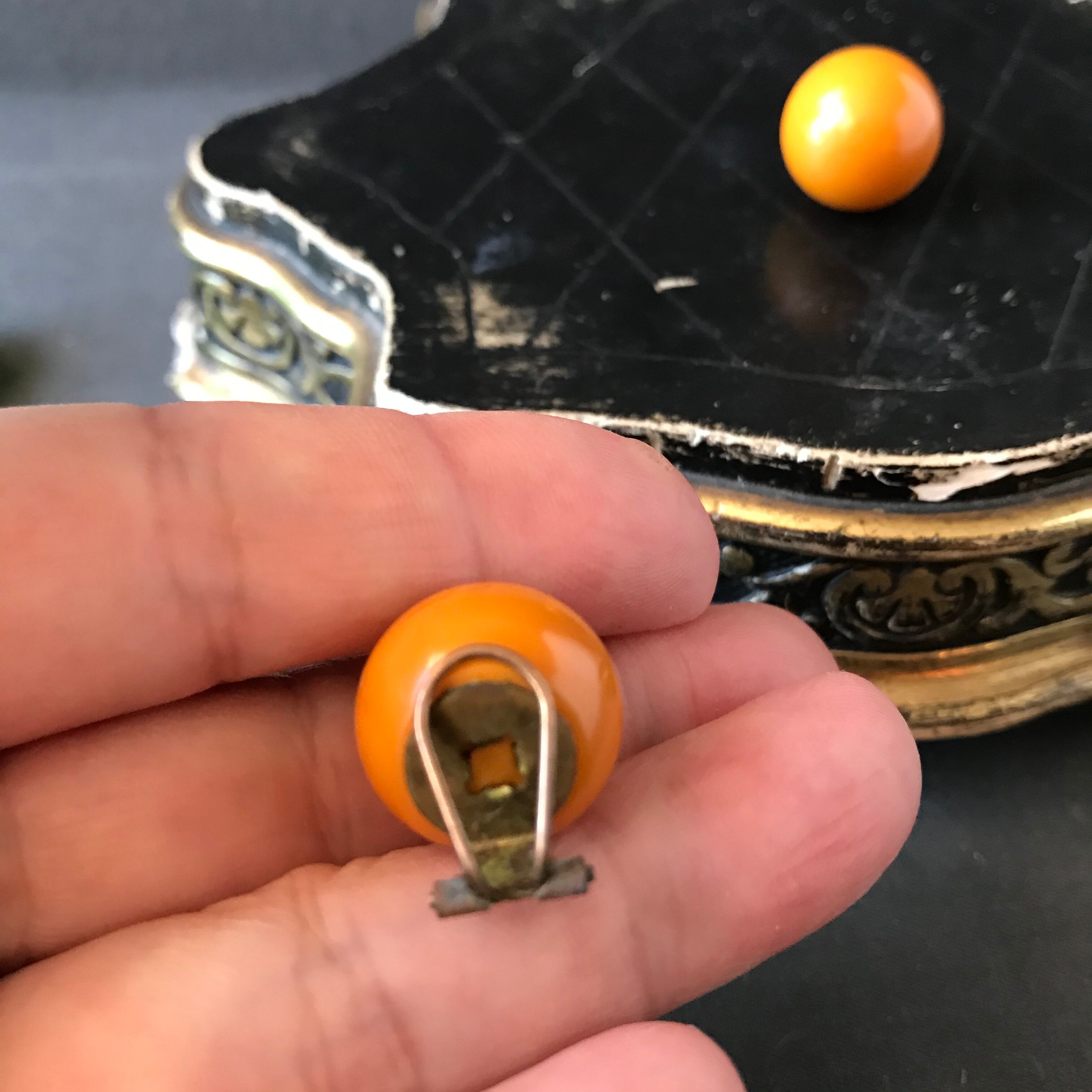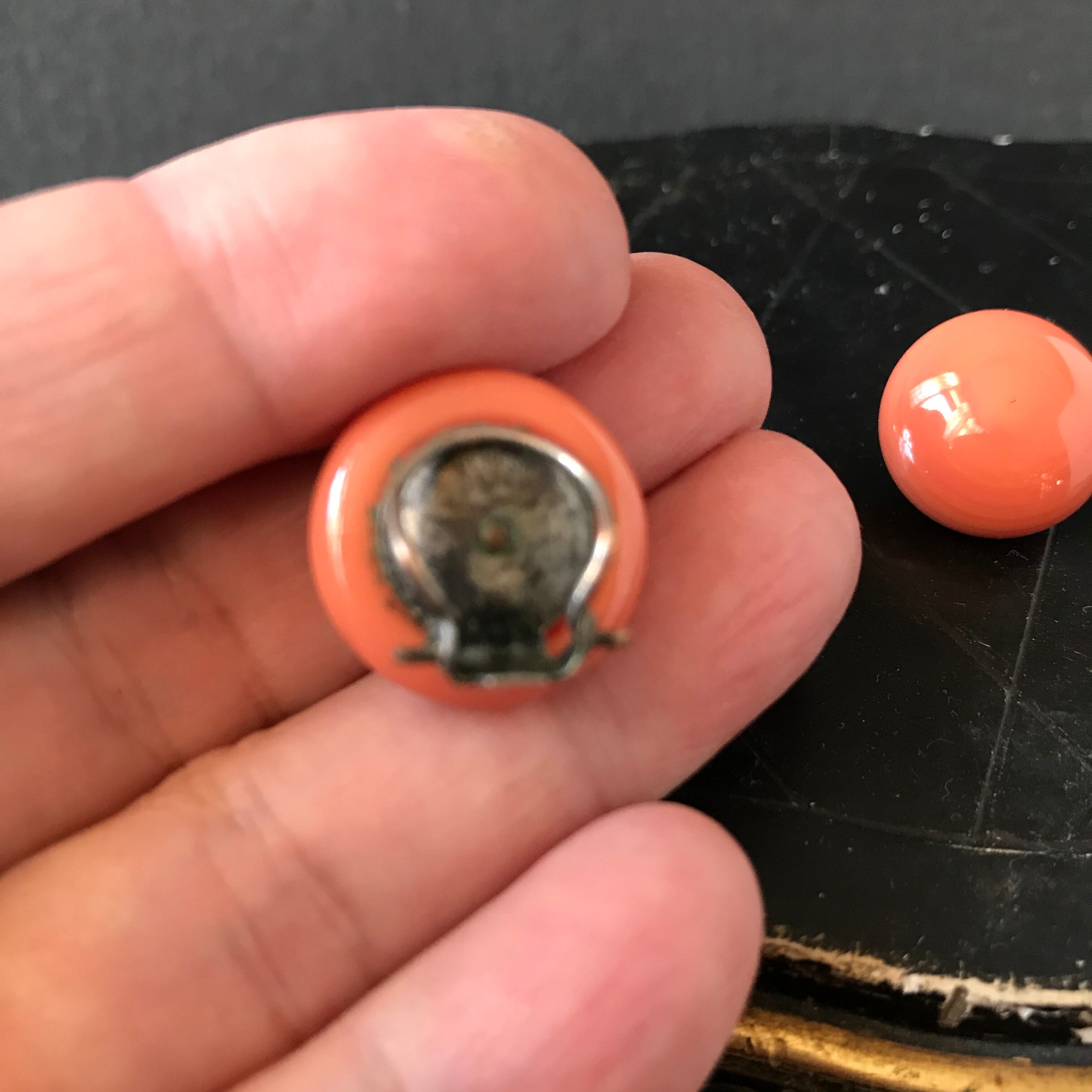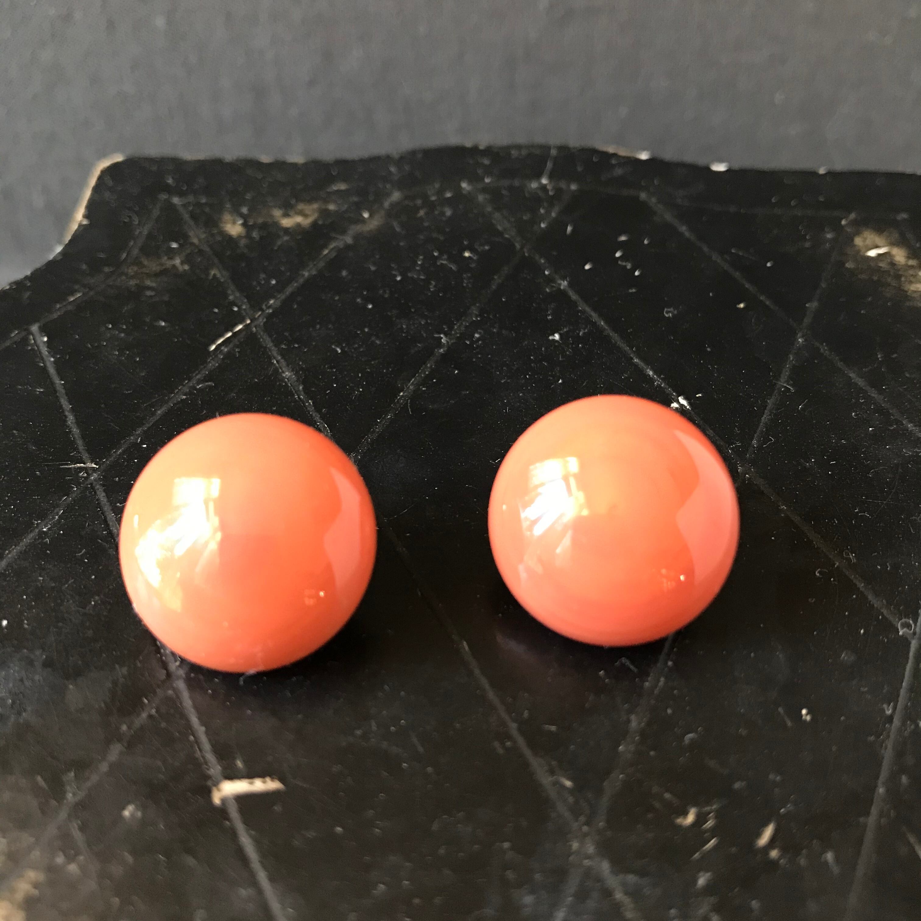 コーラルピンクのイヤリングと山吹色のイヤリング、グリーンビーズのイヤリングの3点セットです。昔のイヤリングは色合いが絶妙で顔馴染みも良いですね。フランスビンテージ。