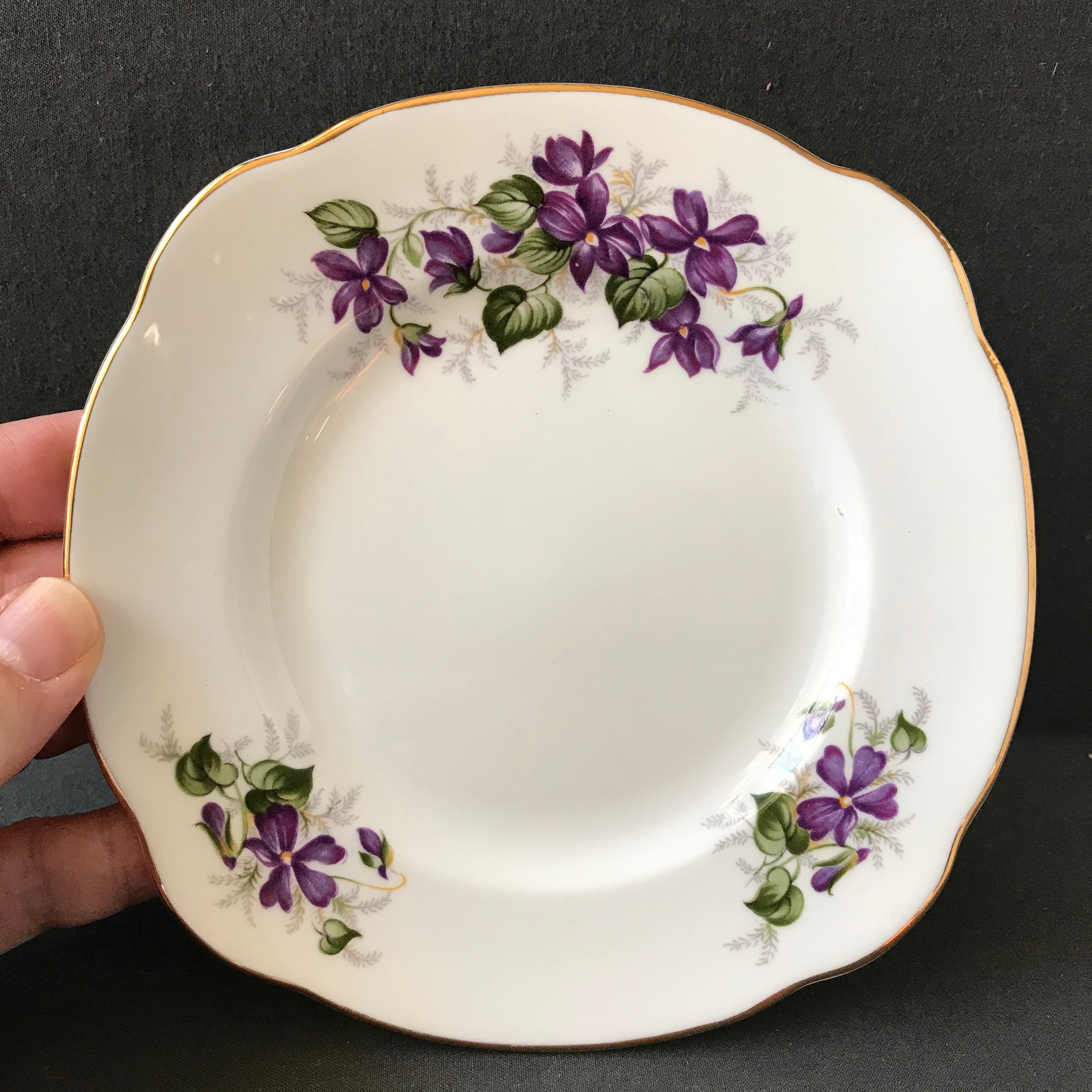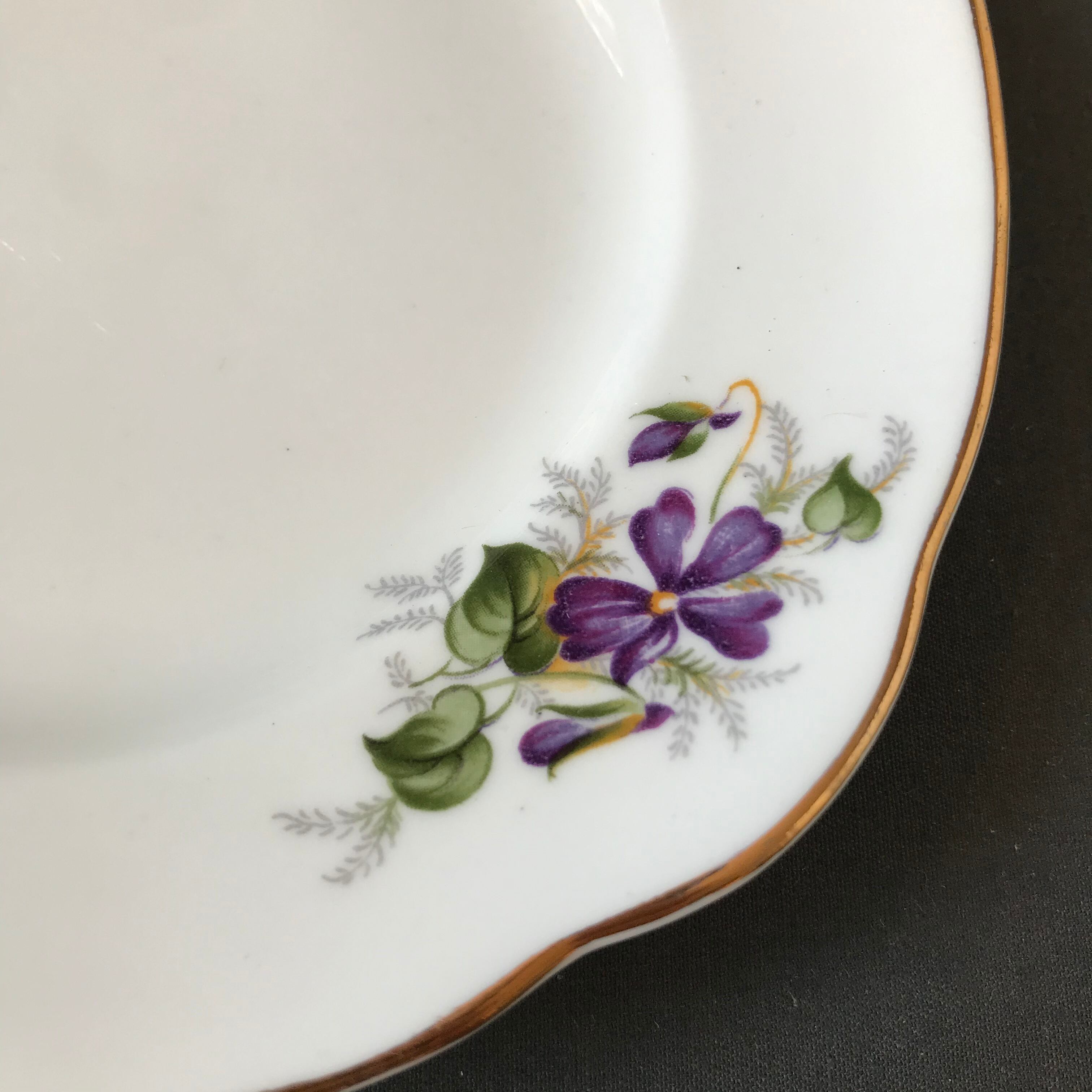 ・直径 15.5㎝ 2枚 DUCHESS スミレの絵付けが可愛らしいプレートの2枚セットです。2枚共ヒビカケ無く良い状態です。イギリスビンテージ。