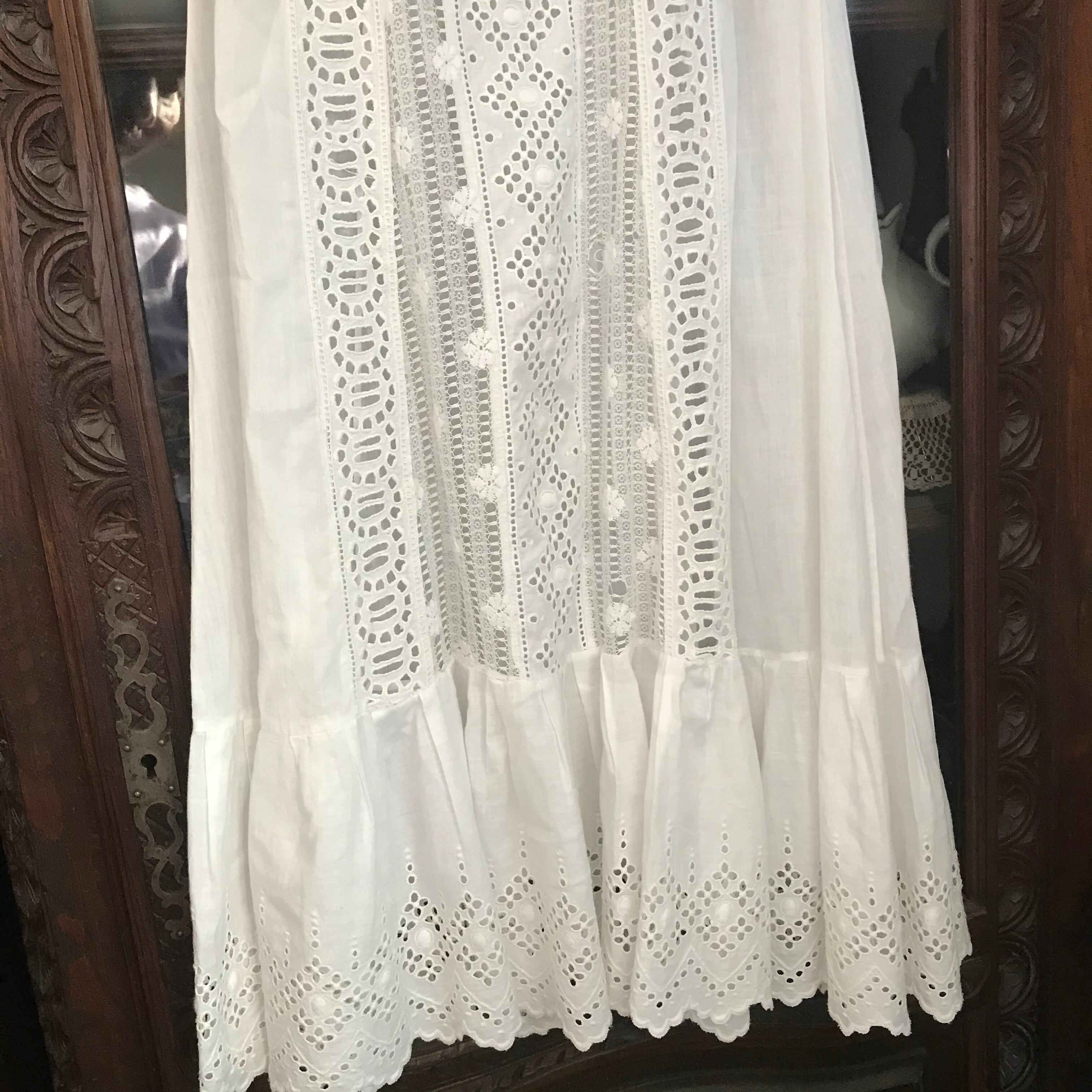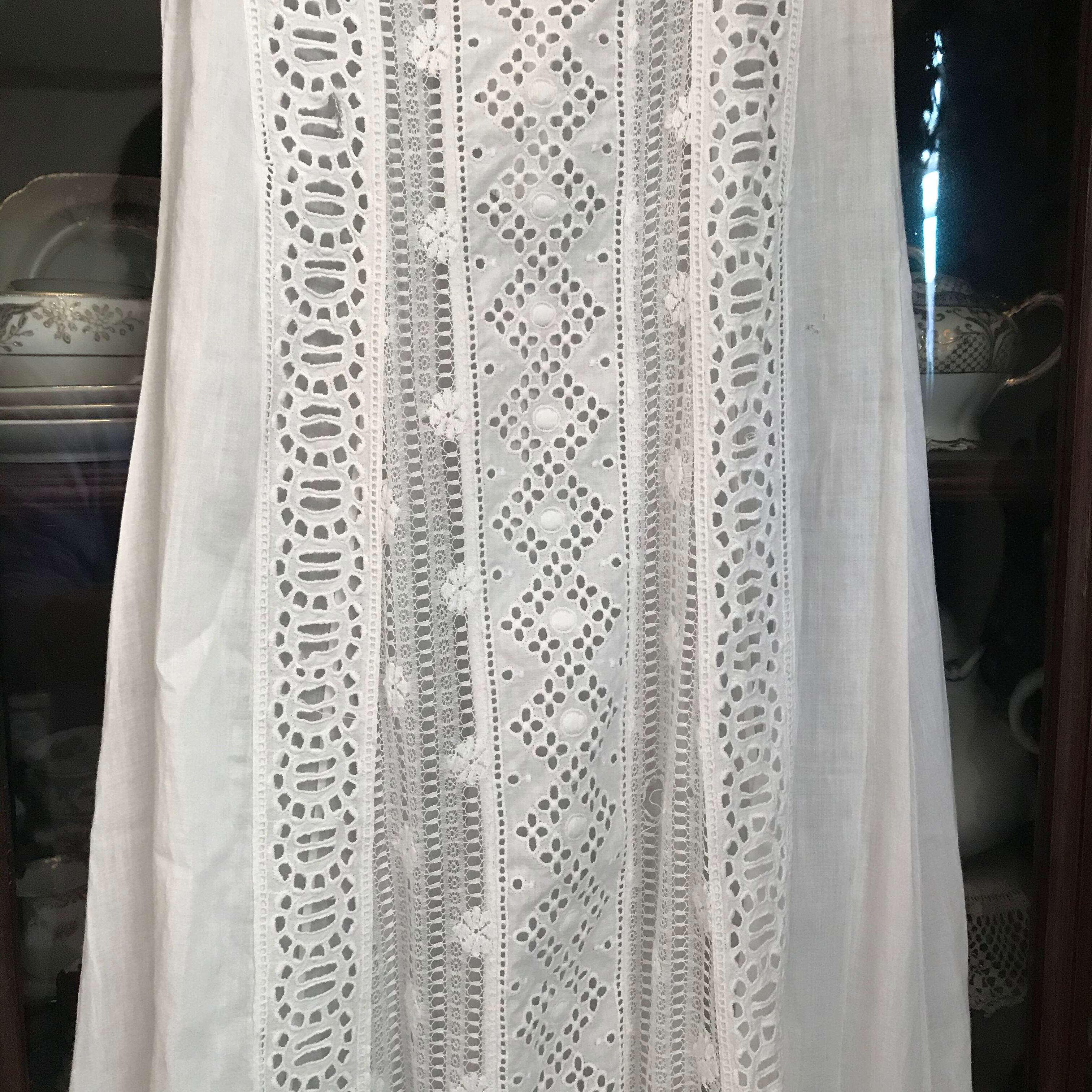 ・バスト 28㎝ 丈 87㎝ カットワークレースが綺麗なロングのベビードレスです。1カ所レースのほつれがあります。フランスアンティーク。