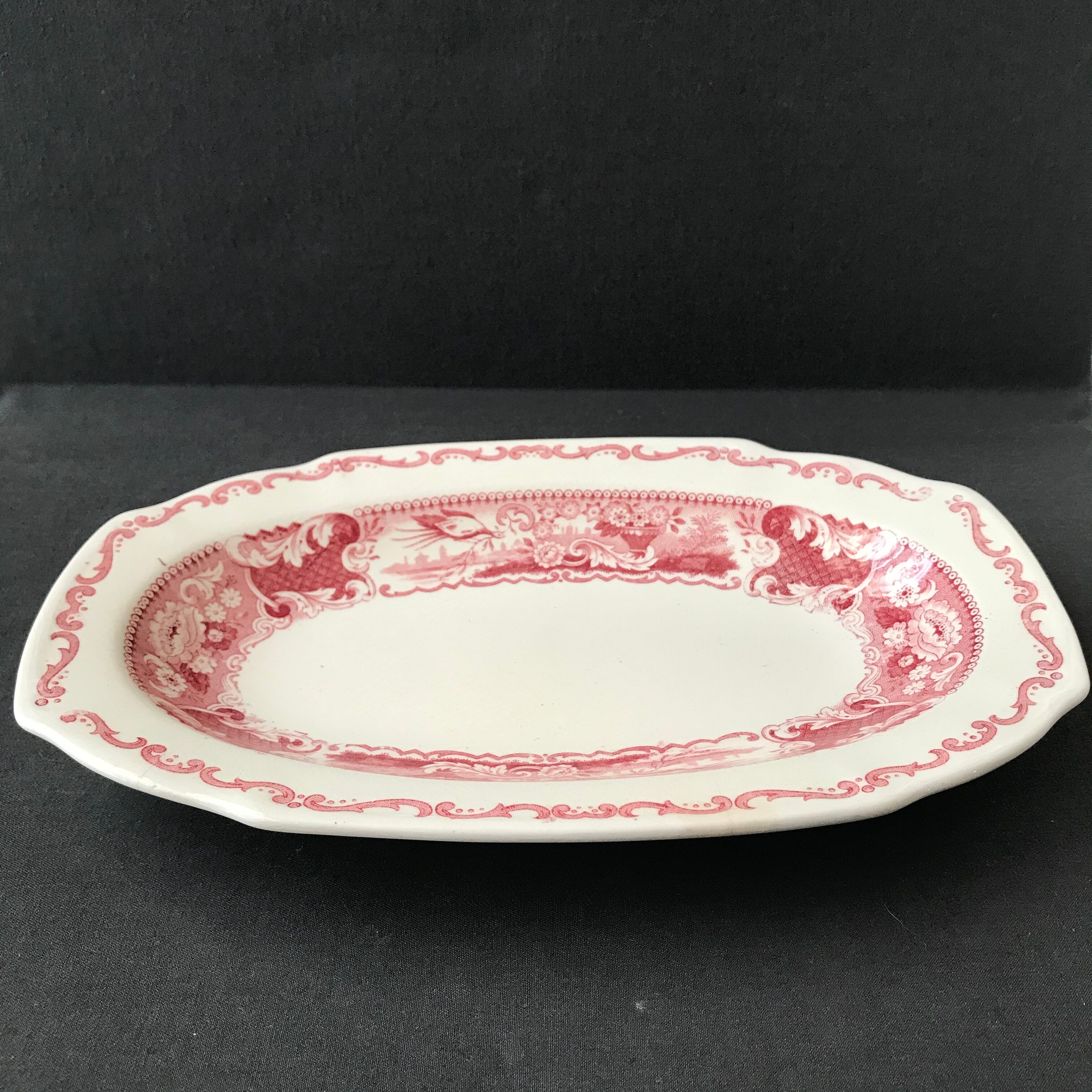・縦 15㎝ 横 24㎝ レッドのウイロウデザインのラビエプレートです。写真に映らない程の薄らとしたラインが1.5㎝あります。その他は良い状態です。フランスアンティーク。
