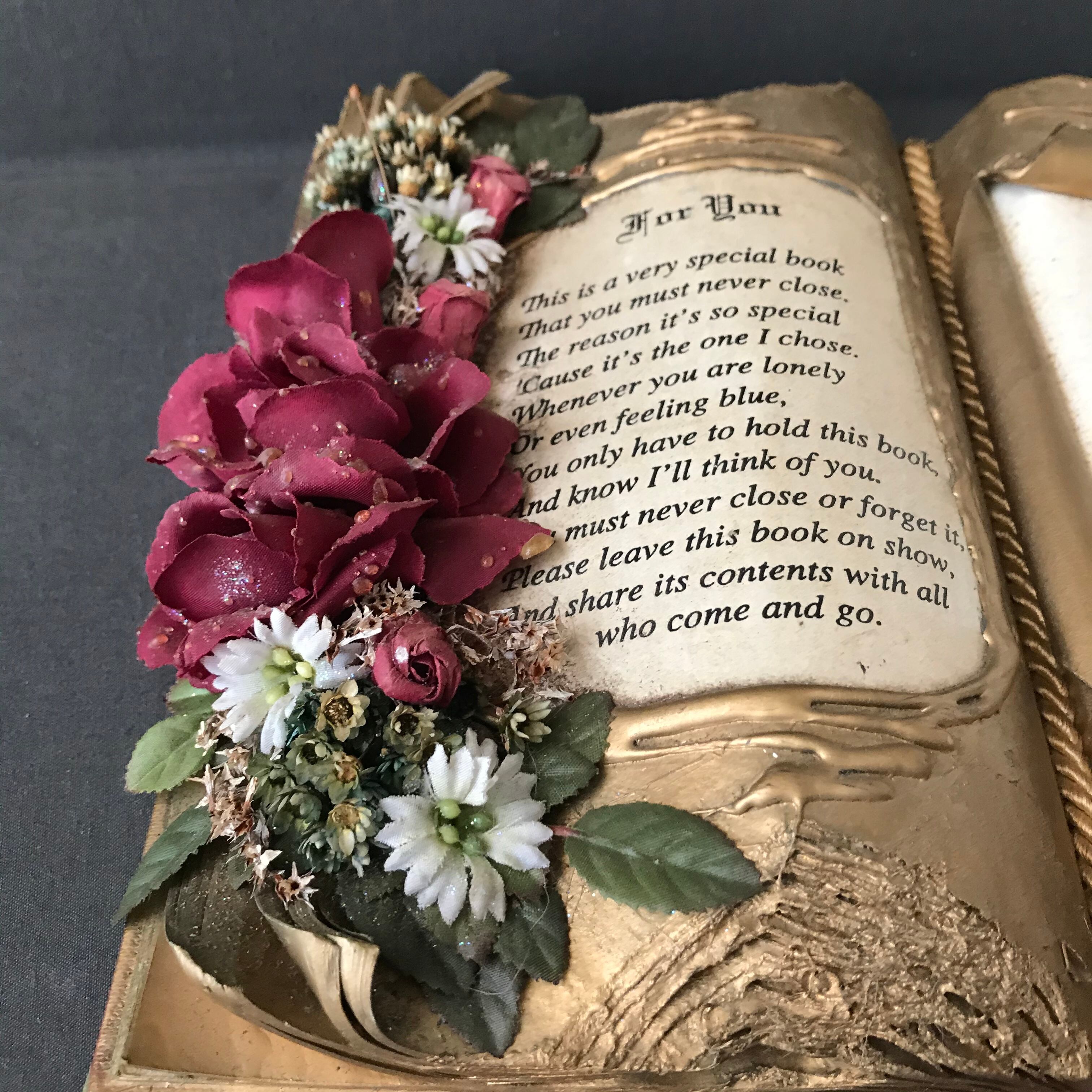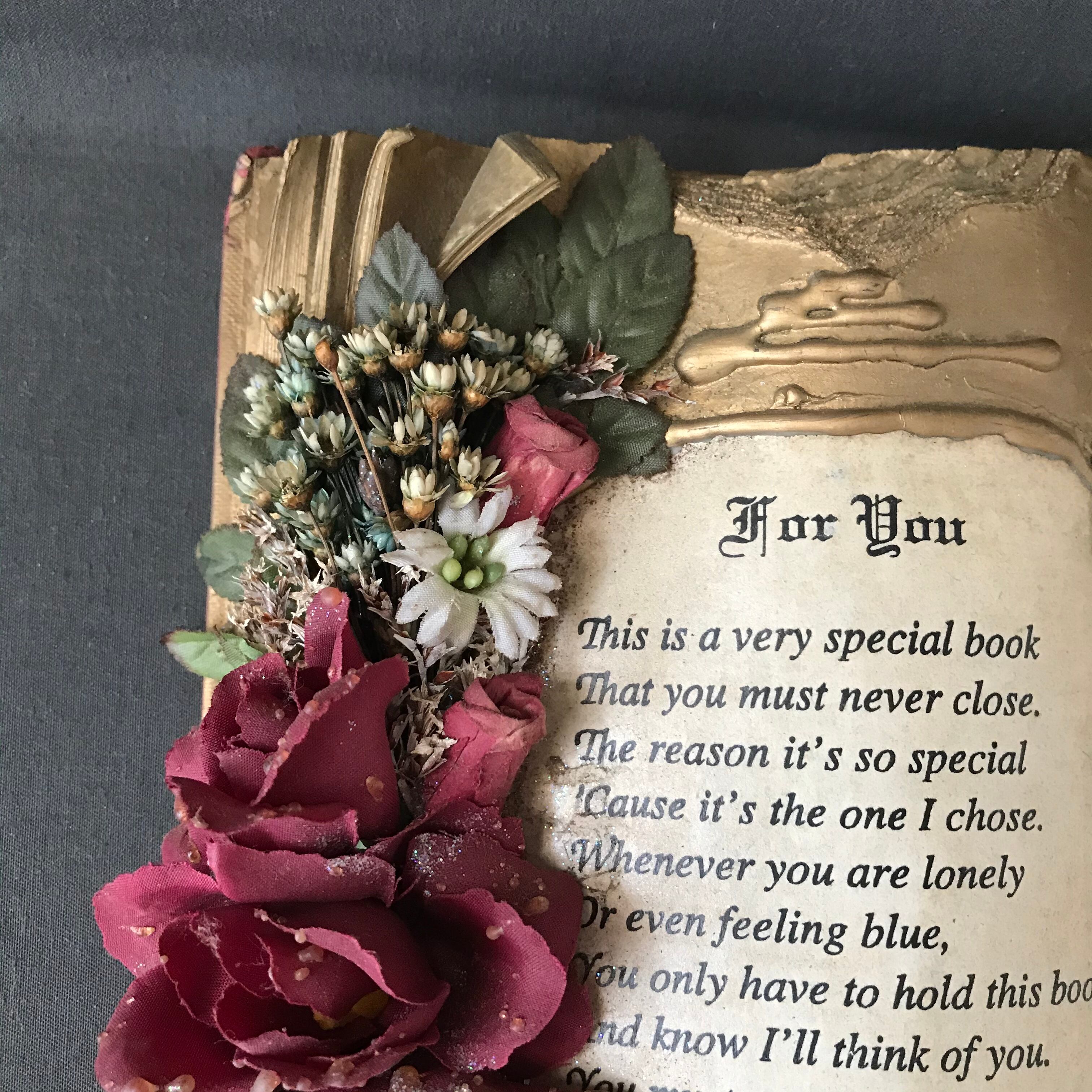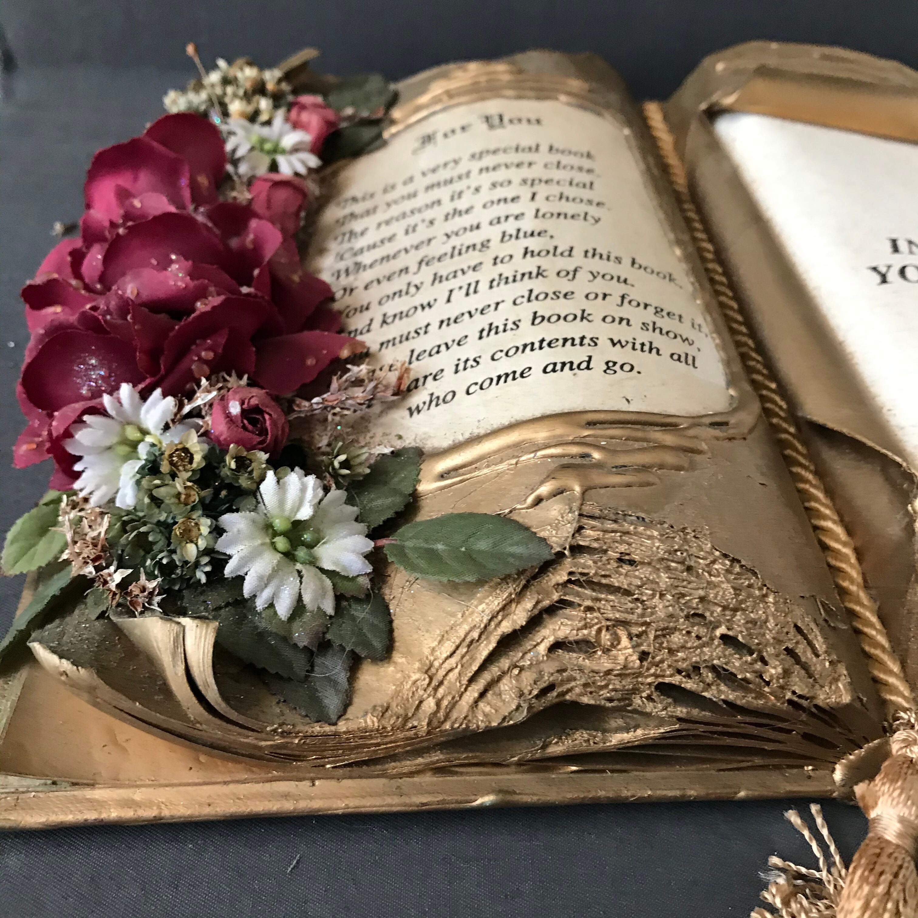 ・縦 22㎝ 横 29㎝ アンティークBOOKにバラやお花を付けたり、ペイントしてデコレーションしたBOOKのオブジェです。イギリスビンテージ。