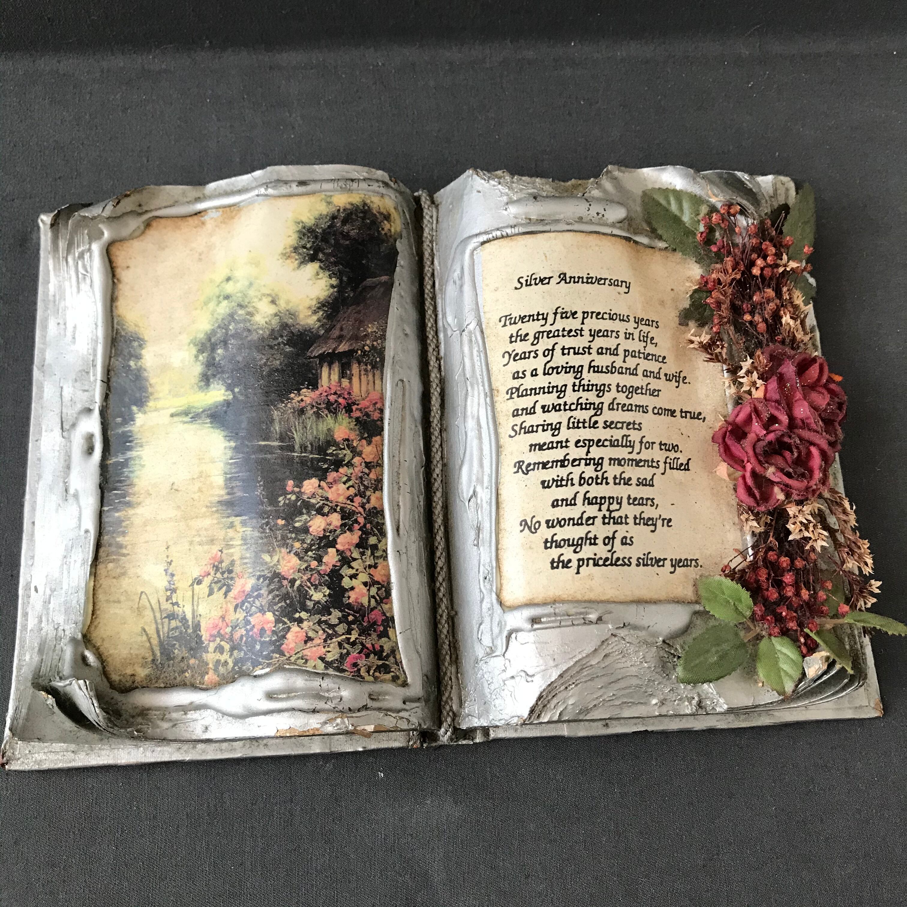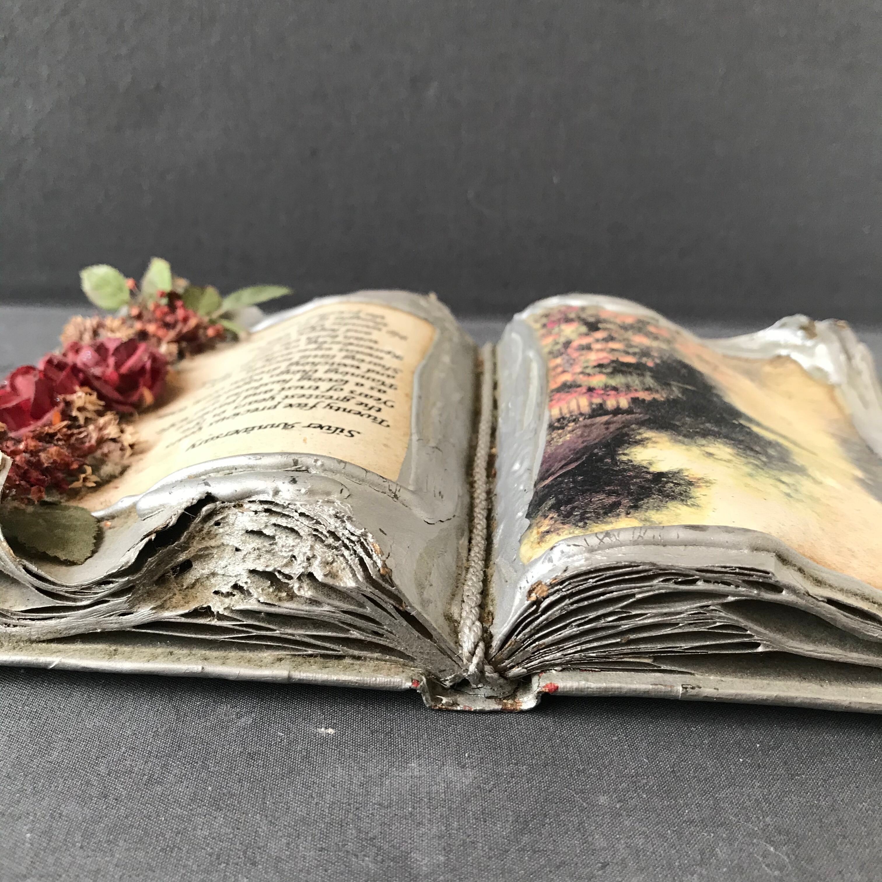 ・縦 15㎝ 横 22㎝ 厚さ 2.3㎝ アンティークBOOKをペイントして、アーティシャルフラワーやドライフラワーでデコレーションしたBOOKです。イギリスビンテージ。