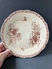 ・直径 24.2㎝ シェルエルイ ストローハット、パニエ 勿忘草 蝶々や蜂が描かれたプレートです。ヒビカケ無く経年の割に良い状態です。フランスアンティーク。