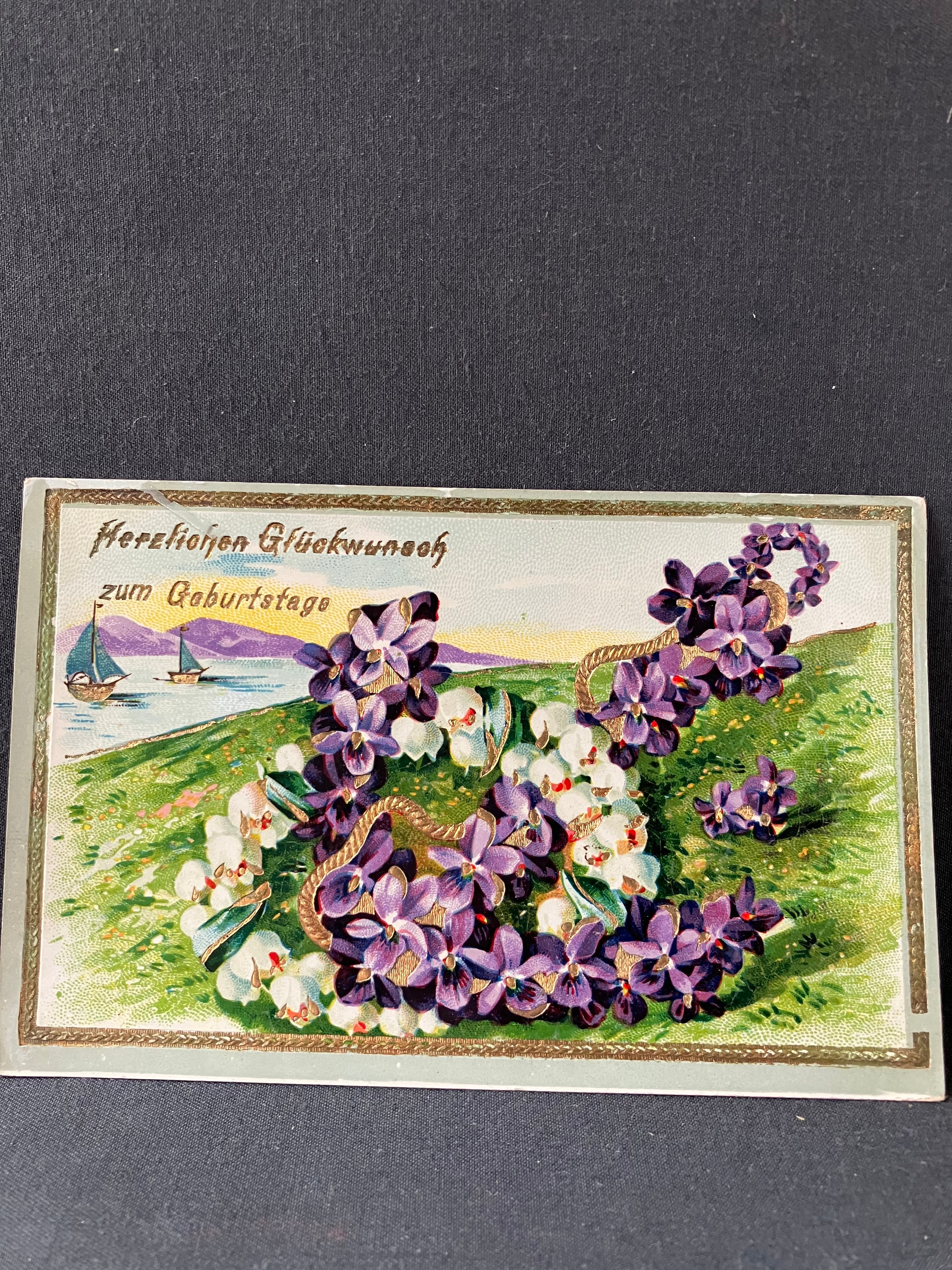 スズラン とスミレの錨のカードとスズランのエンボスが綺麗なカードのセットです。イギリスアンティーク。