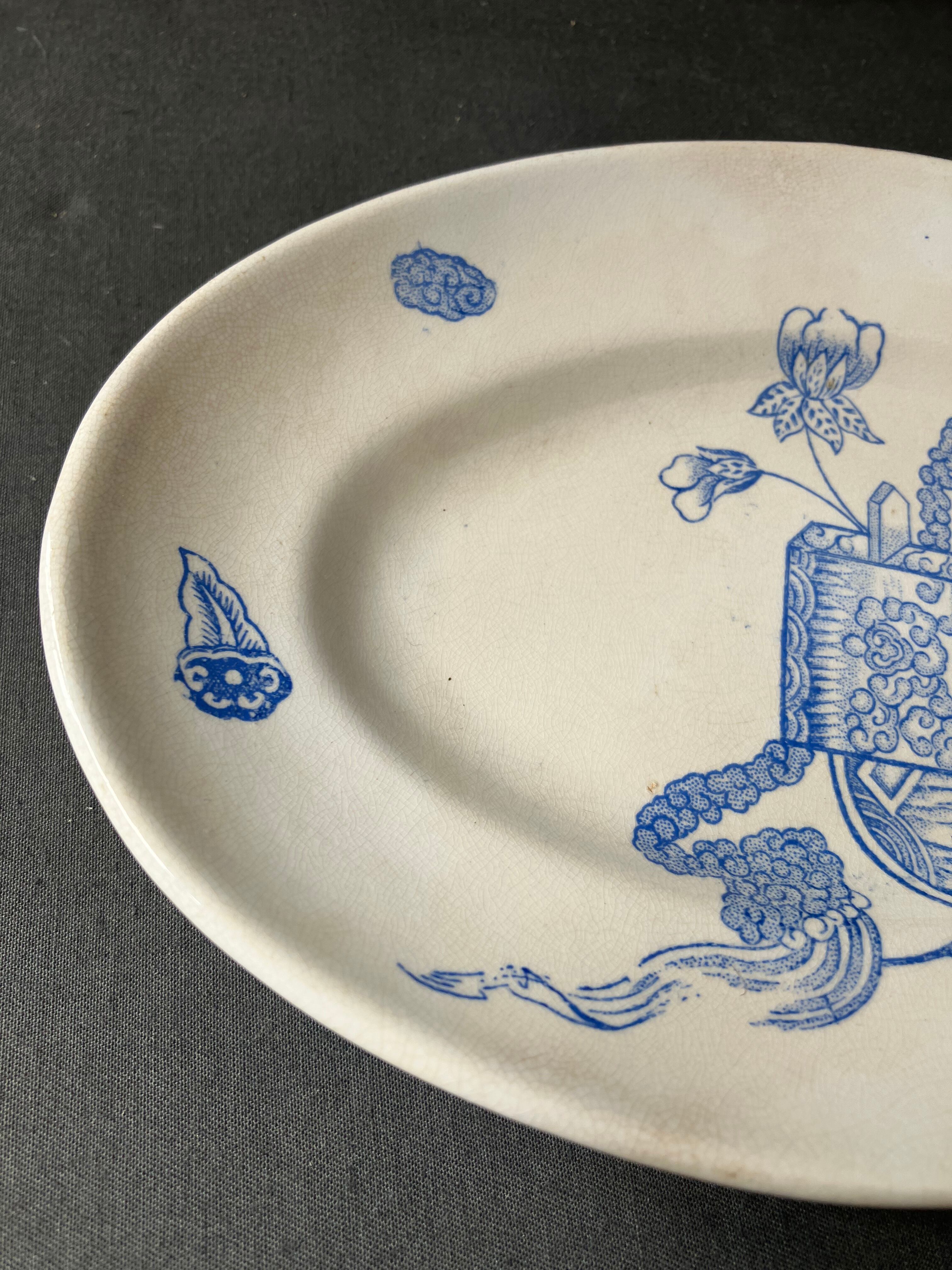 ・縦 13.3㎝ 横 19.5㎝ シノワズリ 可愛らしいサイズ感のラビエプレートです。ヒビカケ無く経年の割に良い状態です。フランスアンティーク。