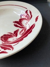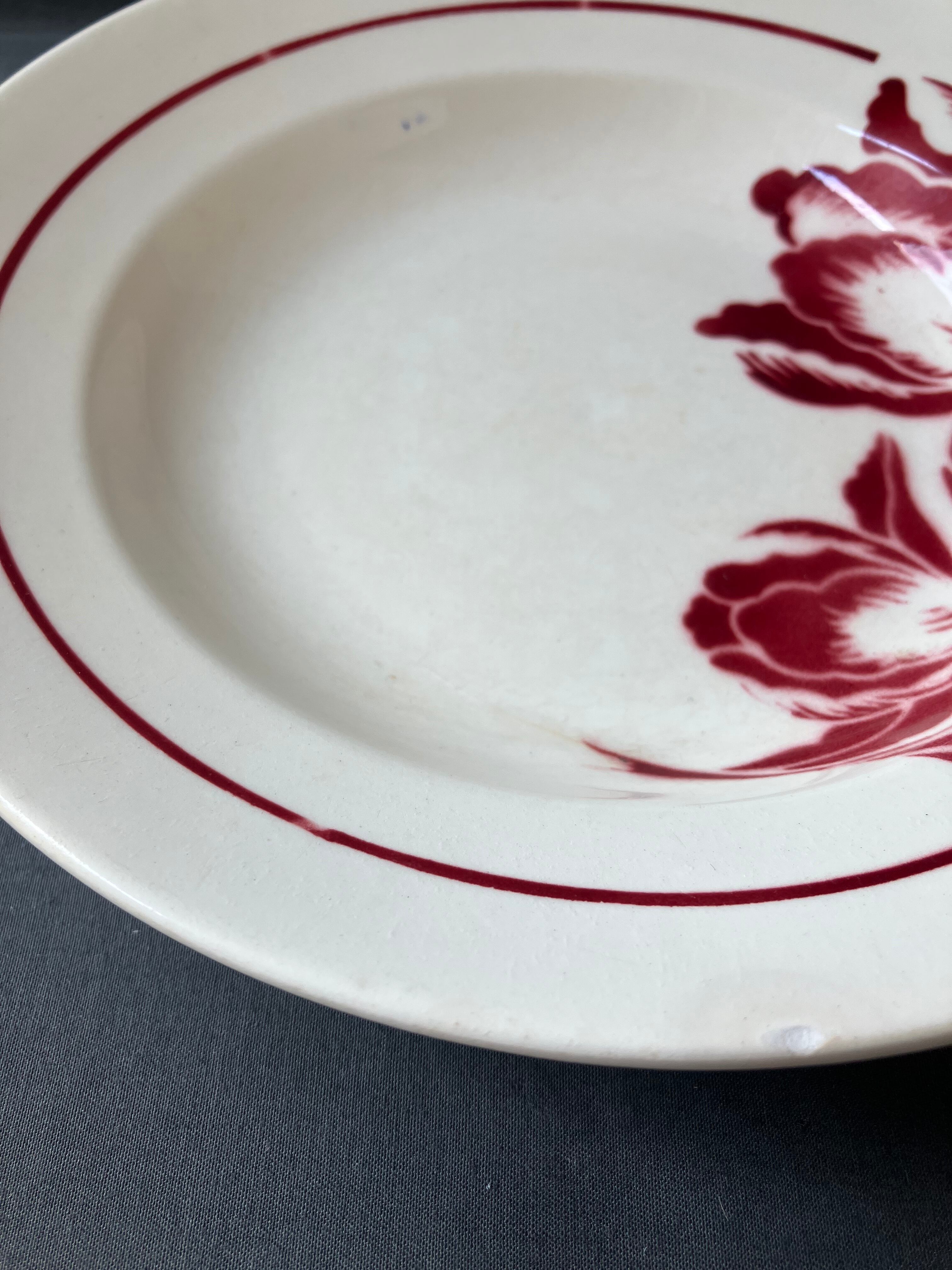 ・直径 22㎝ バドンビレ チューリップの絵付けが綺麗なプレートです。写真に映らない程の小さなチップが2ヶ所あります。その他は良い状態です。フランスアンティーク。