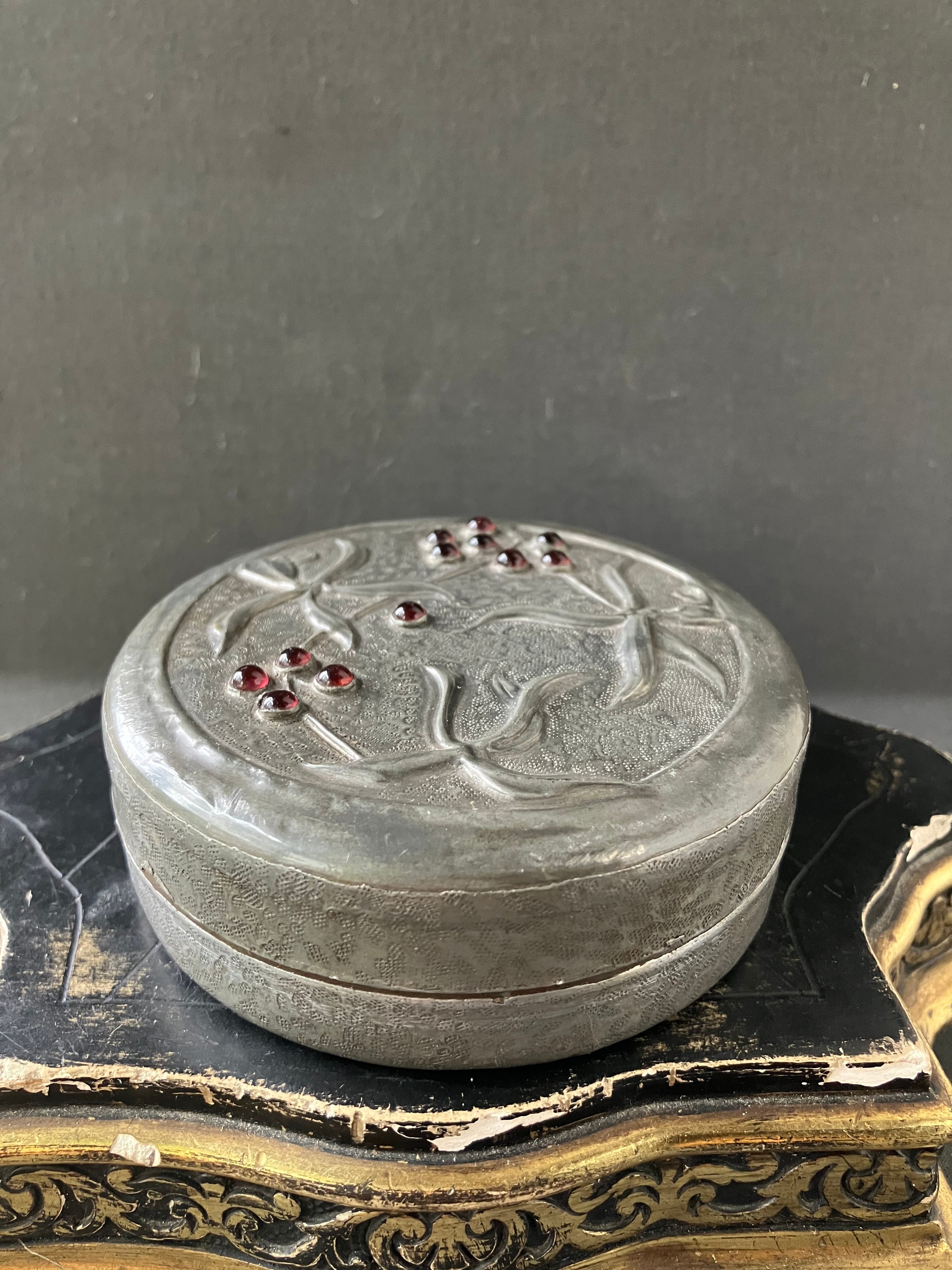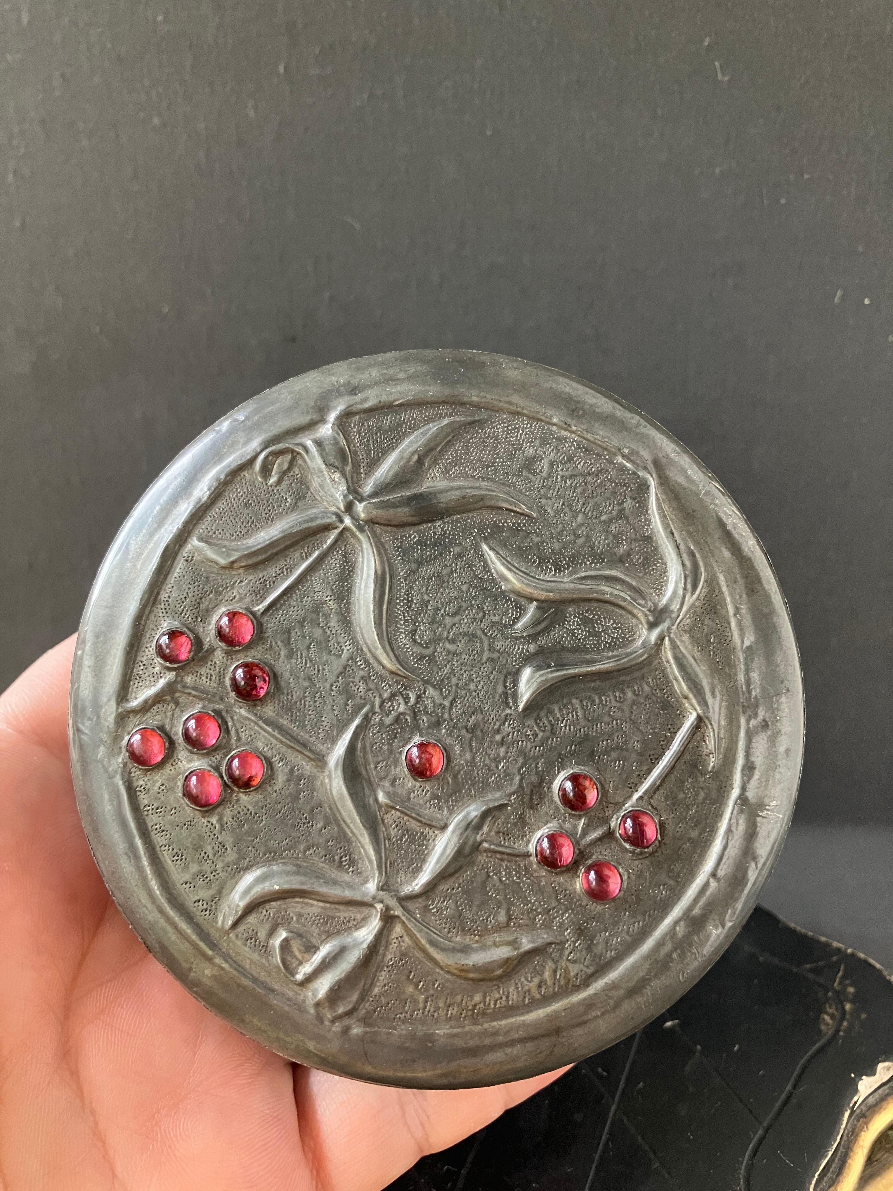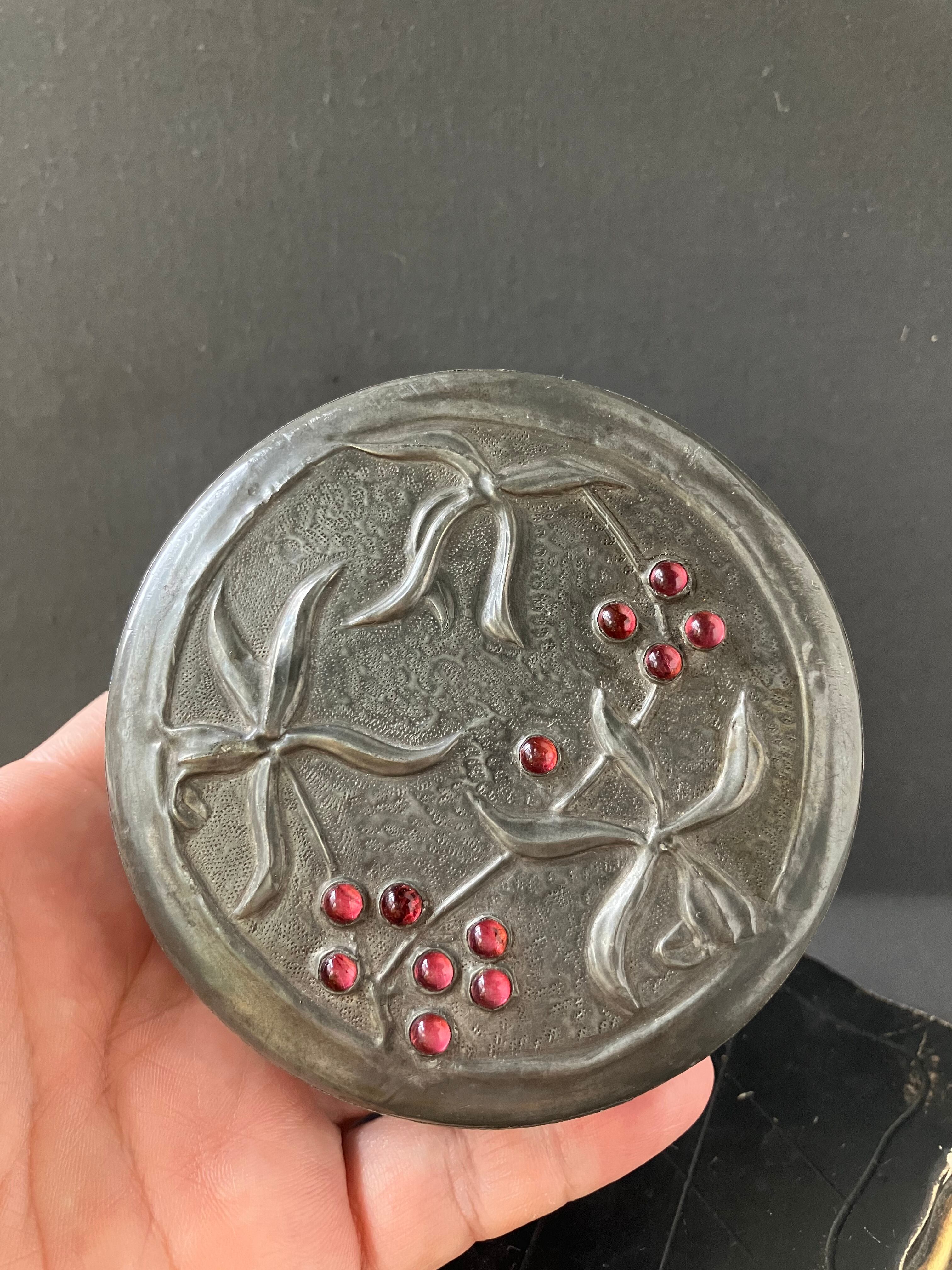 ・直径 9㎝ 厚さ 3㎝ エタン製のアールヌーボー の素晴らしいBOXです。クランベリーガラスも大変綺麗です。フランスアンティーク。