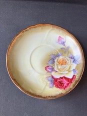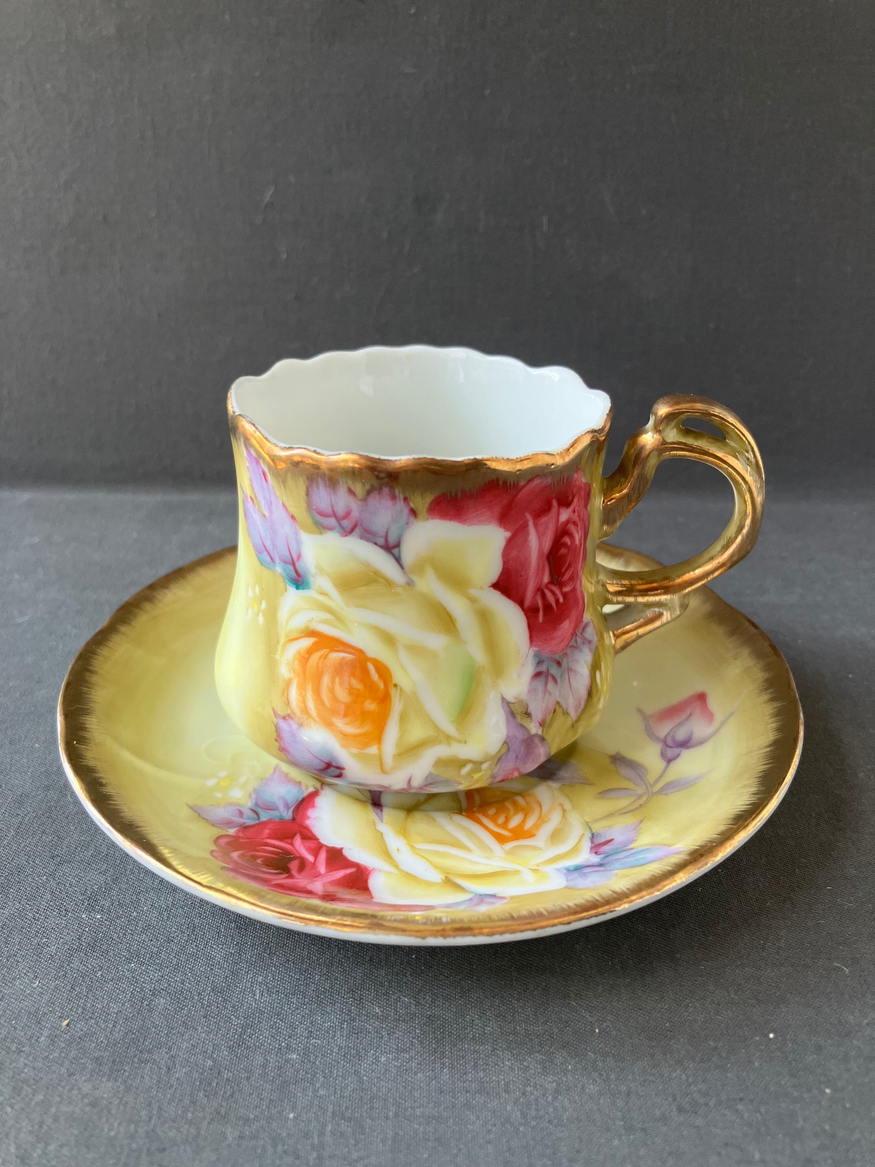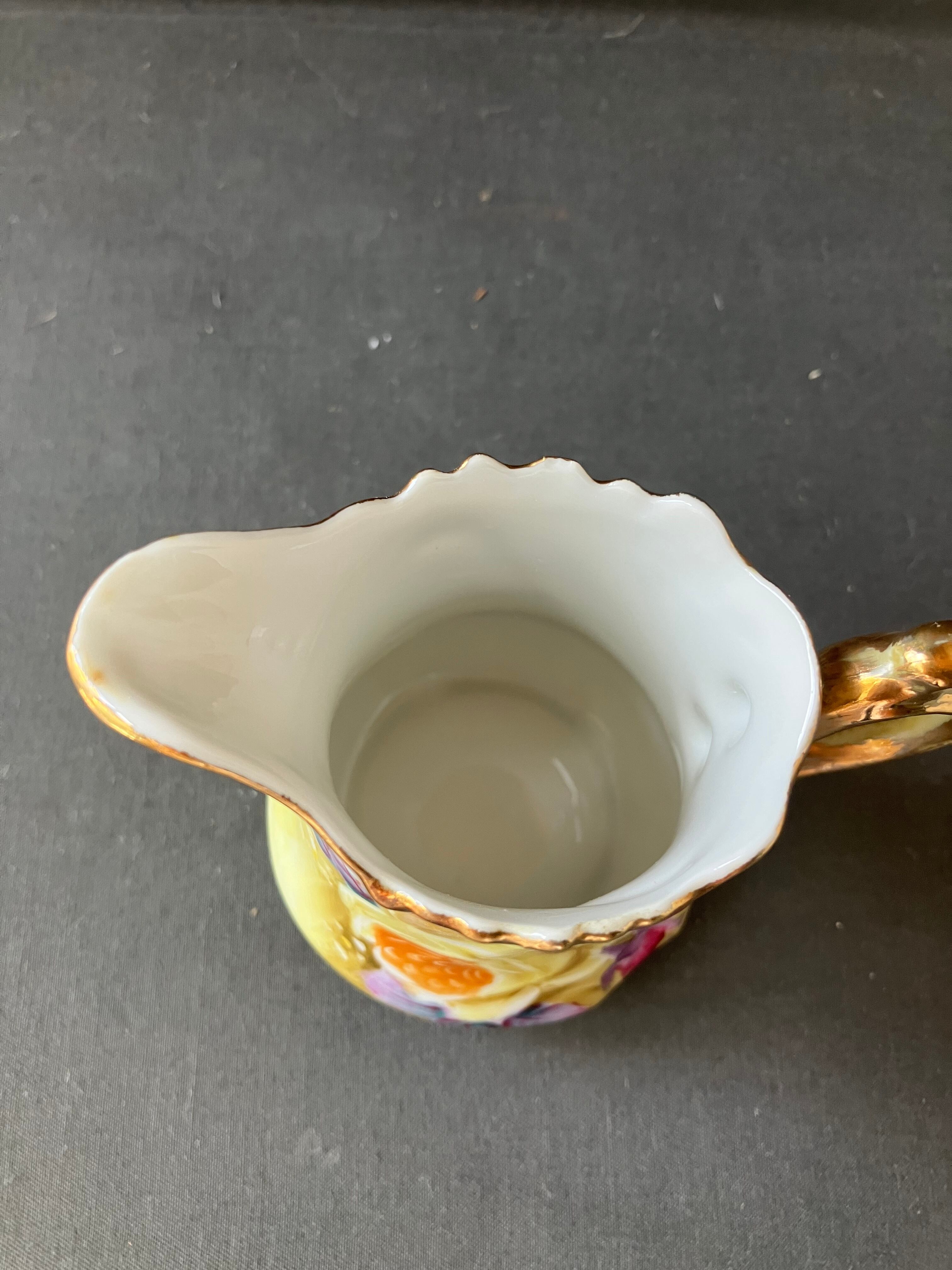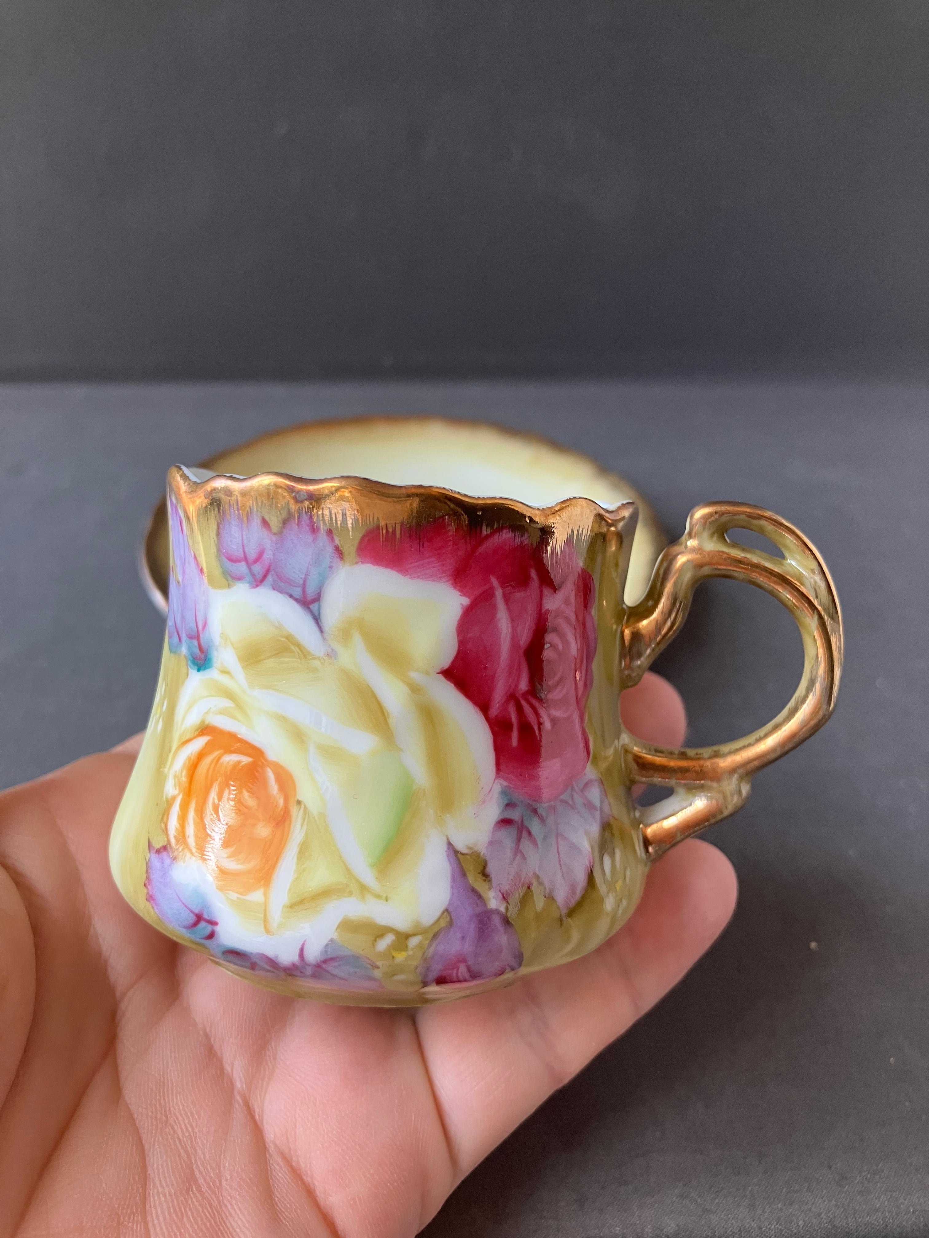 Antoinette のカップ&ソーサー 2客とシュクリエ、クレミエのセットです。ハンドペイントのバラが素晴らしいです。ヒビカケ無く経年の割に良い状態です。イギリスアンティーク。