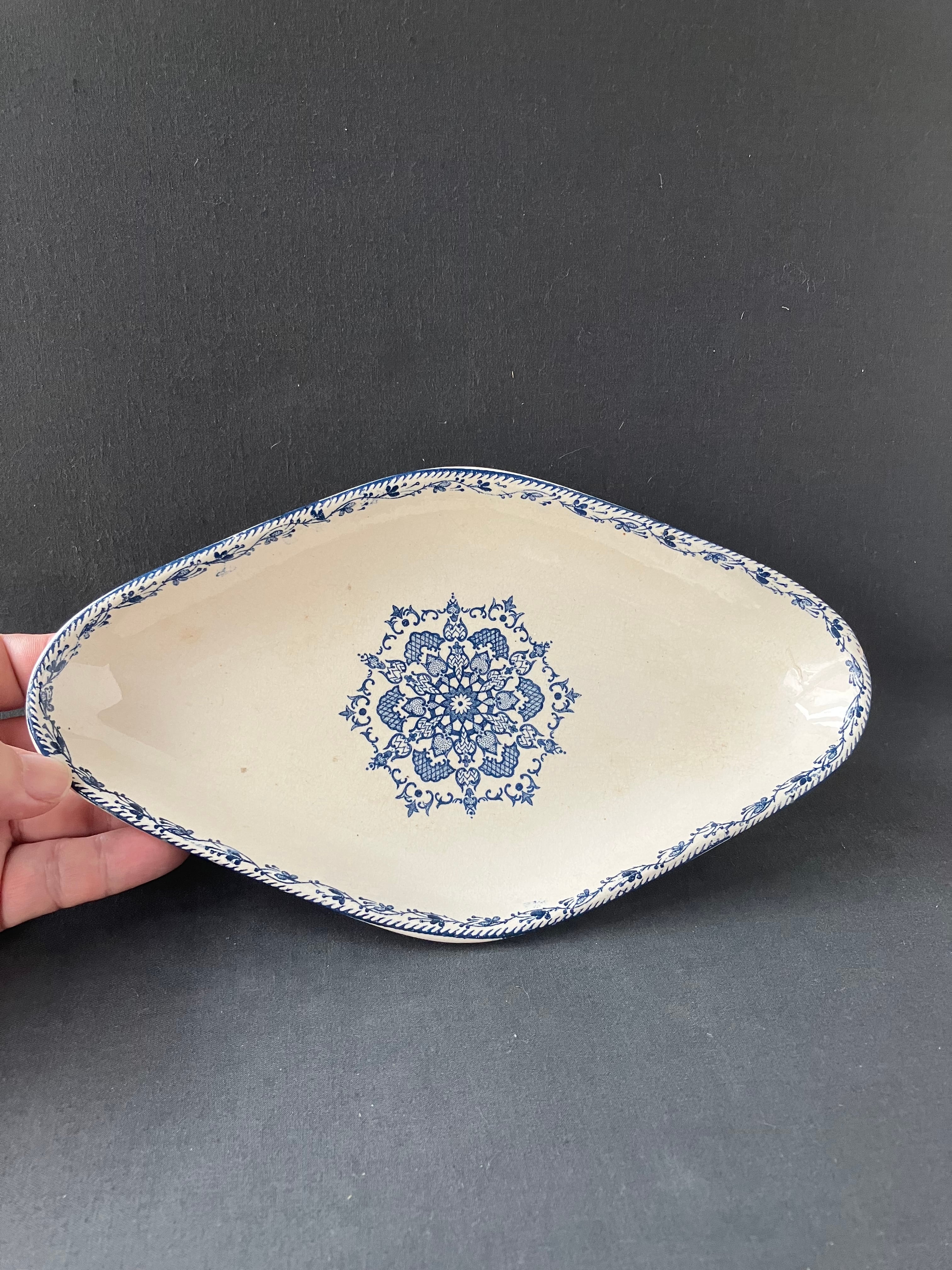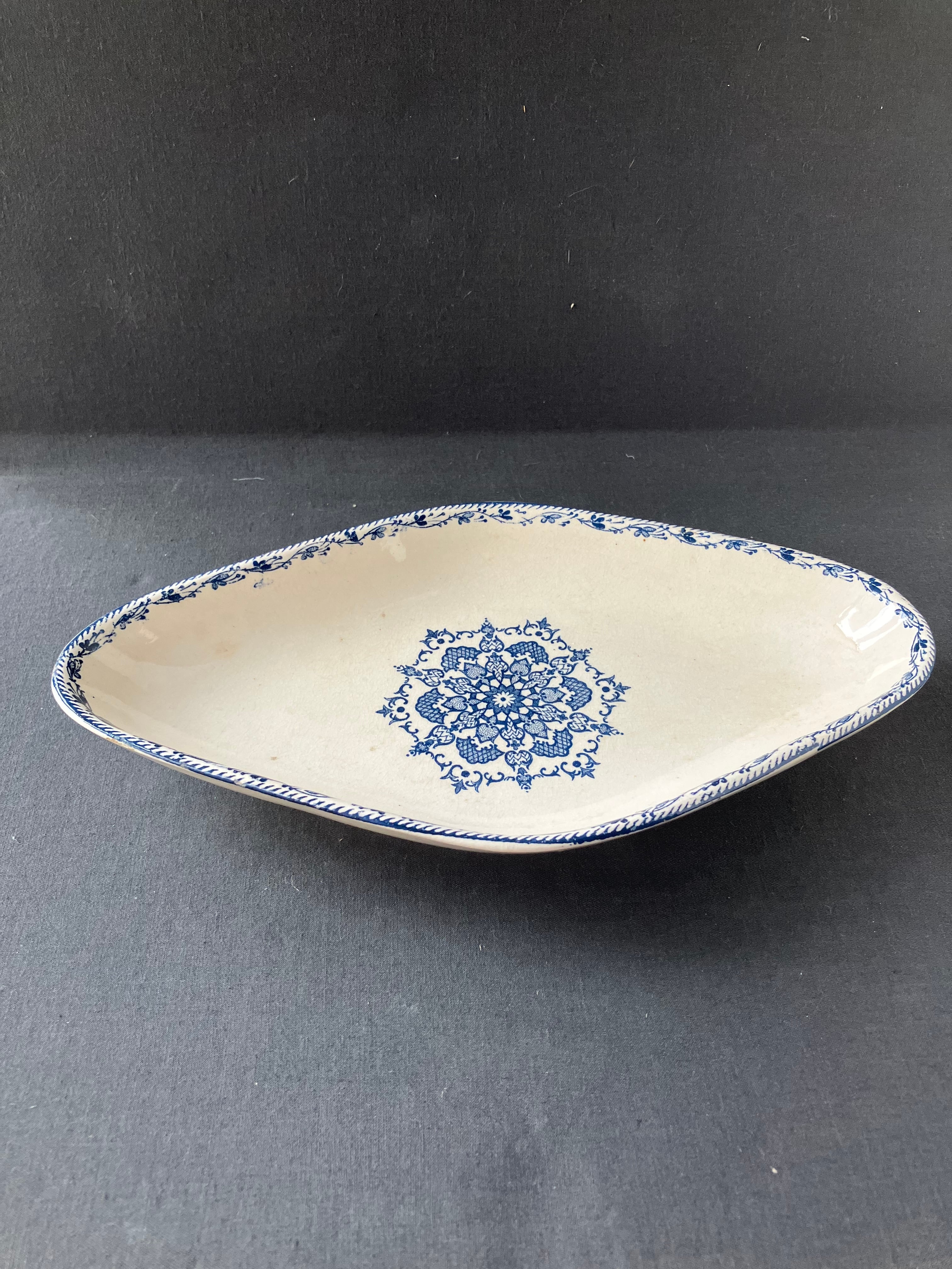 ・縦 13.5㎝ 横 23.6㎝ 中央にメダリオンのレリーフも綺麗なラビエプレートです。若干の釜傷はございますが、ヒビカケは無く経年の割に良い状態です。フランスアンティーク。