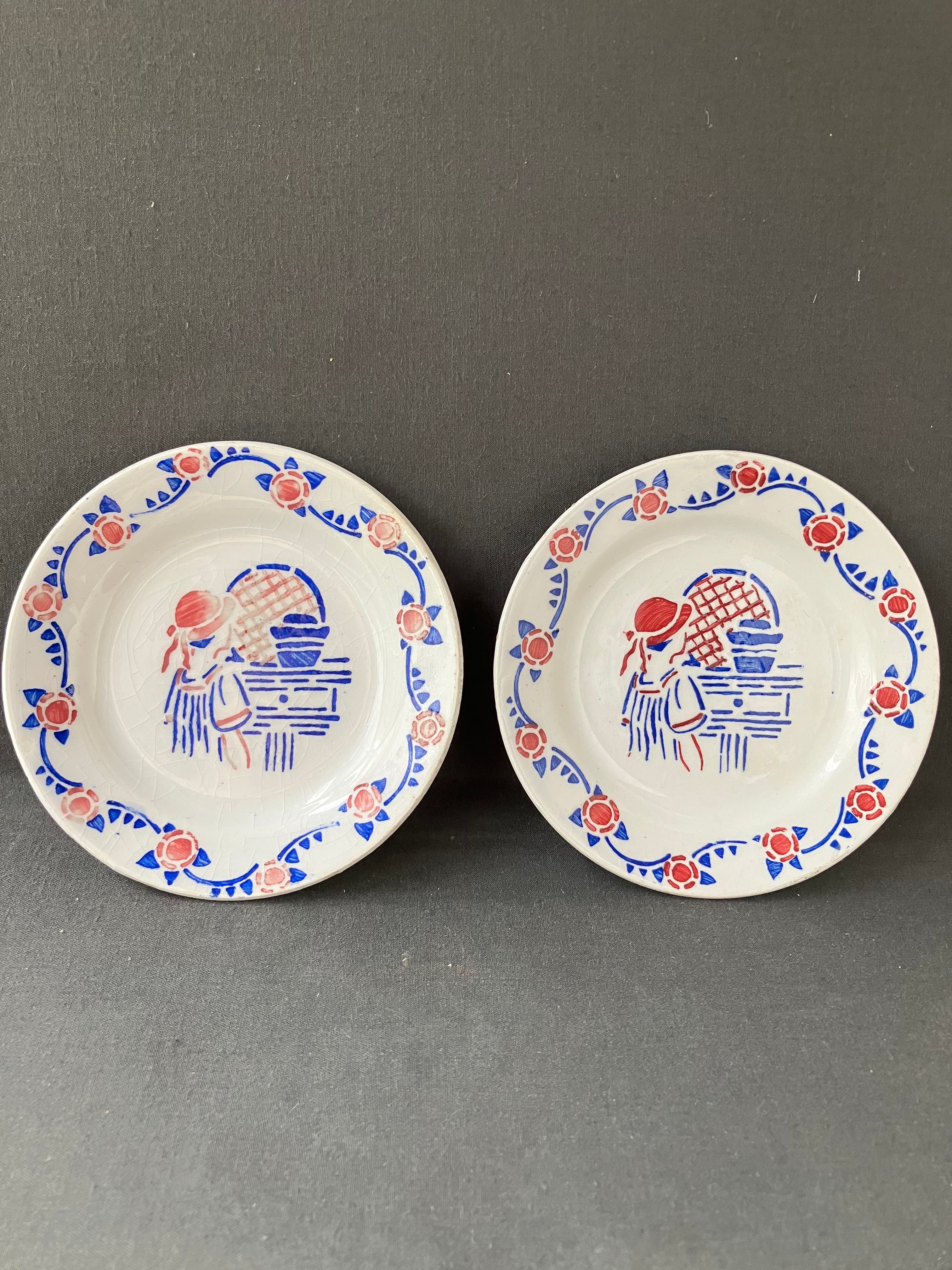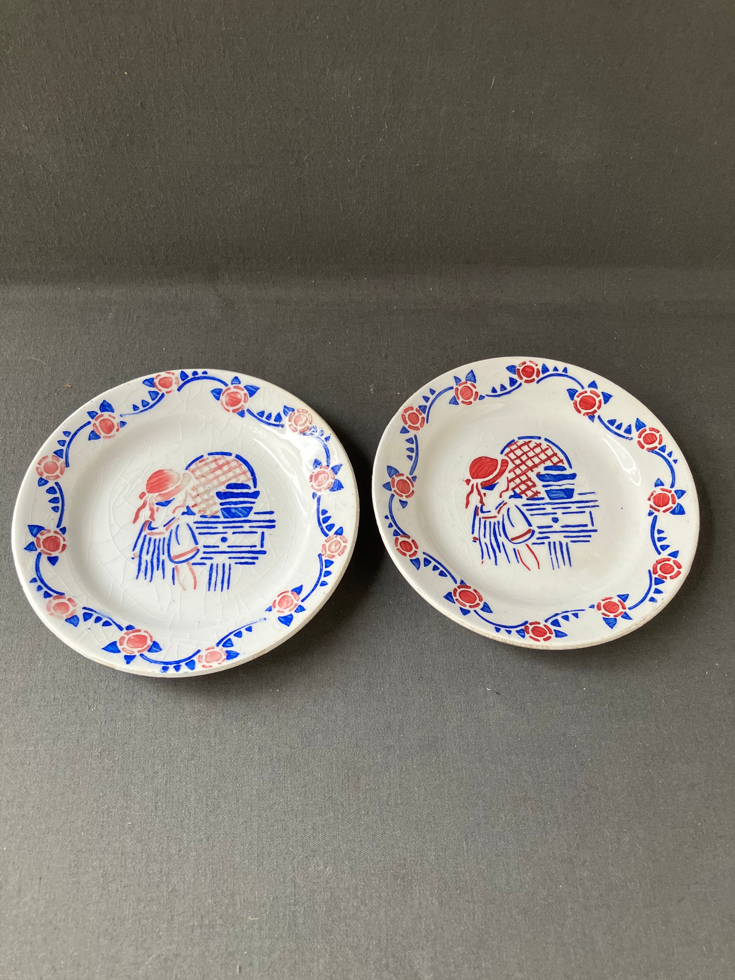 ・直径 11㎝ 赤ずきんちゃんのディネット2枚セットです。縁に多少のスレはございますが2枚とも