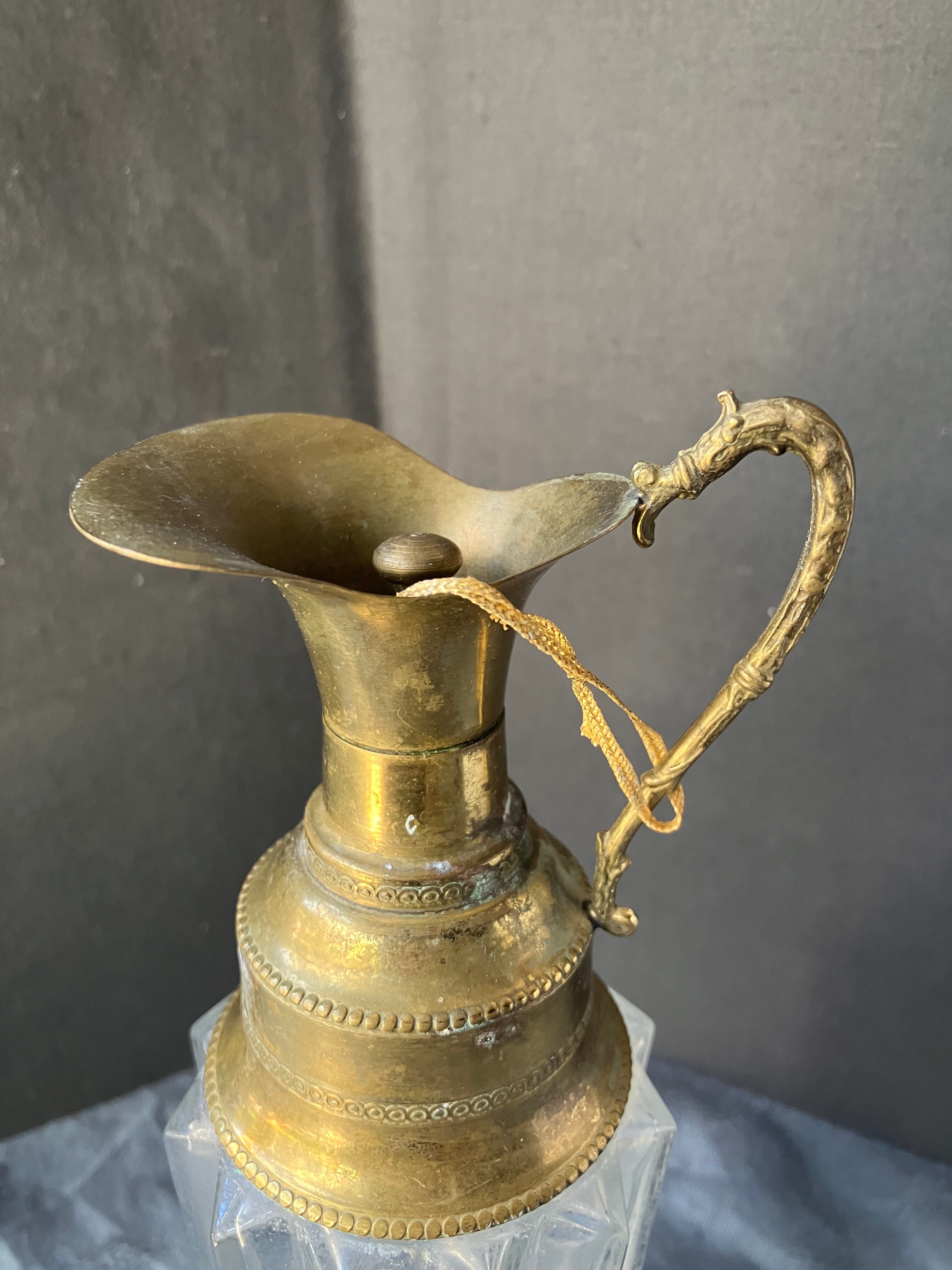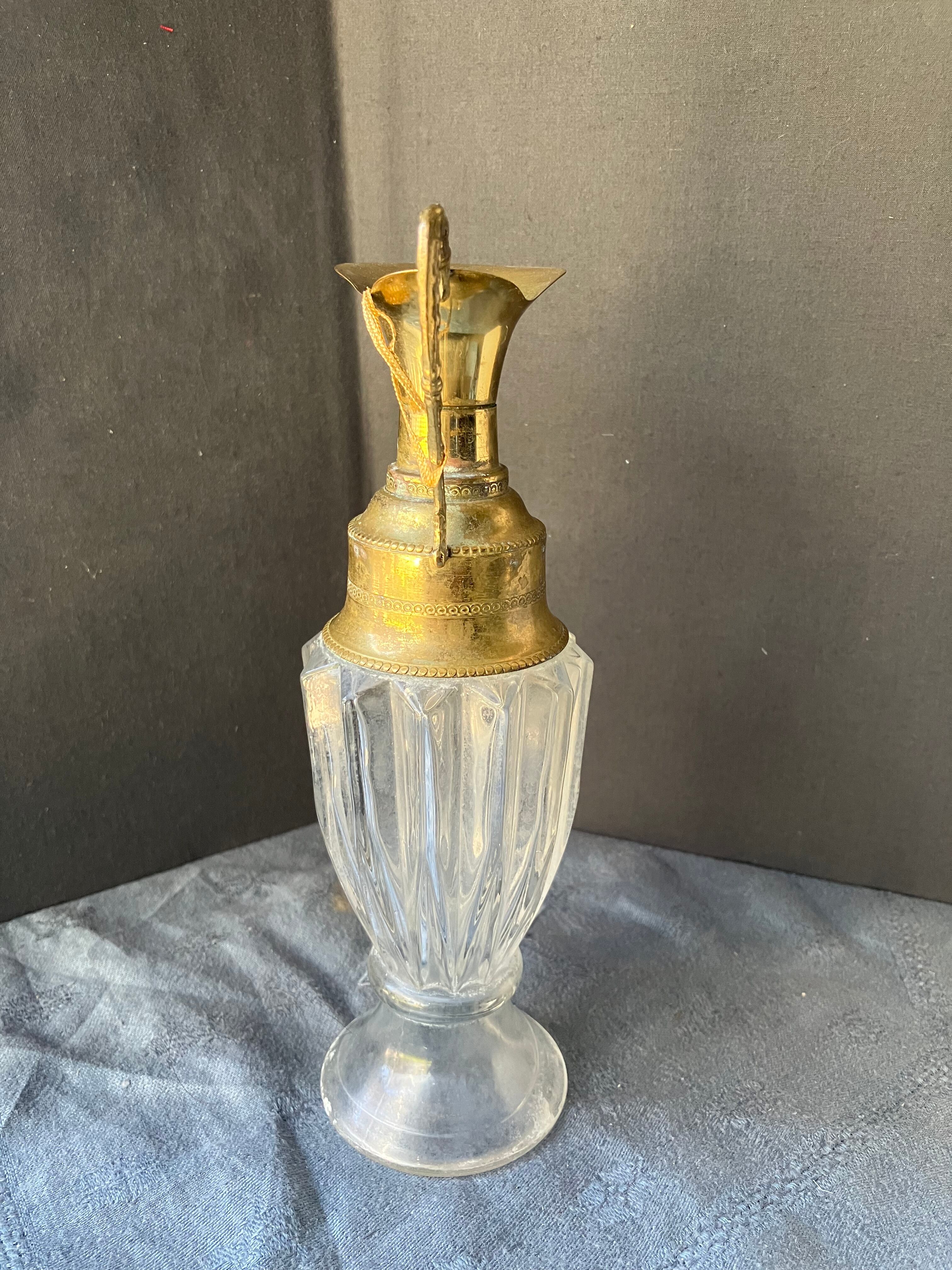 ・底 6.5㎝ 高さ 21.5㎝ カットガラスと真鍮のドラゴンの持ち手が美しいパフュームボトルです。made Franceとあります。刻印がありますが判読不明の為お値段に反映しております。1ヶ所あたりがあります。中まで響いておりませんので水漏れはしません。底縁にスレがあります。蓋部分に無くさないように紐がついていますが、紐は簡単に取り外せます。フランスアンティーク。