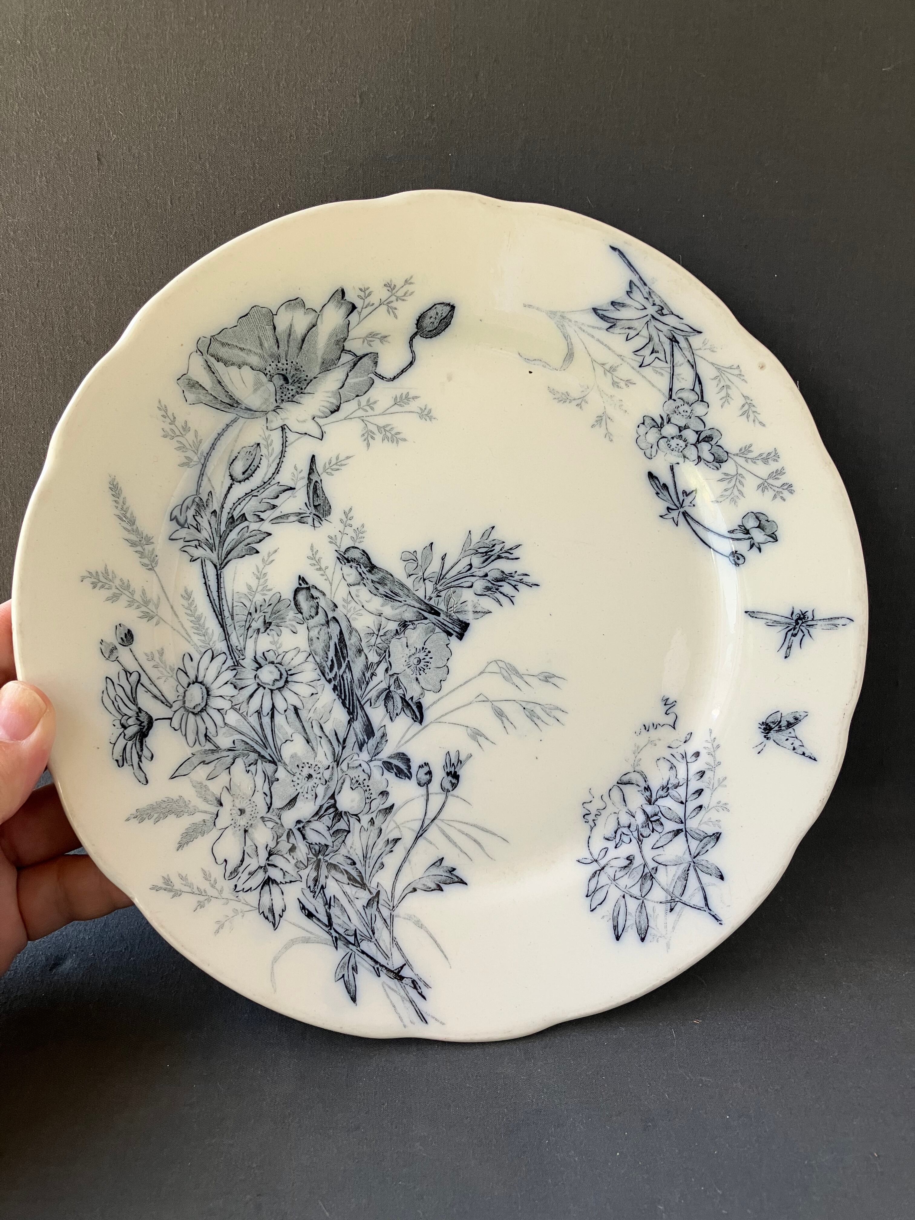 ・直径 23.5㎝ NIMY ツガイの鳥とポピーの絵付けが綺麗なエレガントなプレートです。ヒビカケ無く経年の割に良い状態のプレートです。フランスアンティーク。
