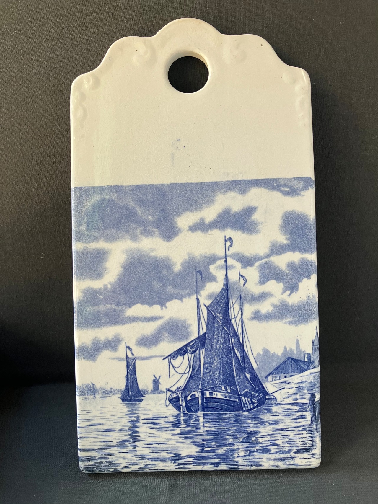 ・縦 23.5㎝ 横 12.7㎝ MAESTRRHT ヨットと海辺の様子が素晴らしいタルティネプレートです。バケットにバターを塗って載せたり、チーズやオードブルを載せてお楽しみくださいませ。ヒビカケ無く経年の割に良い状態です。フランスアンティーク。