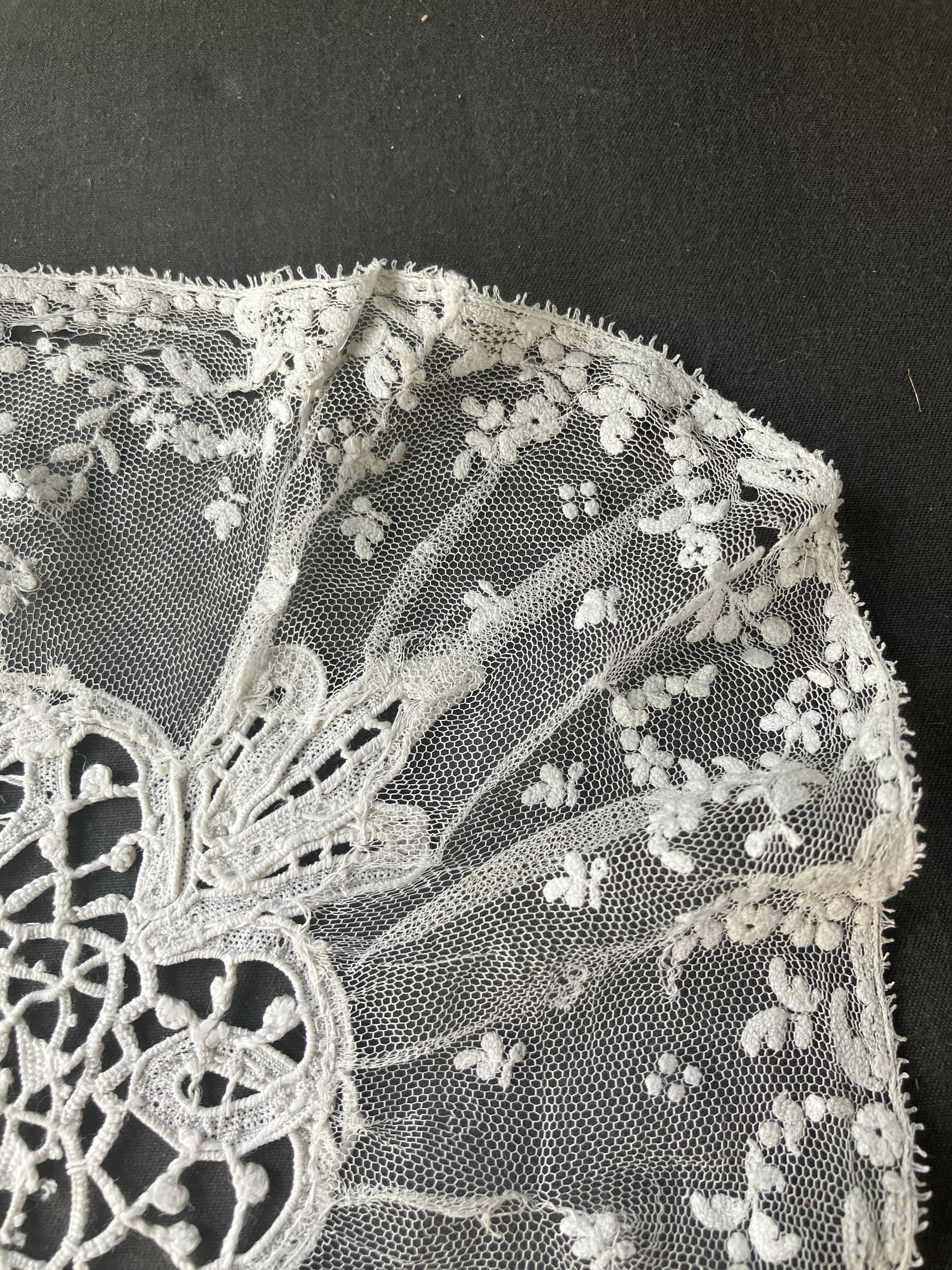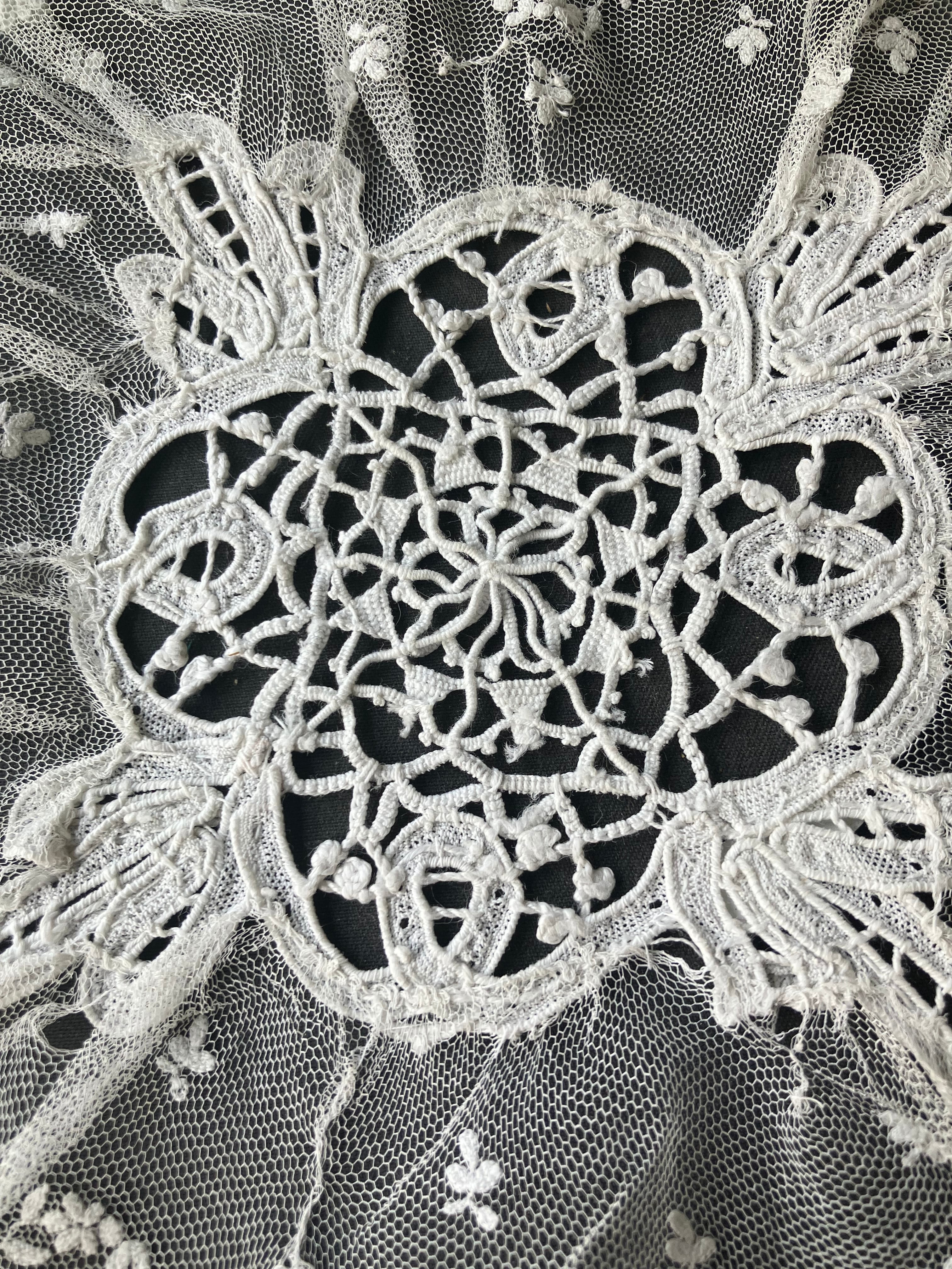 モチーフレースにチュールレースを合わせたドイリー とチュールレースのセットです。チュールレースに若干のホールがあります。1920年から30年。フランスアンティーク。