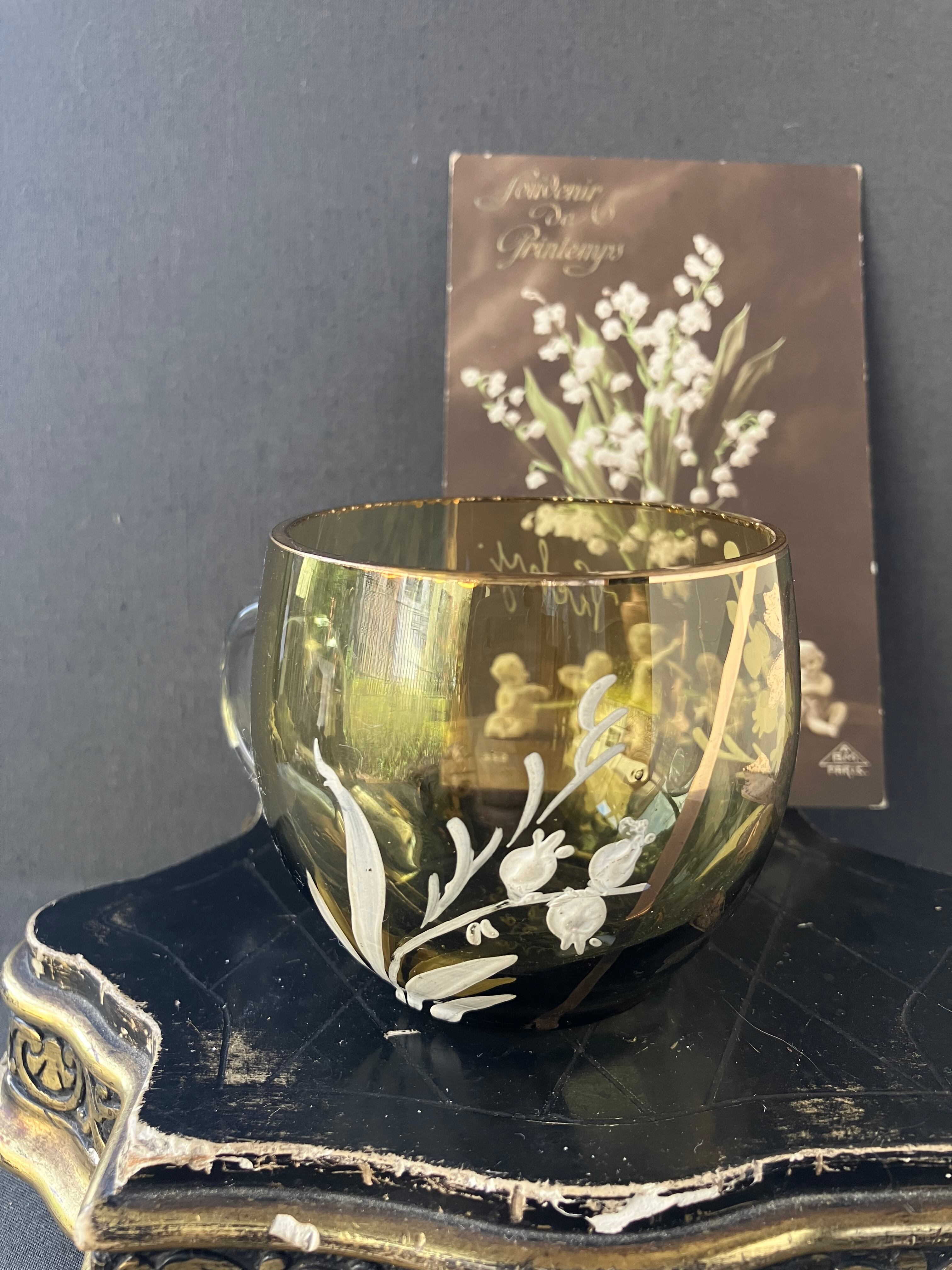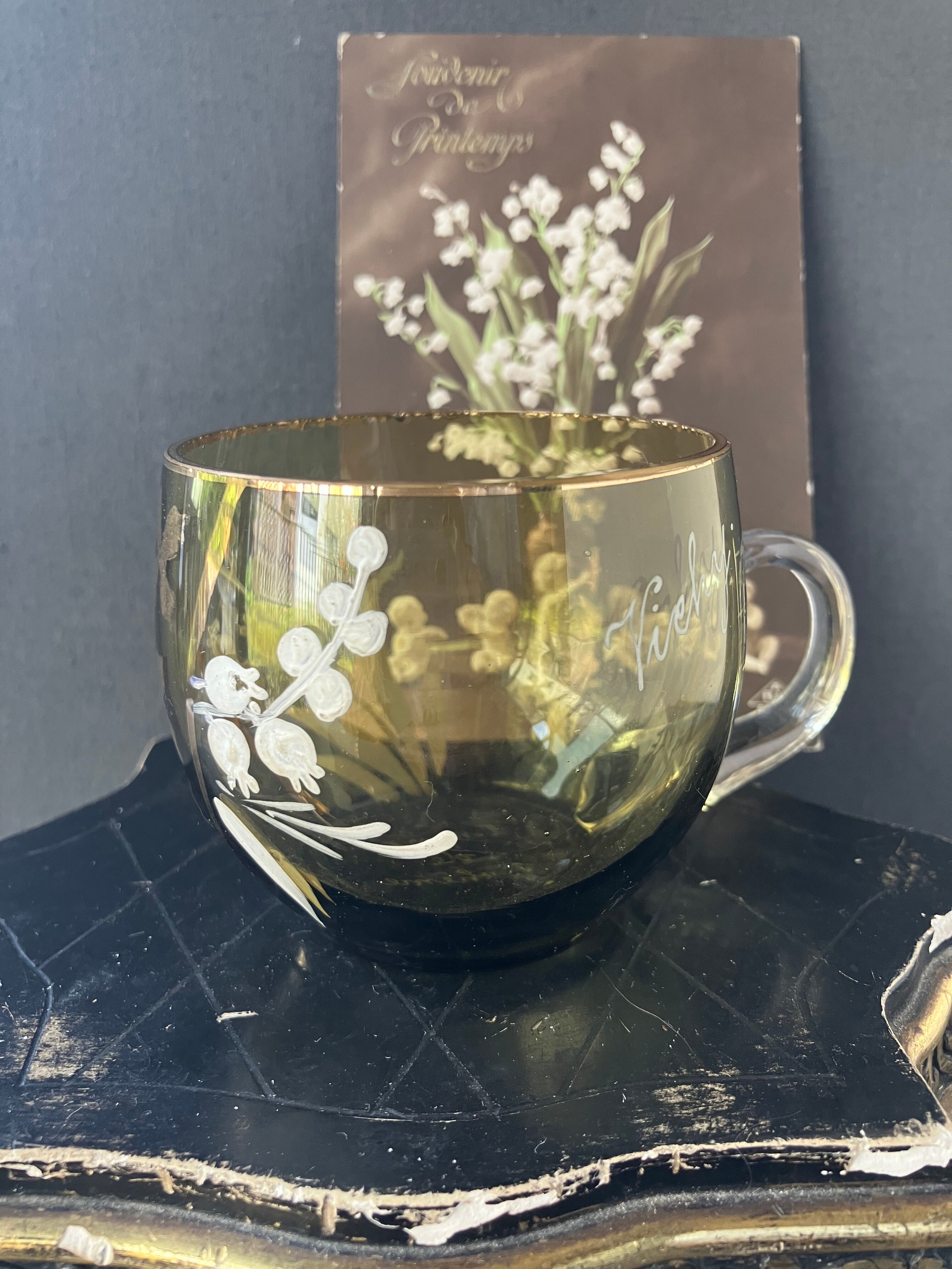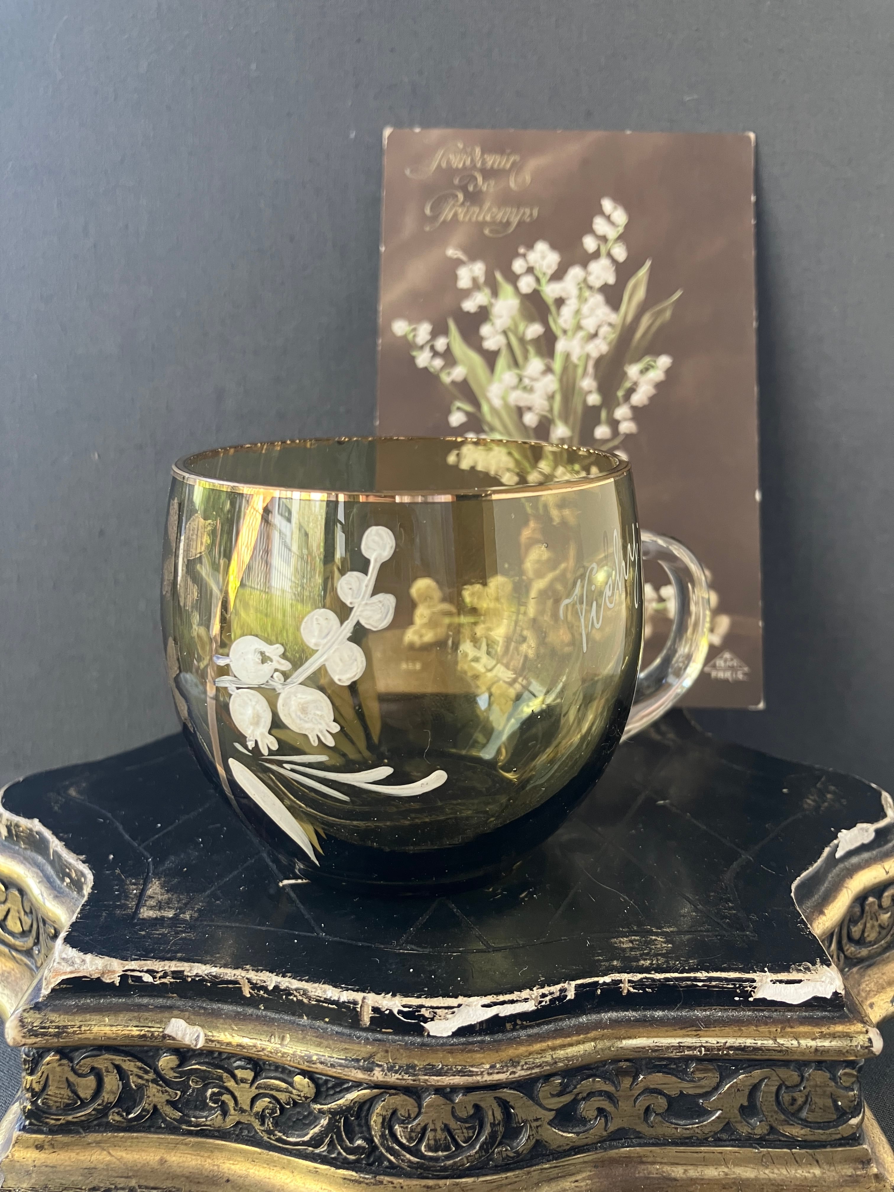 Viehy ヴィッシーのスズランのエナメルペイントのグラスです。ヒビカケ無く経年の割に良い状態です。1920年から30年,。フランスアンティーク。