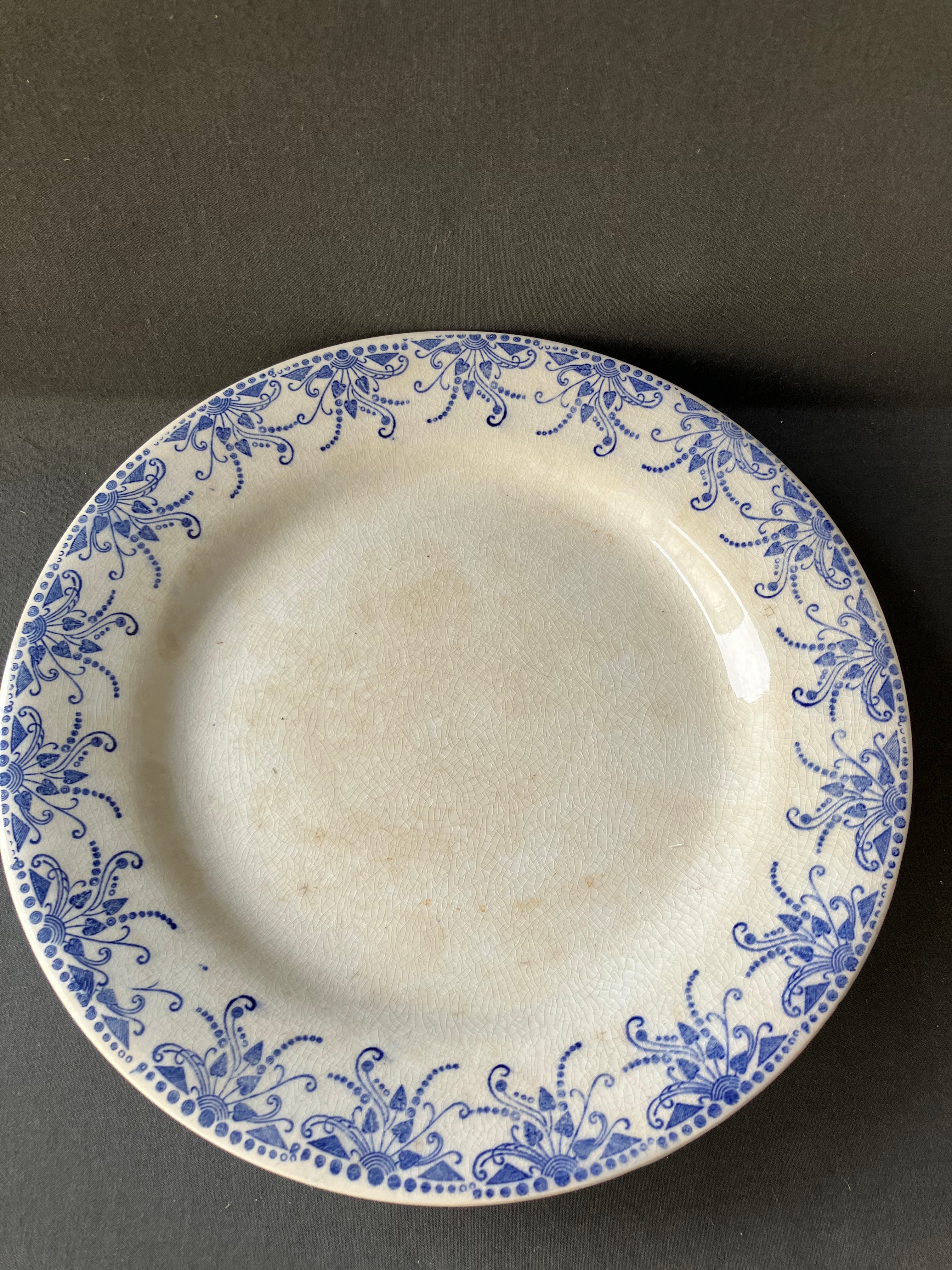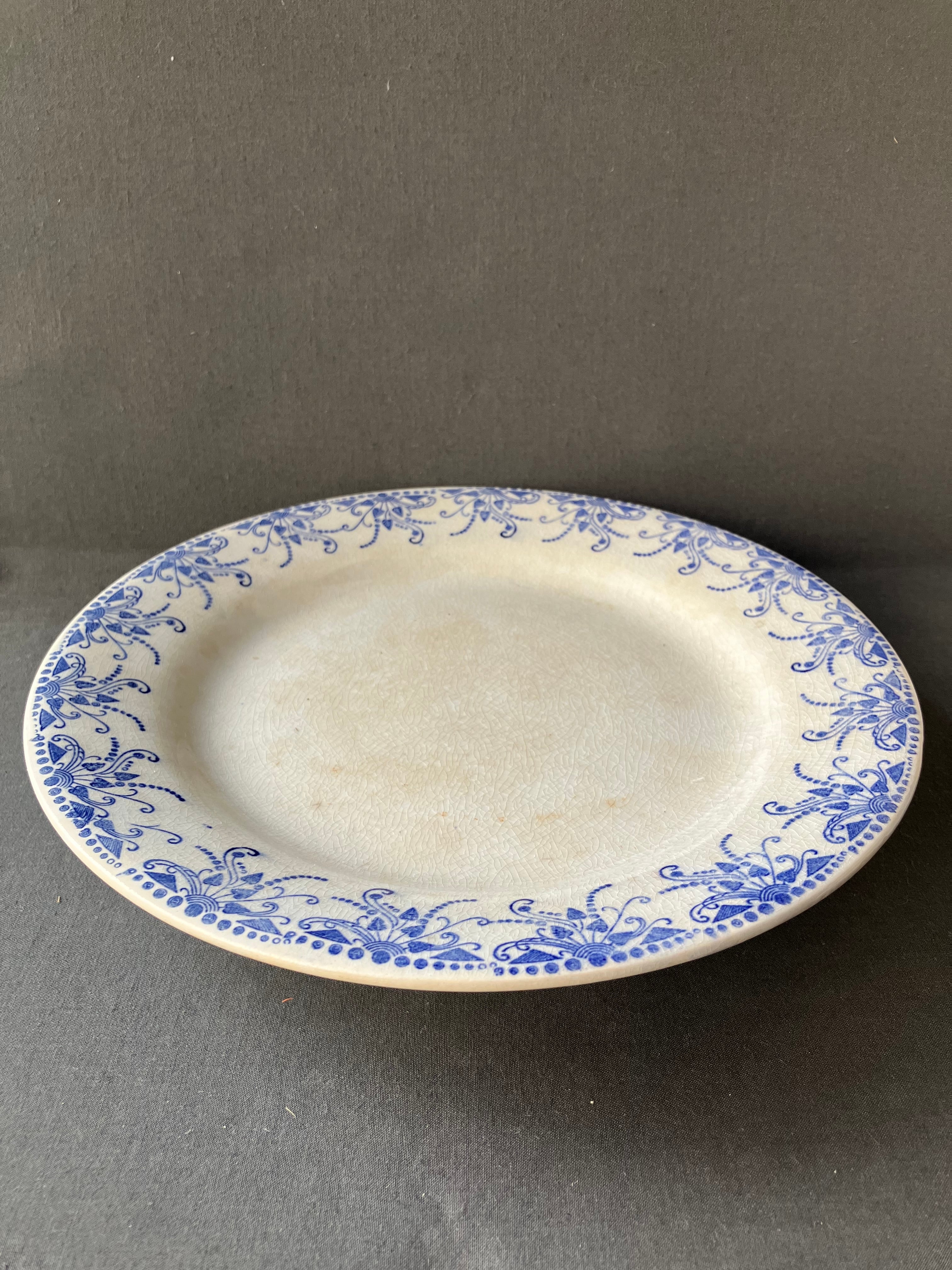 ・直径 23.3㎝ 高さ 4㎝ H.B.C.M のアールデコのスズランのコンポティエです。中央に薄らシミがありますが、ヒビカケ無く経年の割に良い状態です。1910年から20年。フランスアンティーク。
