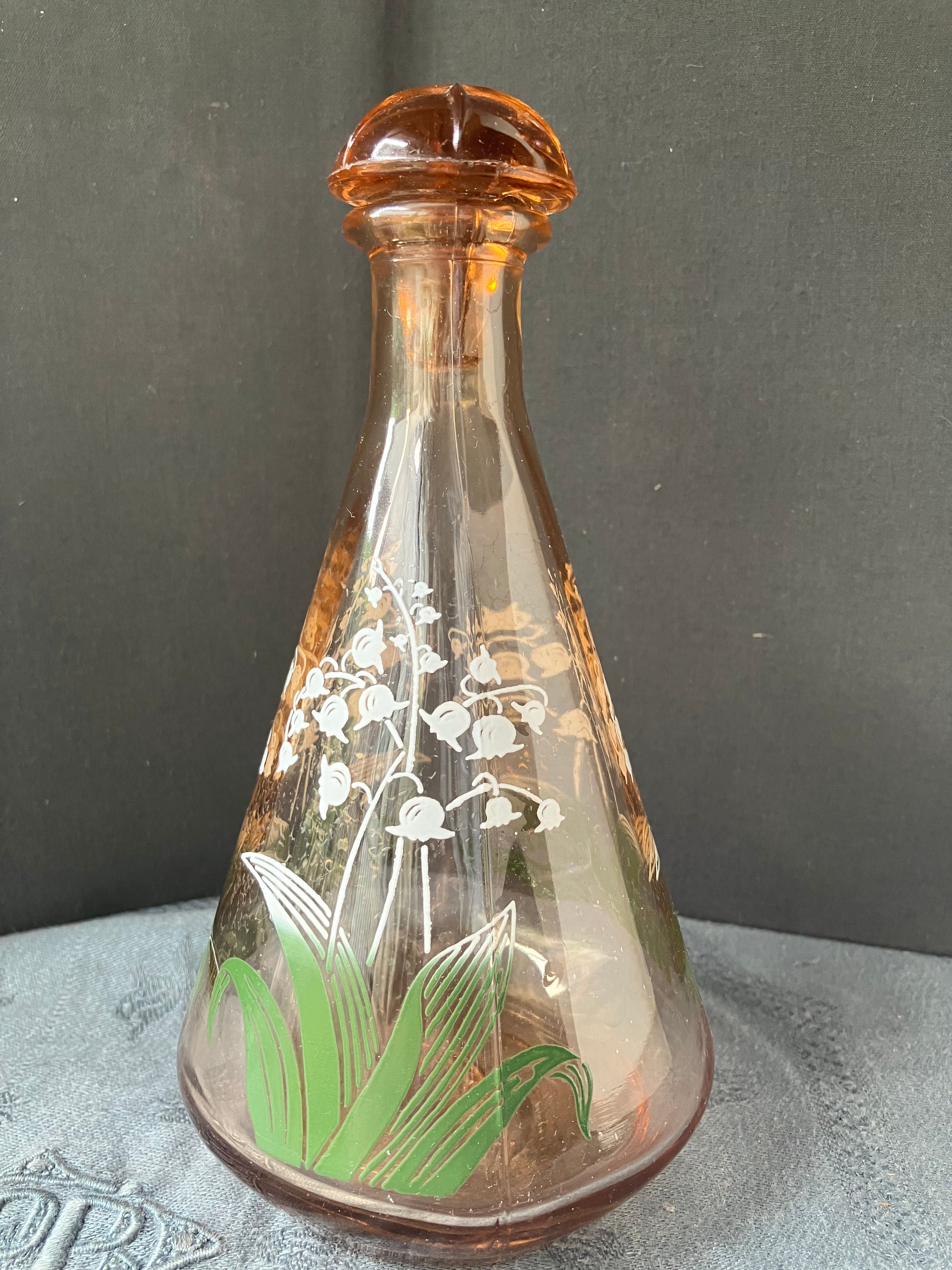 蓋付きのスズランのカラフェです。グラス1個付いています。ヒビカケ無く良い状態です。1930年から40年。フランスビンテージ。