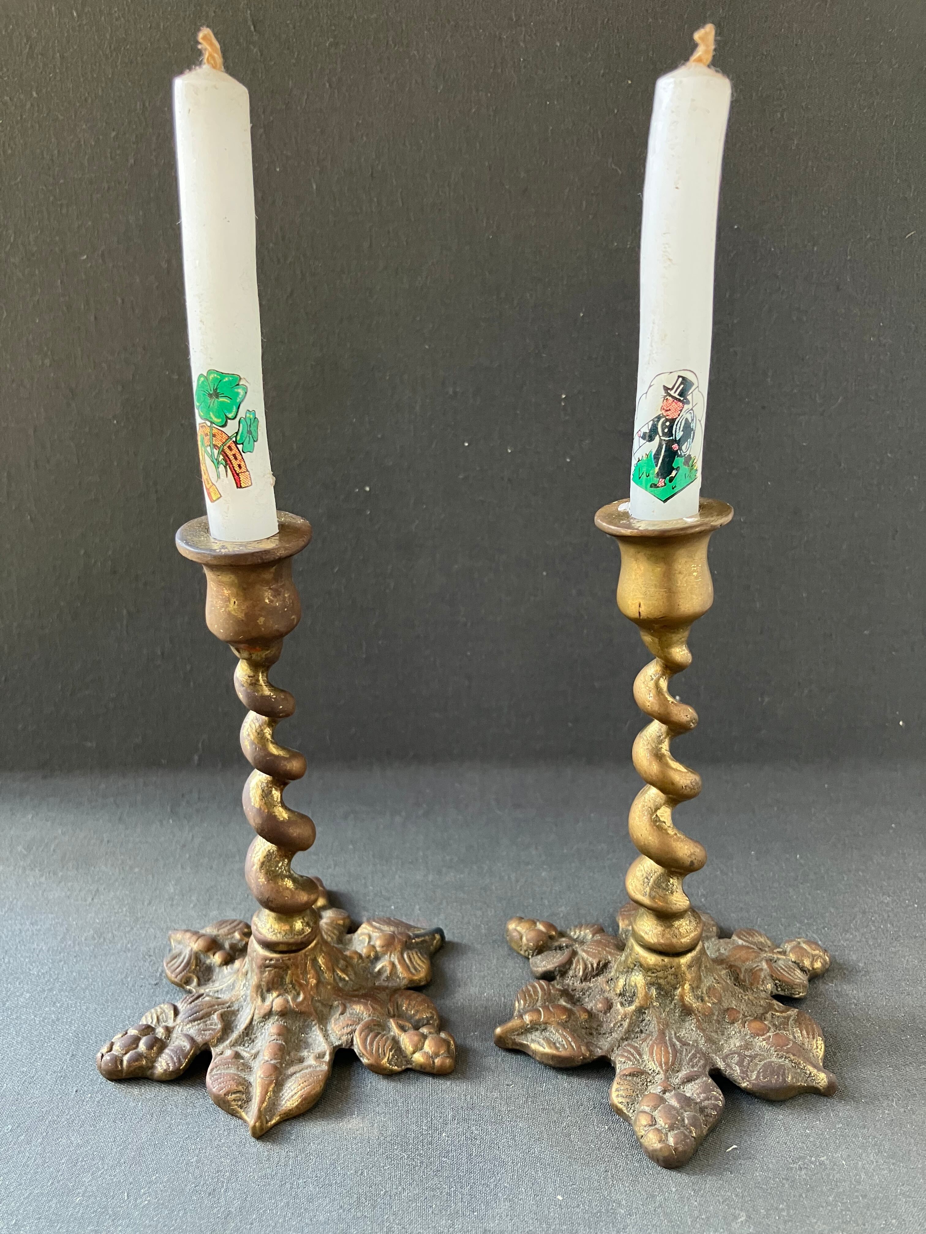 真鍮製のブドウとロカイユのキャンドルスタンド