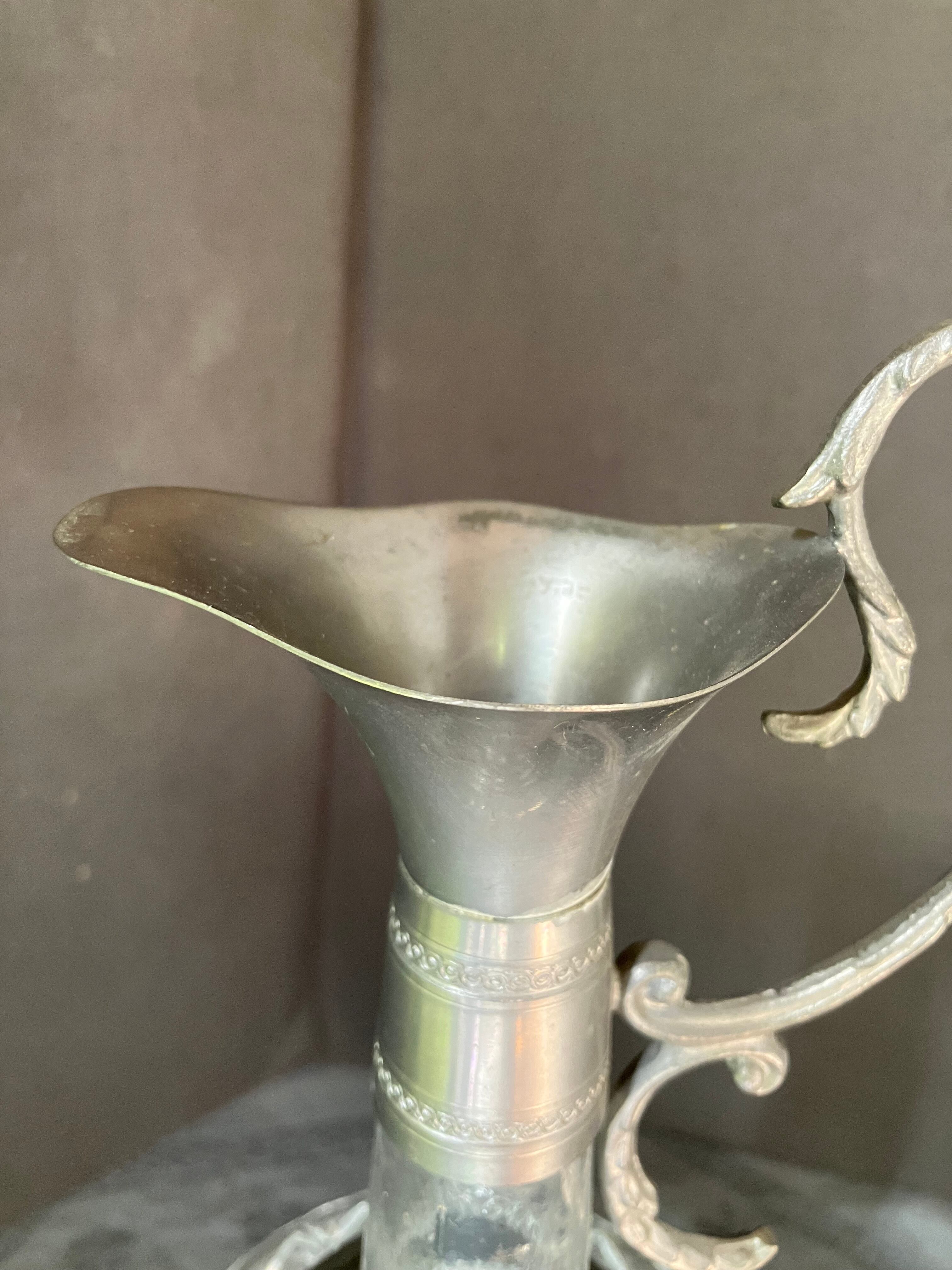 ・直径 10㎝ 高さ 26㎝ 下部分はカットガラス、持ち手と注ぎ口はエタン製のカラフェです。