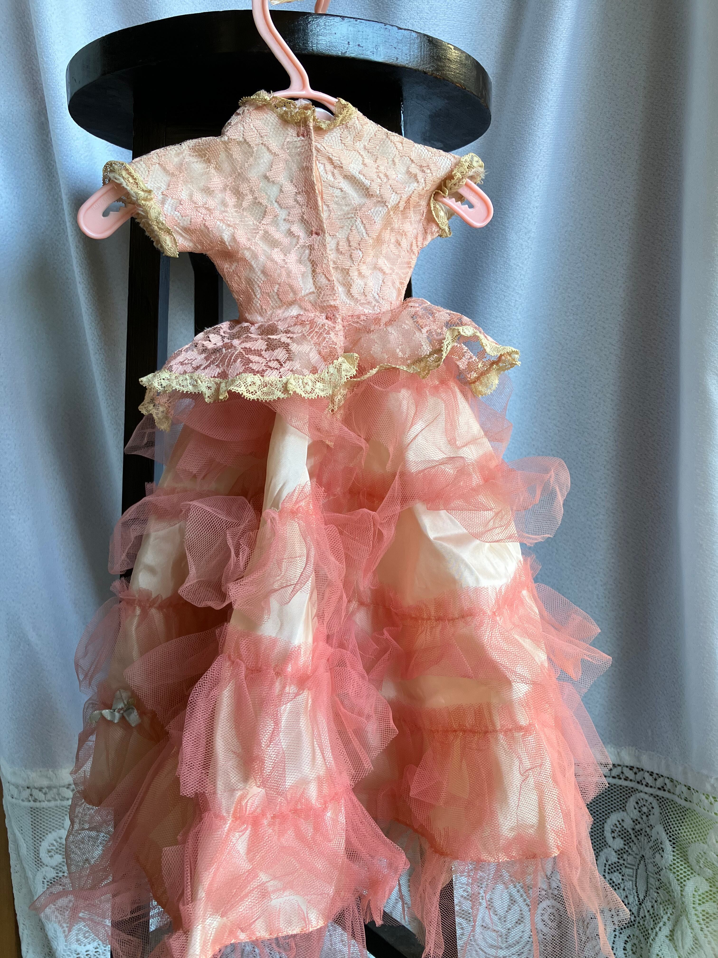 チュールレースとロココリボンがついたゴージャスなロココドレスです。ハンガーにかけて飾っておくだけ、ひいては壁に置いてあるだけでも絵になるドレスです。1930年から40年。フランスビンテージ。