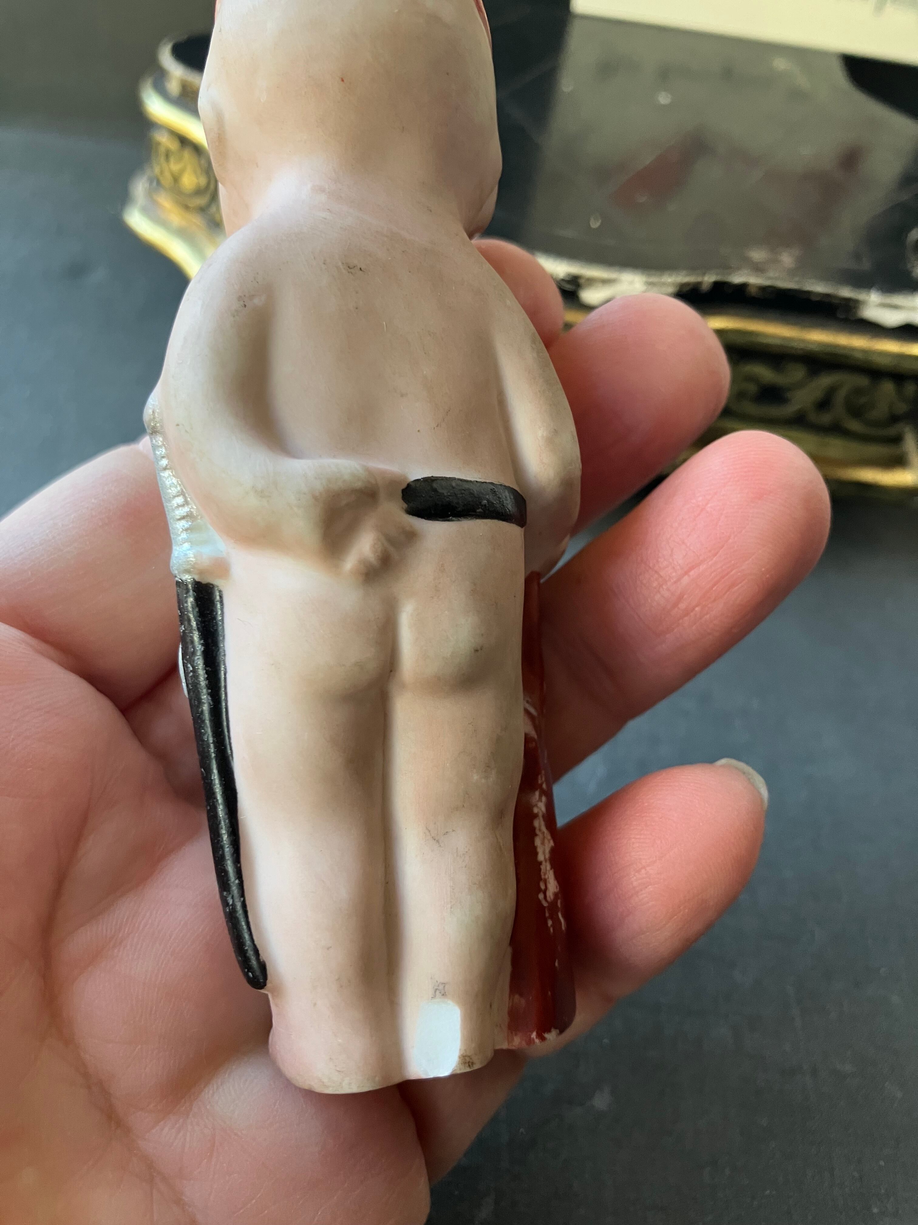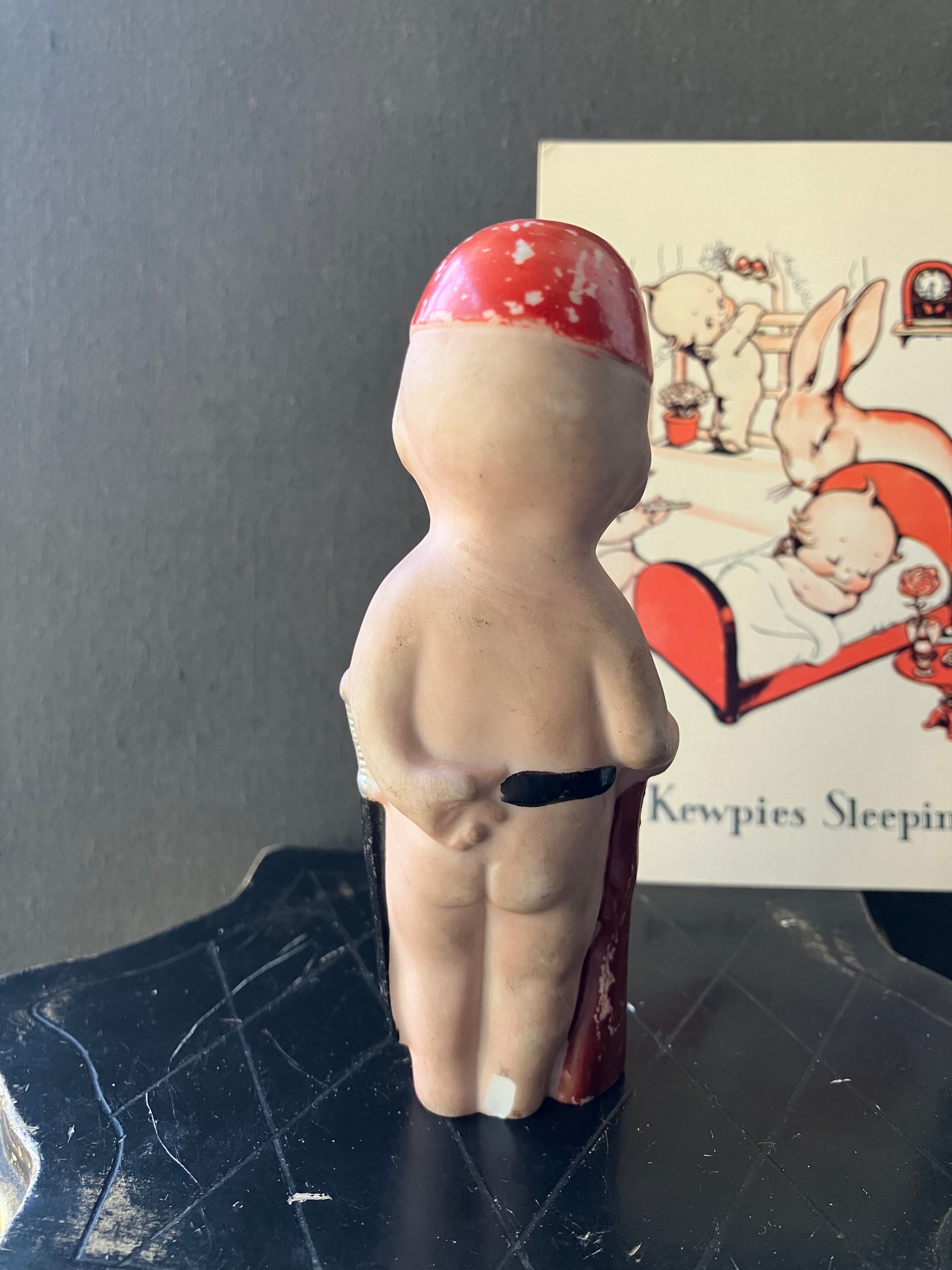 ・身長 10.5㎝ 身体幅 3㎝ 兵隊さんのキューピーちゃんです。鉄砲の先と後ろ足元にスレカケがあります。ローズオニールさんのキューピーちゃんのポストカードもセットです。アメリカビンテージ。