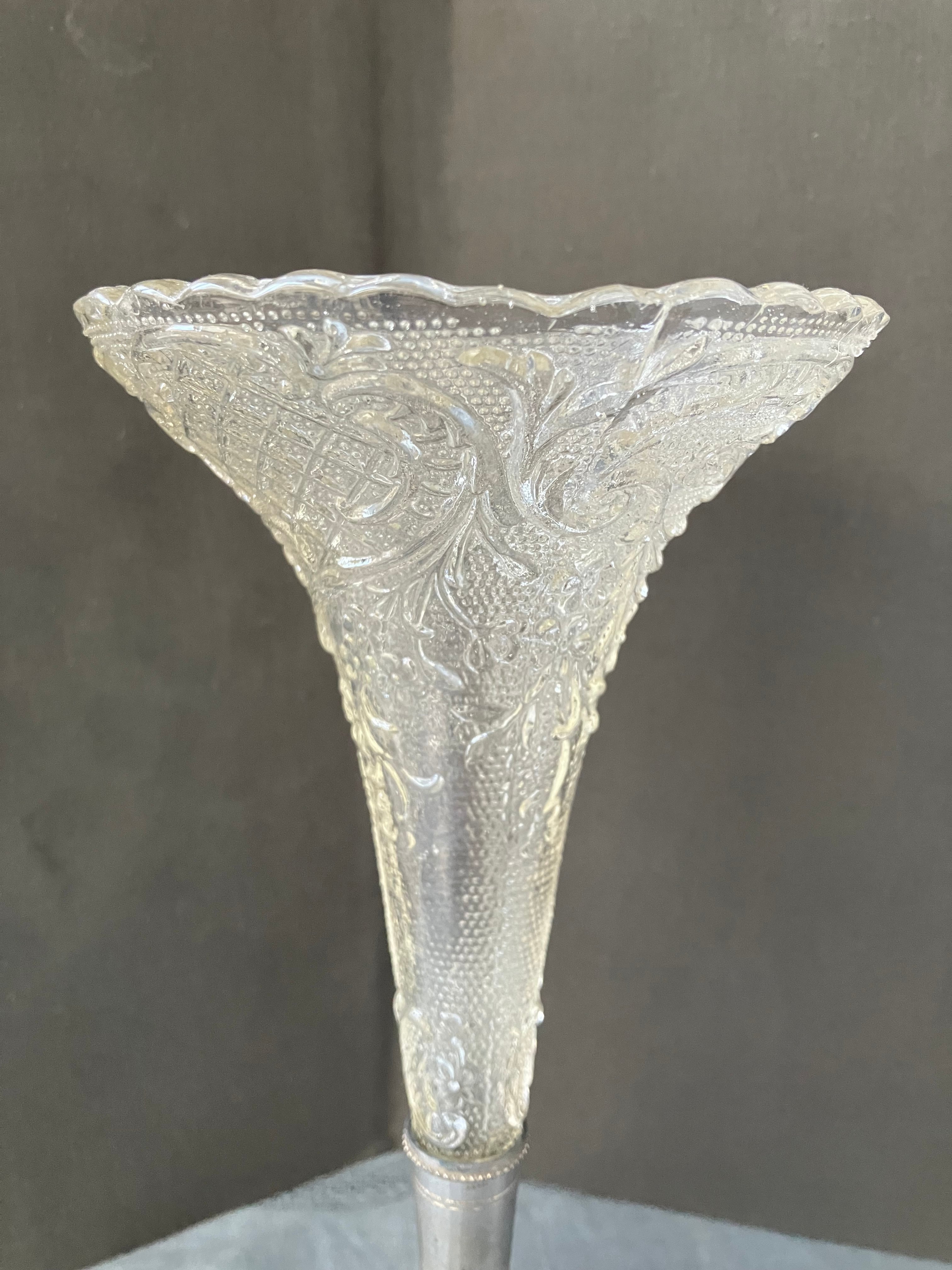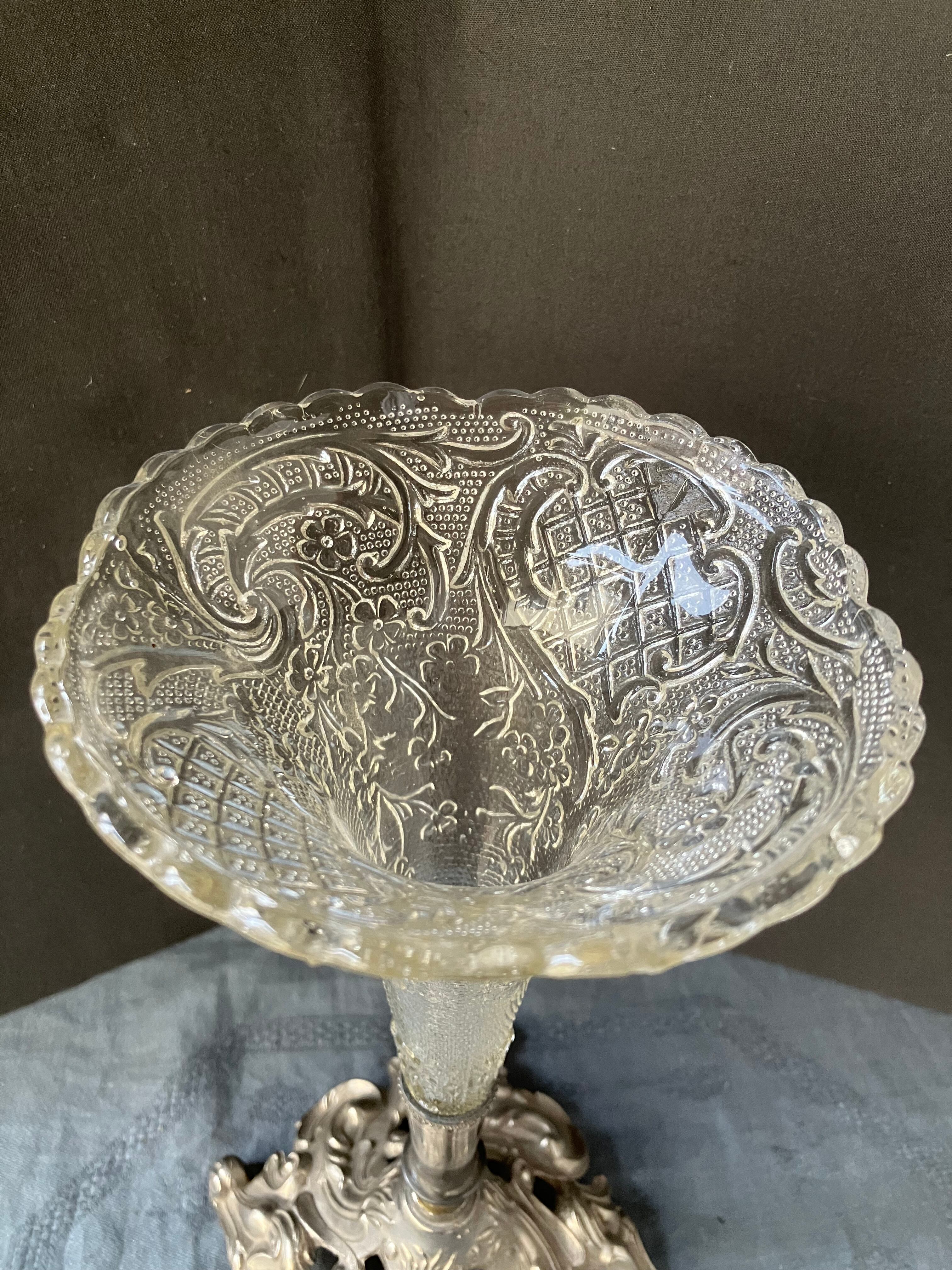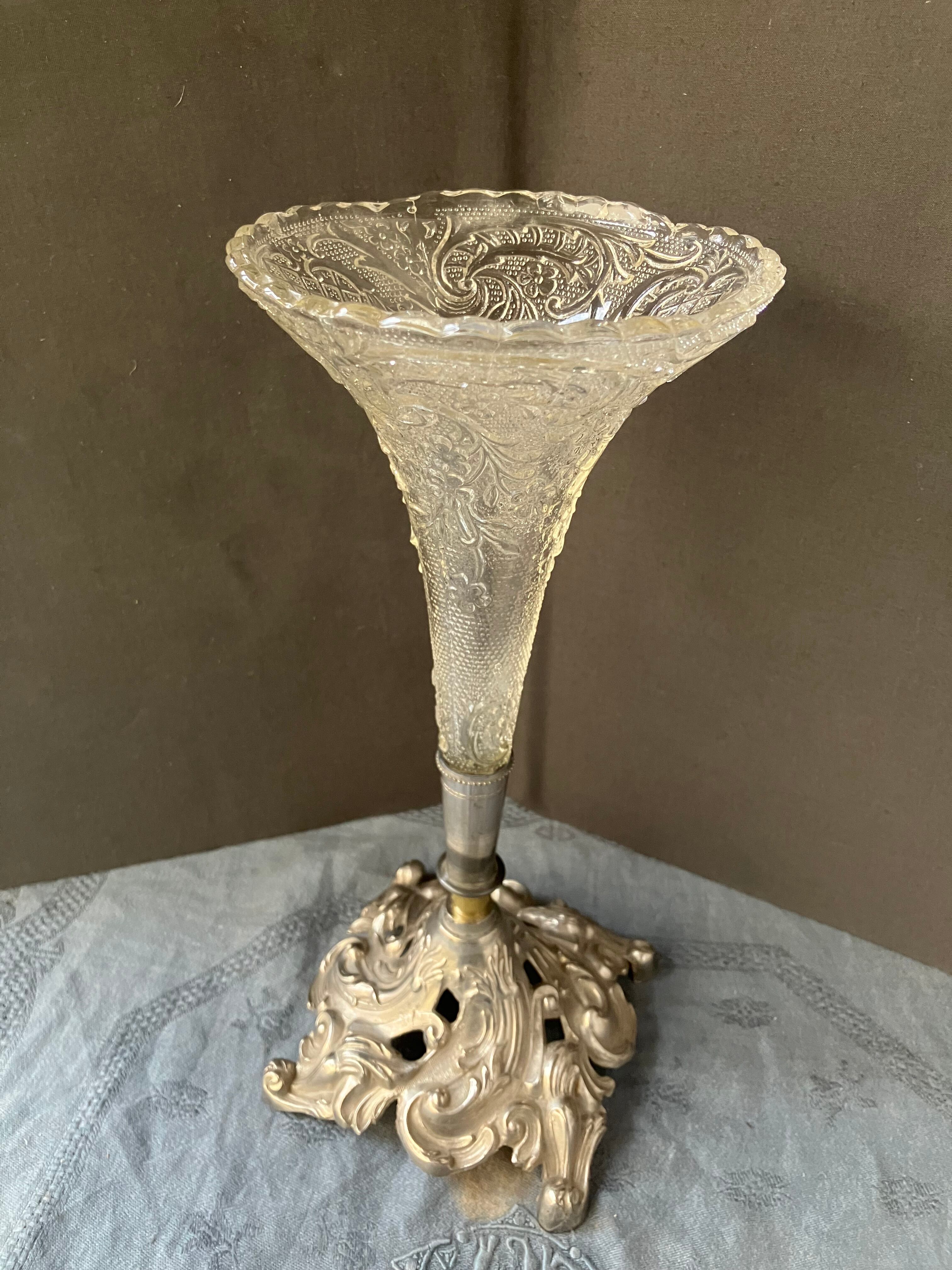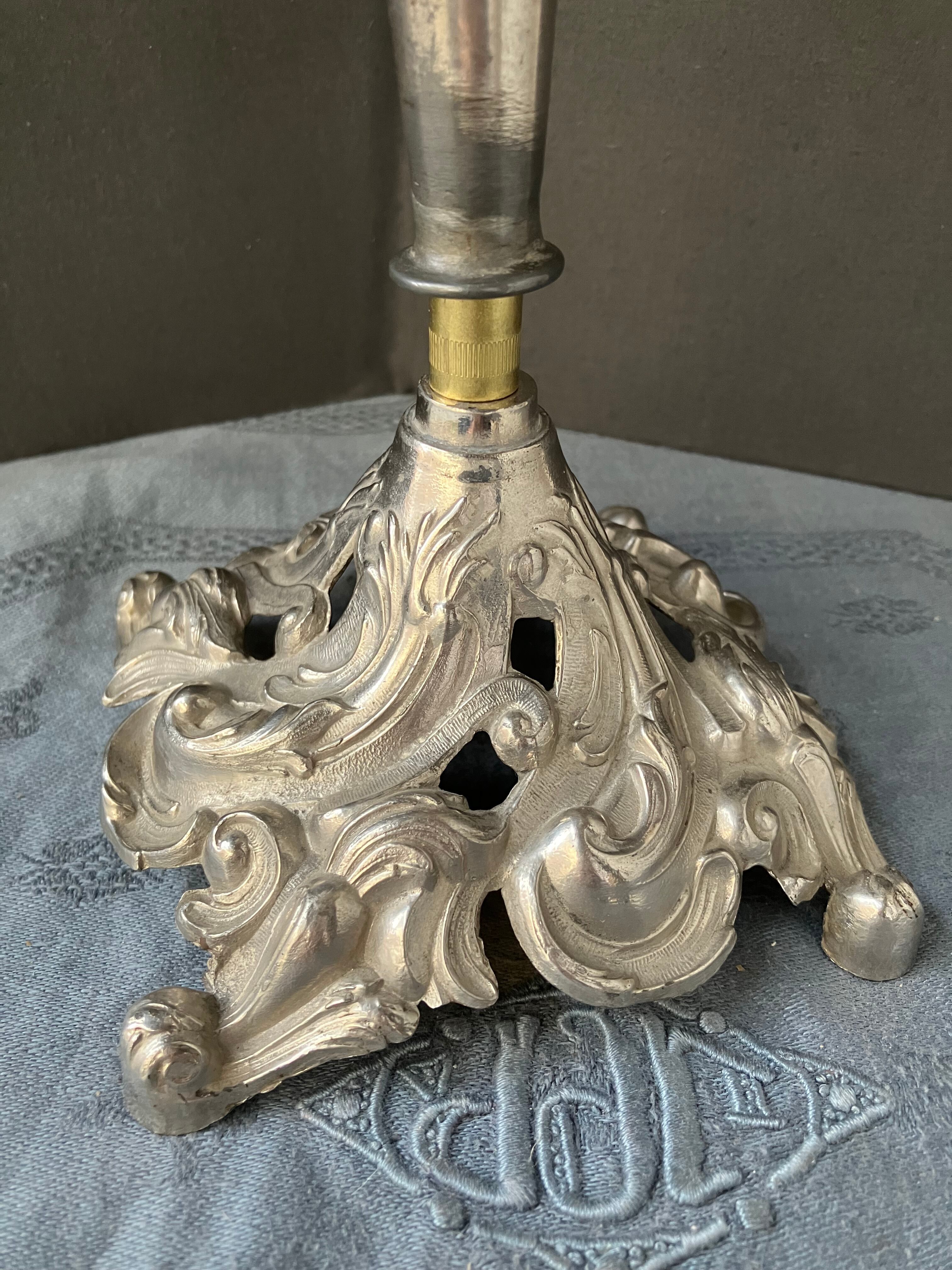 ・直径 12.5㎝ 高さ 29㎝ 素晴らしいロカイユの足元と型ガラスのベイスンです。ヒビカケ無く経年の割に良い状態です。ガラス部分は外す事ができます。1920年から30年。フランスアンティーク。
