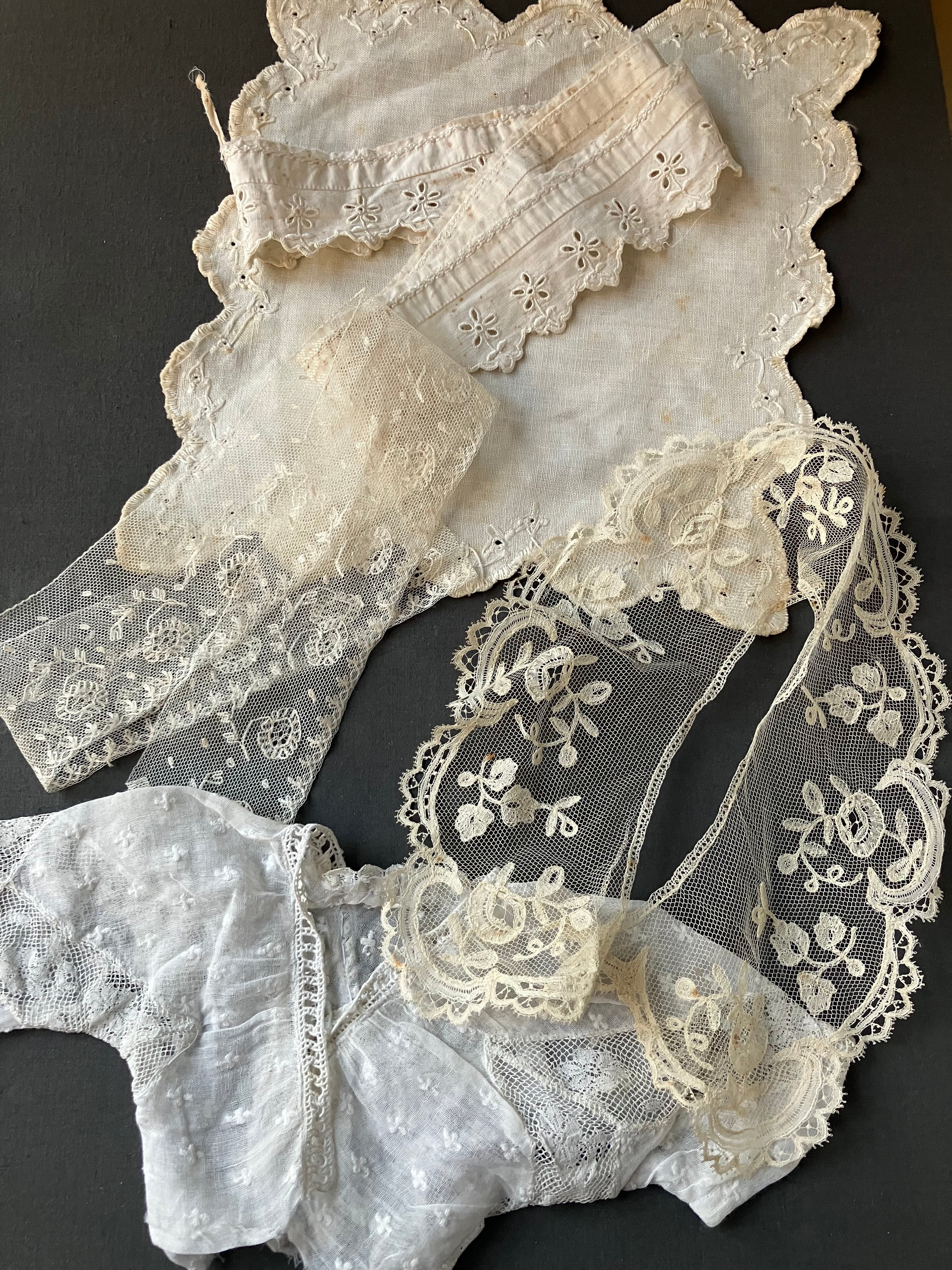 刺繍リボン、カットワークレース、刺繍ドイリー のセットです。襟だけで、このお値段します。
