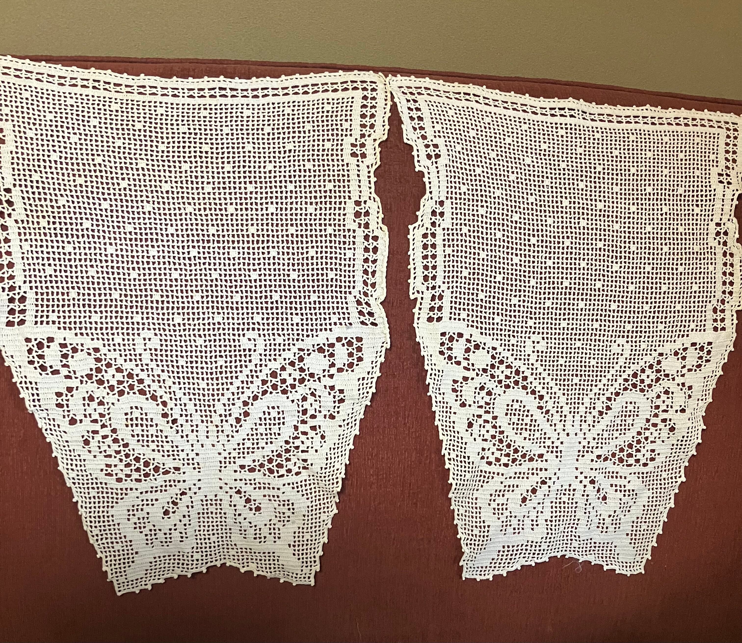 フィレレースのバタフライモチーフが美しいパネル2枚セットです。1930年から40年。フランスビンテージ。