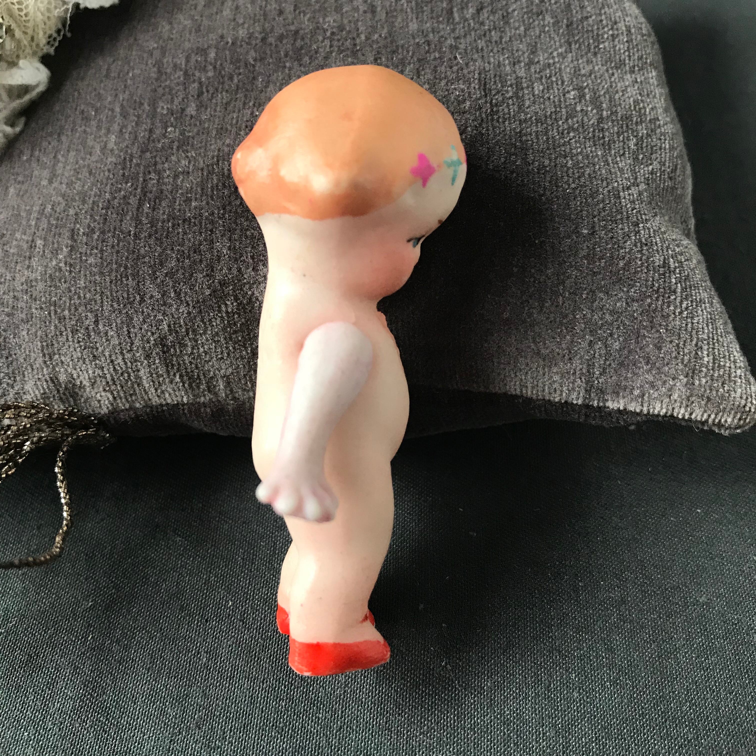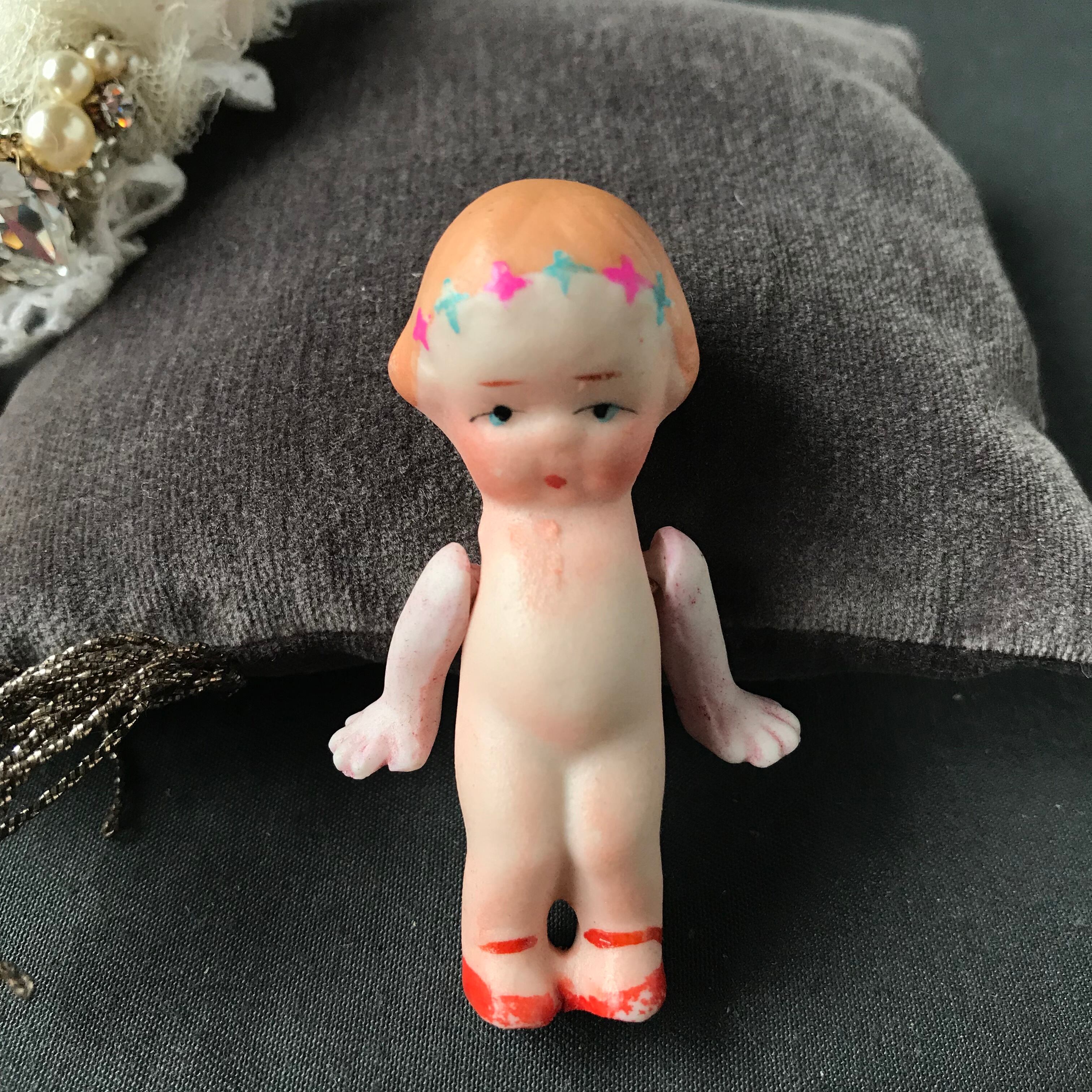 ・身長 6㎝ 頭に花冠がついて、赤い靴をはいたオールビスクドールです。腕はゴムジョイント動きます。輸出向け日本製里帰り品です。可愛らしい女の子です。お洋服は無いので作ってあげて下さい。フランスビンテージ。