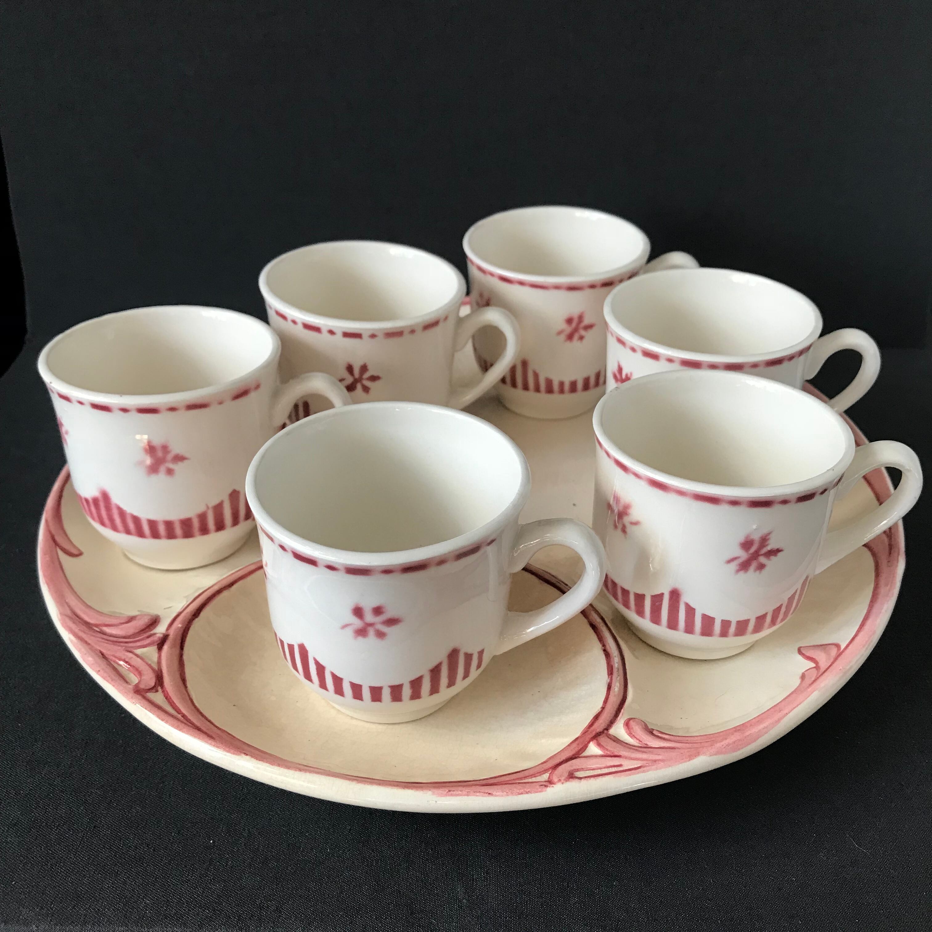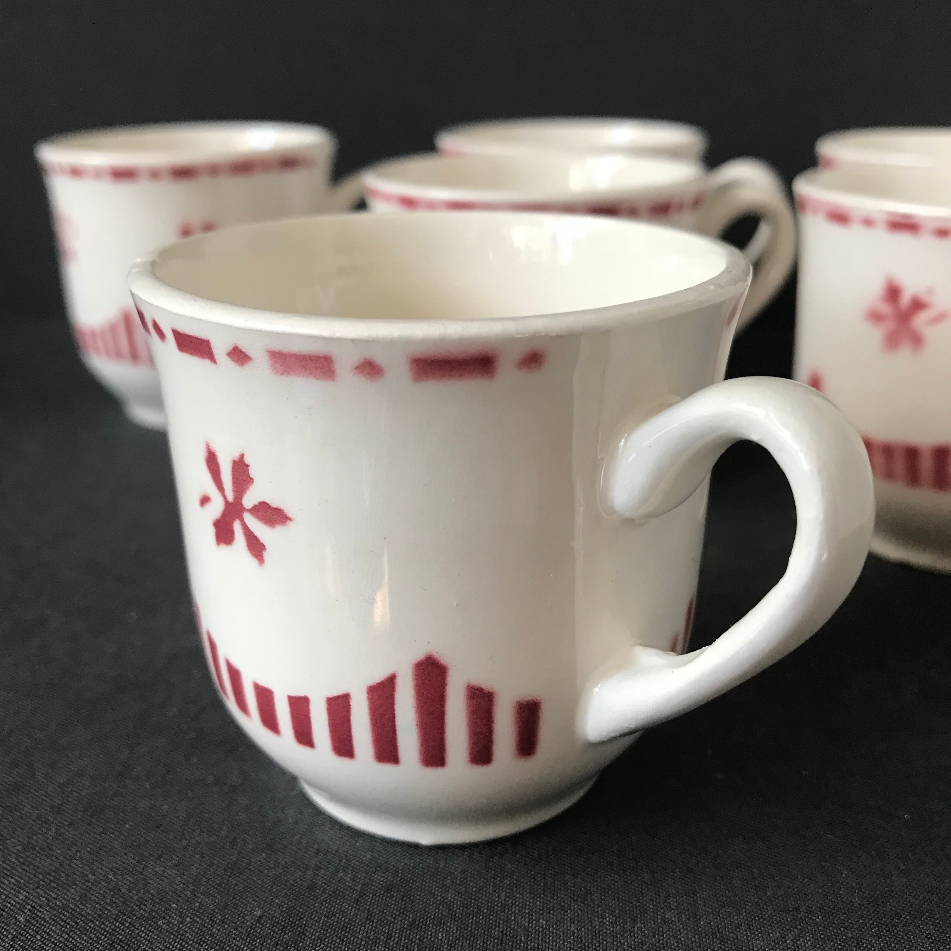 ・直径 5.3㎝ 高さ 6.5㎝ サルグミンヌの赤のヒイラギとストライプが可愛らしいカップです。小降りなカップはこれからのシーズンにオードブルをいれて飾って頂いたり、スープを入れてもいいですね。6個あります。1個のお値段です。こちらにぴったりなサルグミンヌのバルボティーヌは別に出品してあります。フランスアンティーク。