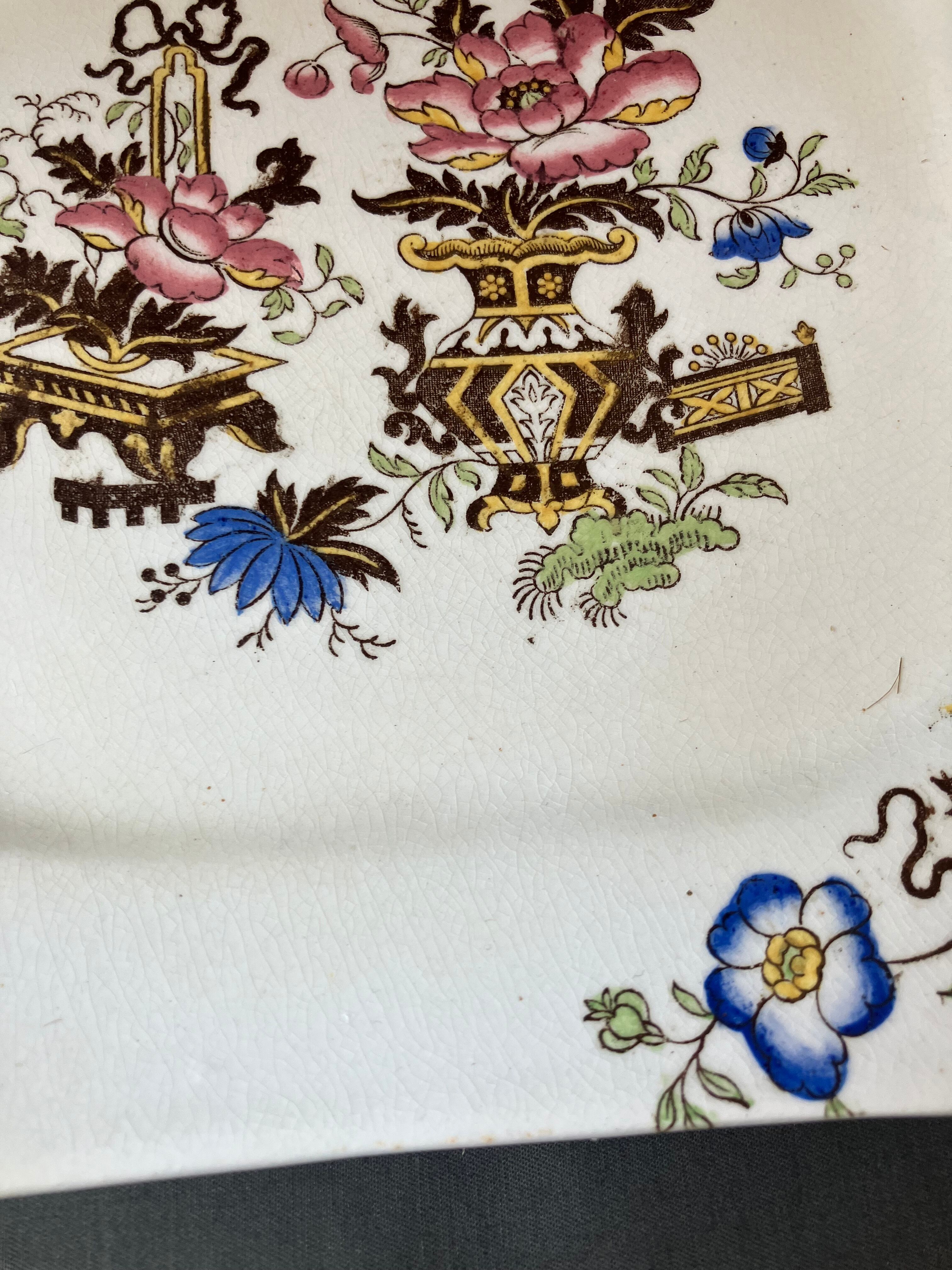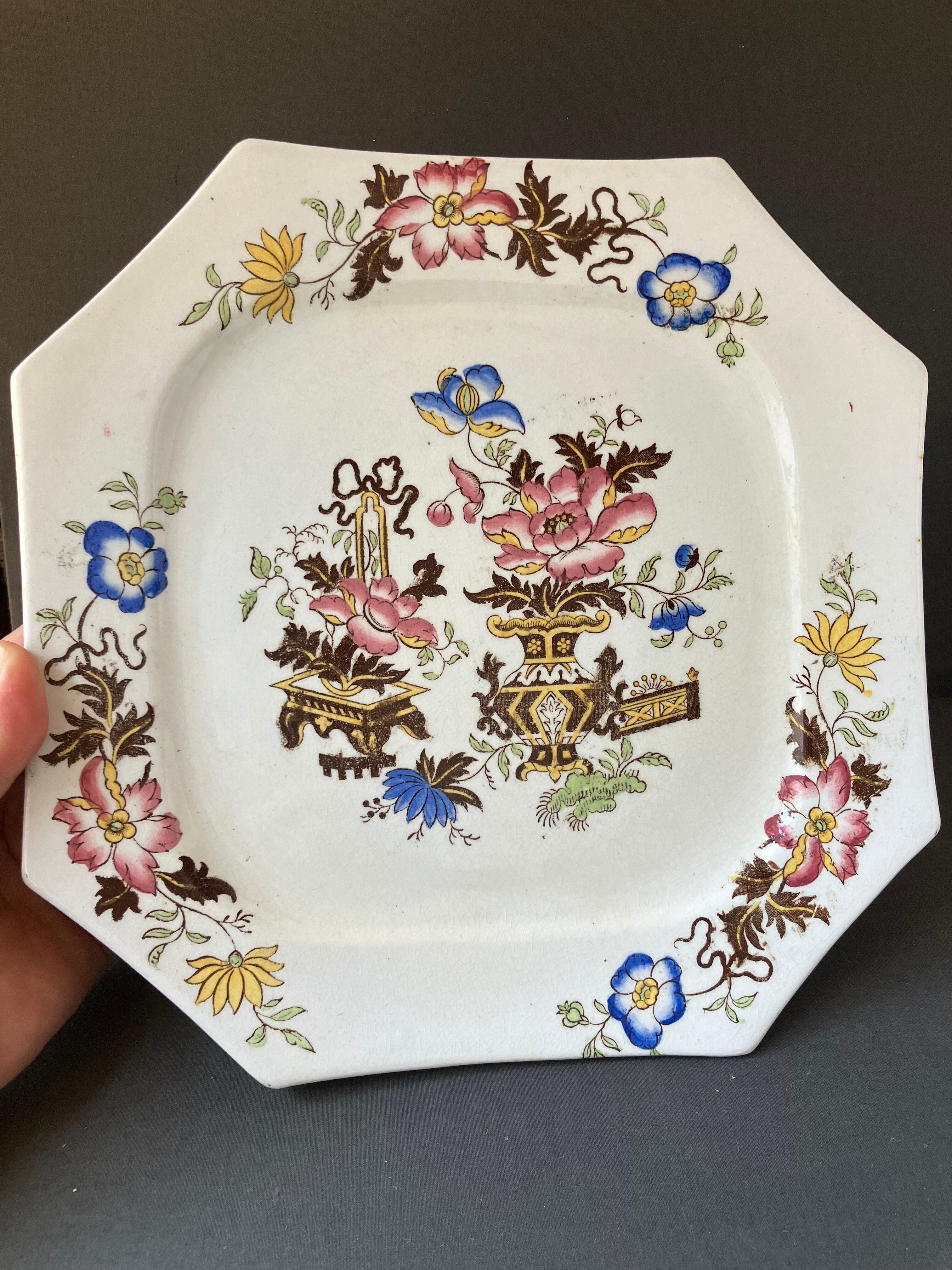 ・縦 25㎝ 横 25㎝ シノワズリ柄のオクトゴナルプレートです。ヒビカケなく経年の割によい状態です。アンティークプレートの中にシノワズリ のプレートを加えるとスパイスがきいたテーブルセッティングになりますね。1920年から30年。